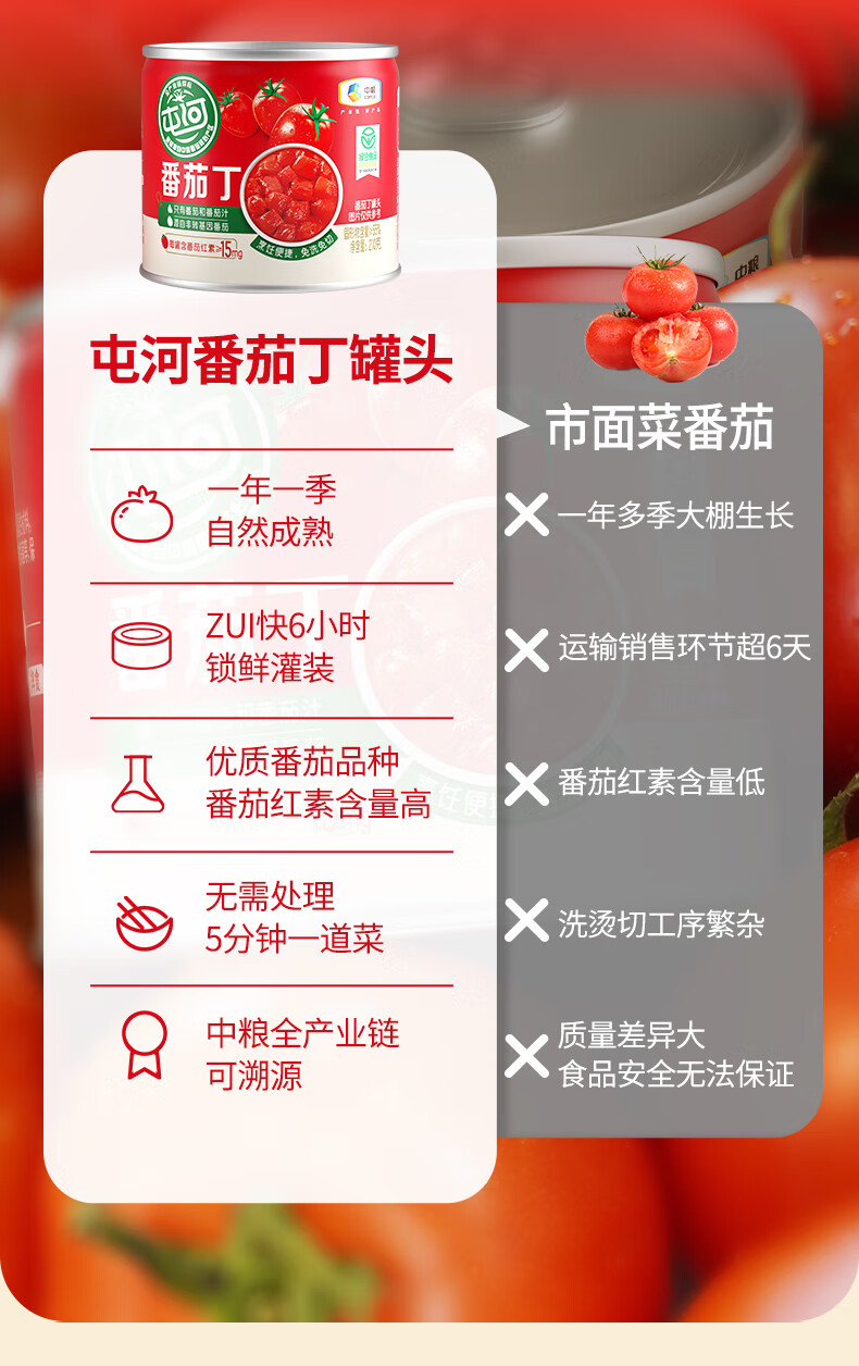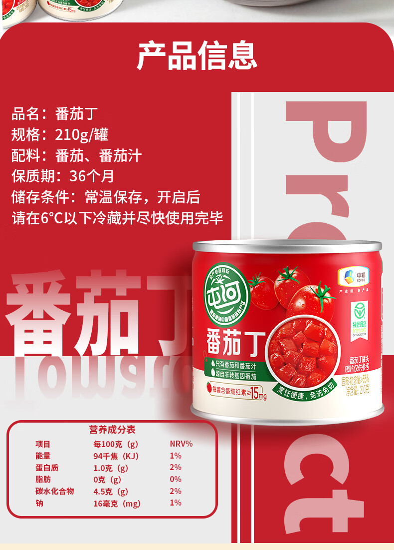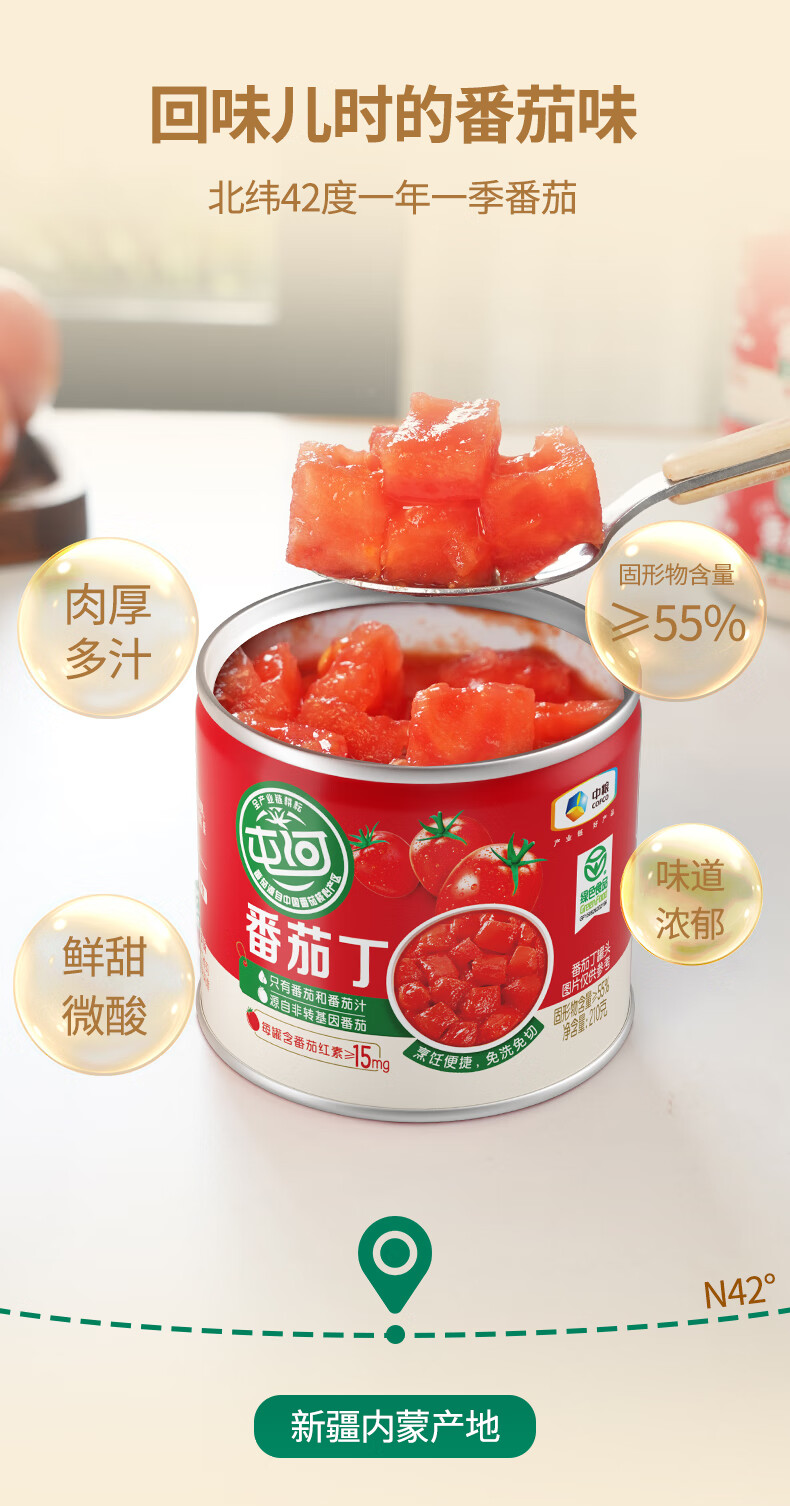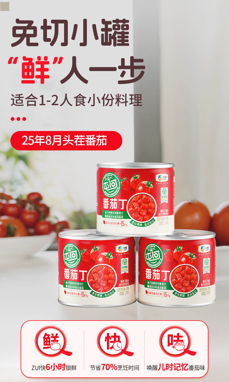 屯河 25年新/番茄丁210g*6 0添加剂新疆内蒙番茄罐头西红柿块番茄酱