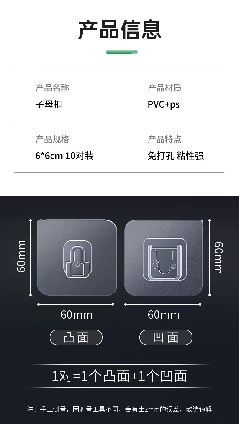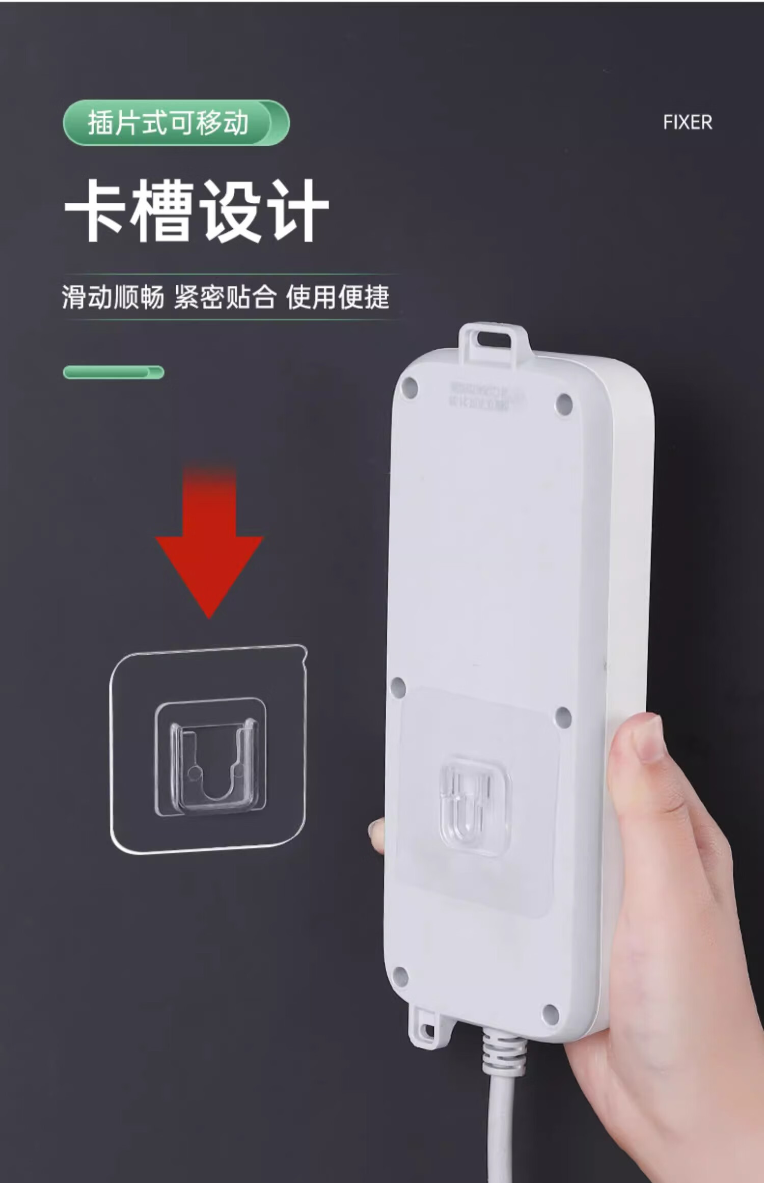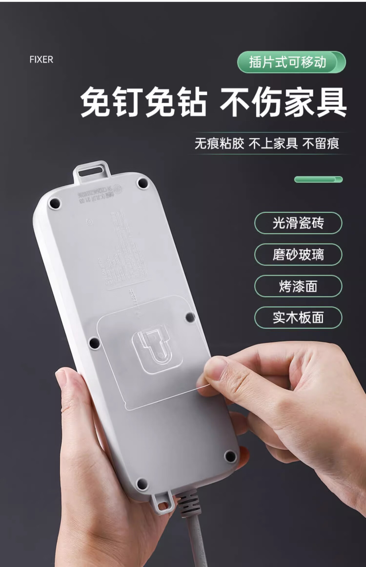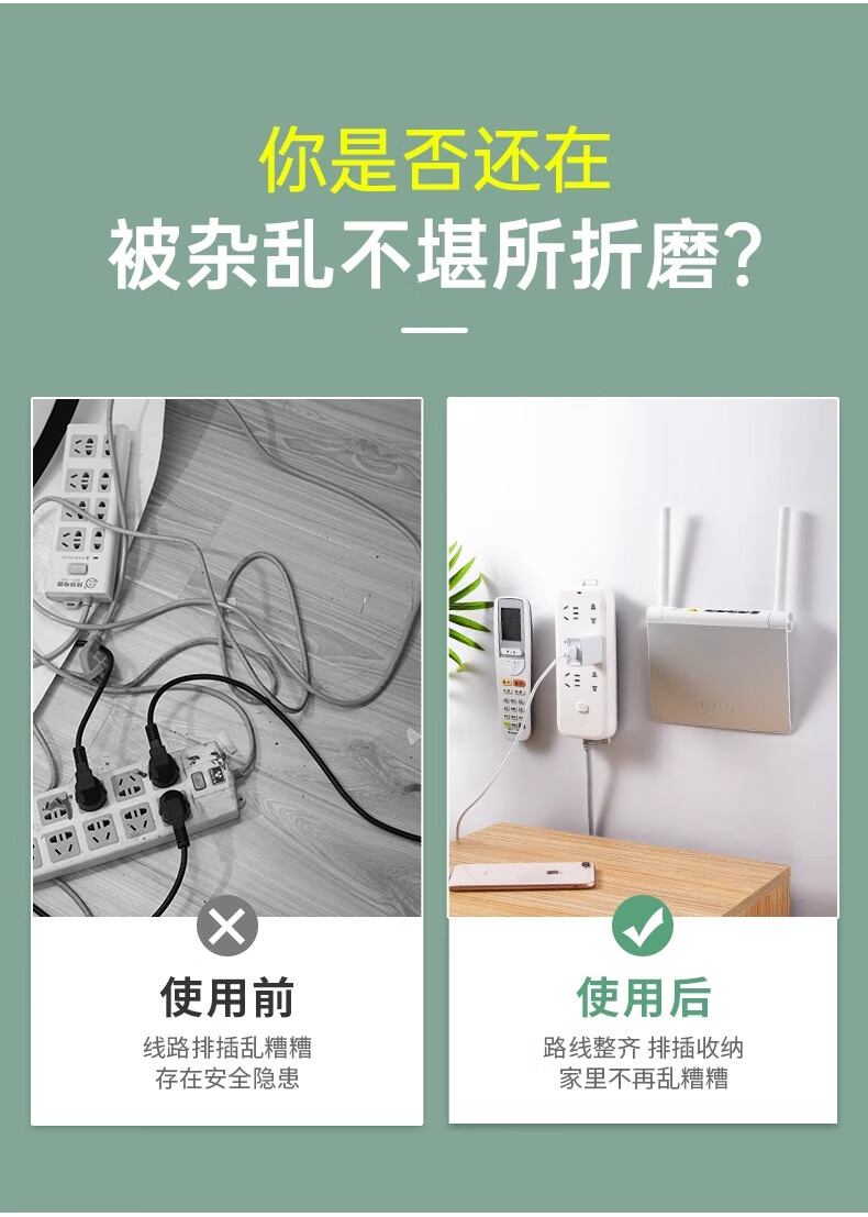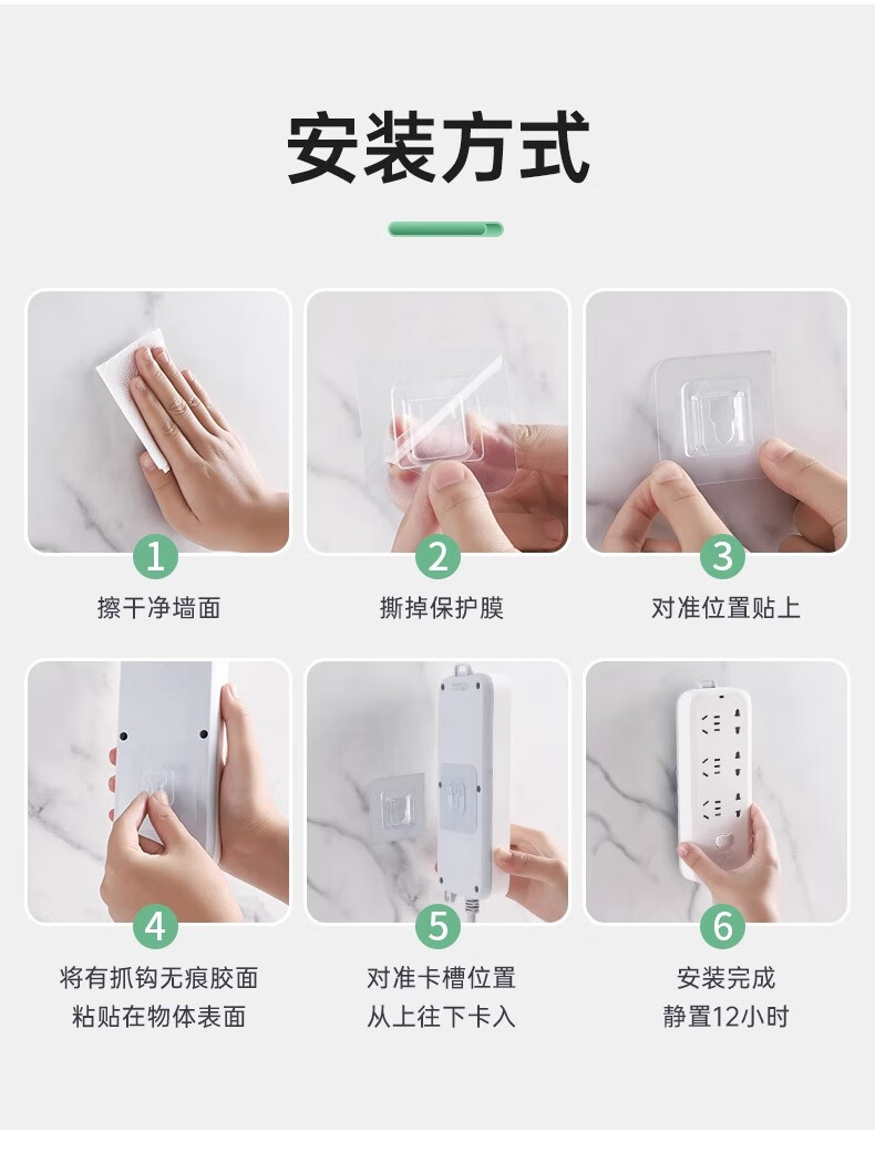 登比子母扣粘贴片插排固定器透明挂钩免打孔免胶插座强力贴壁挂卡扣