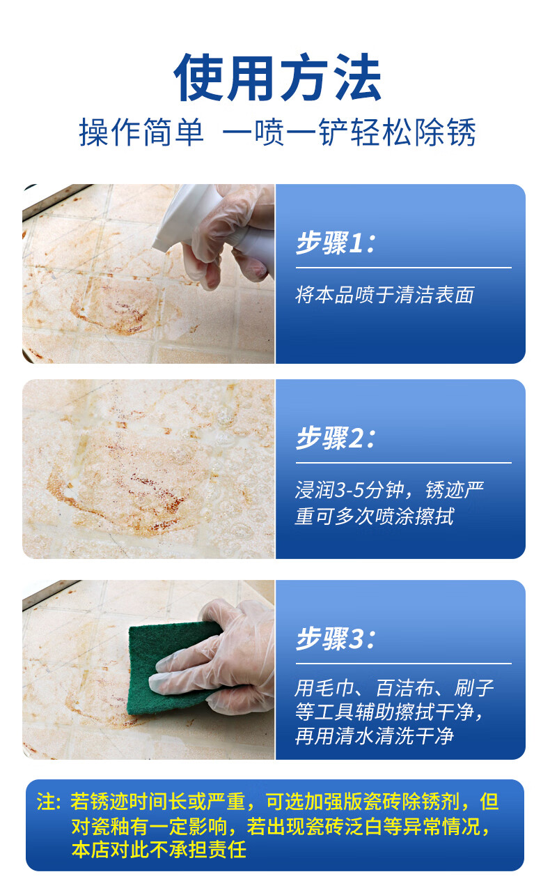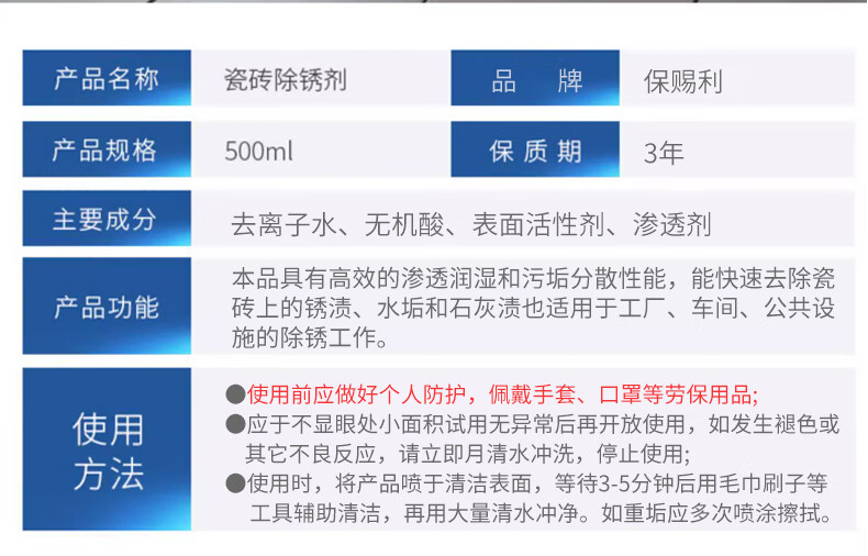 保赐利强力瓷砖除锈剂 不伤瓷砖釉去铁锈除石材马桶玻璃地面地板卫生间