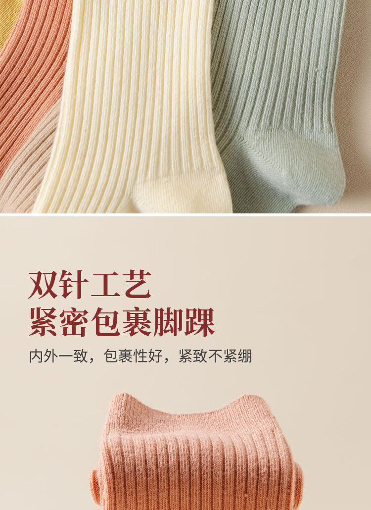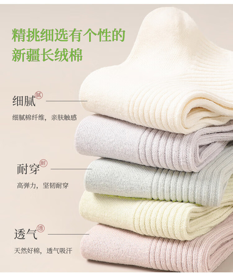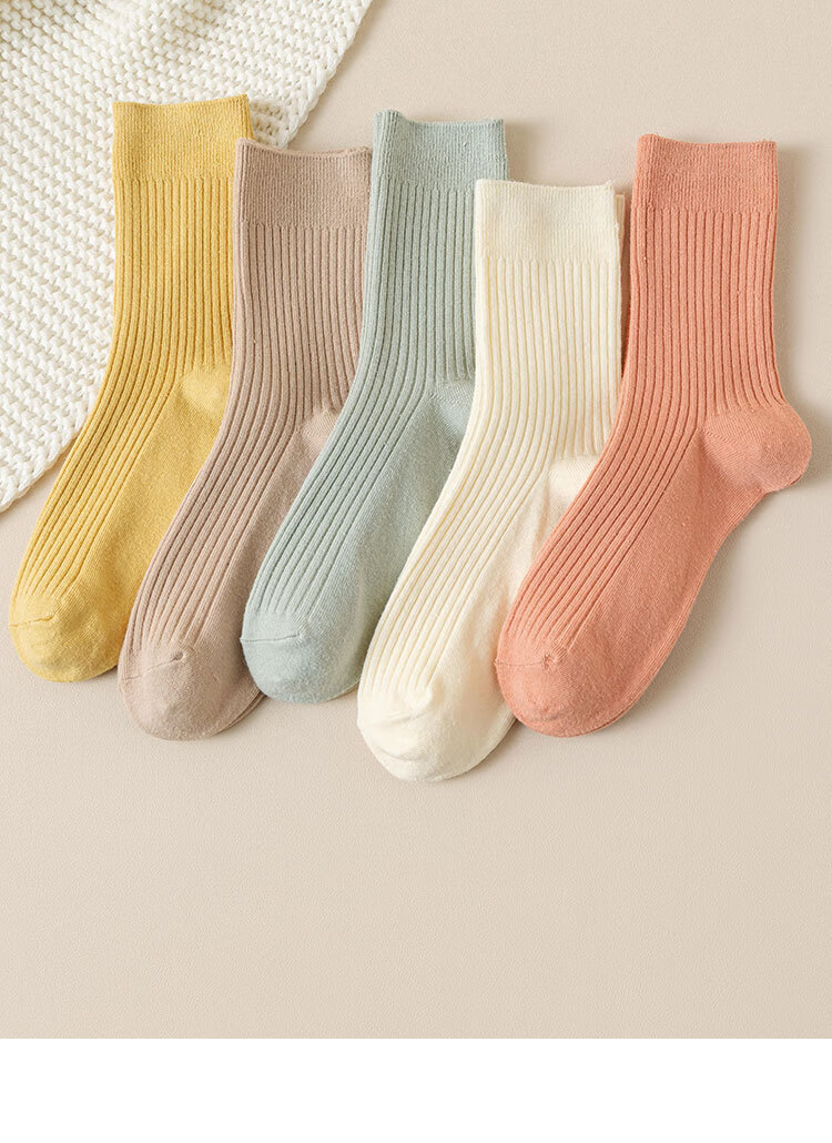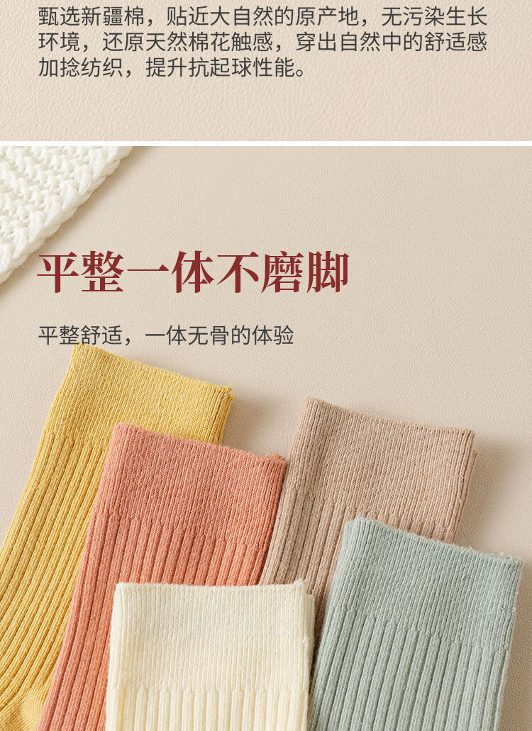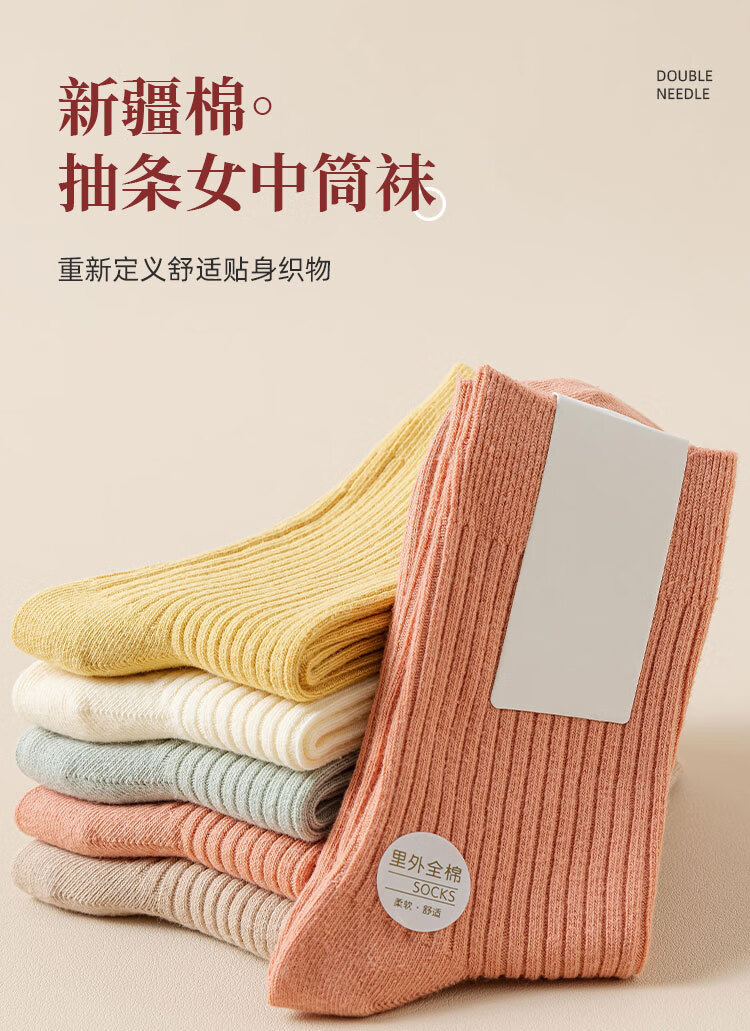 新疆棉袜子女士抽条春秋厚款中筒袜吸汗防臭100%纯棉双针耐磨女袜 女双针长袜【彩色】 5双 均码