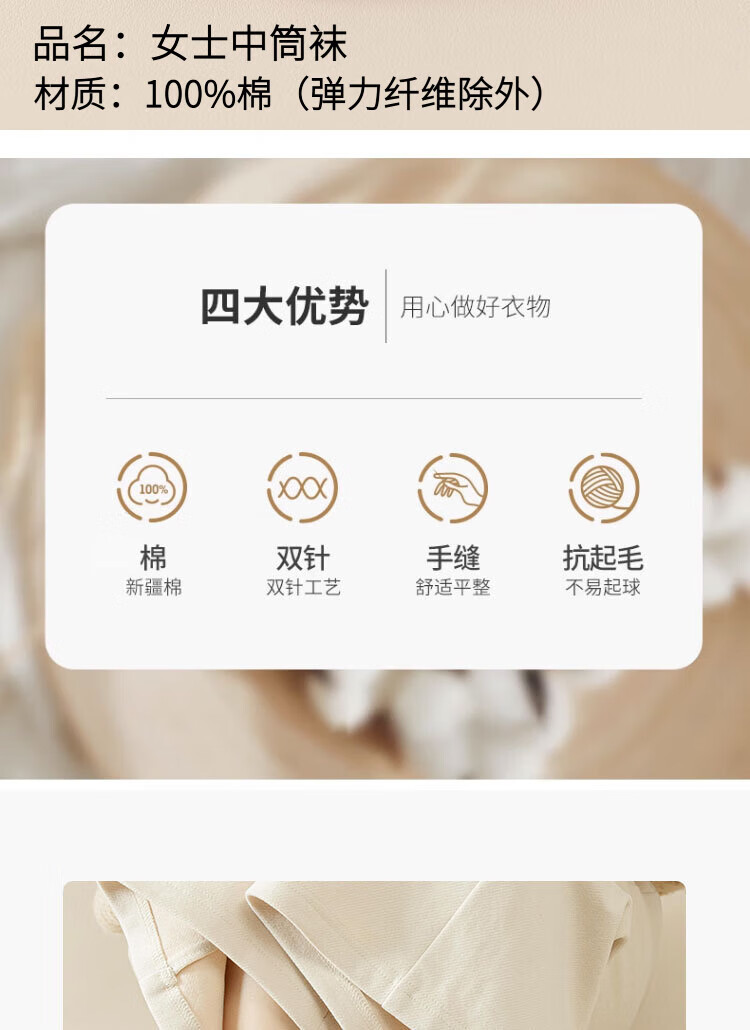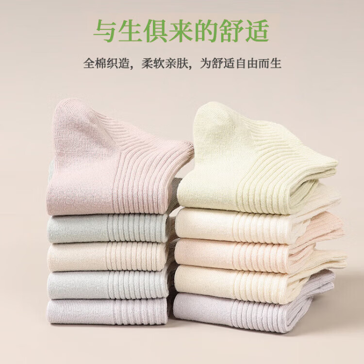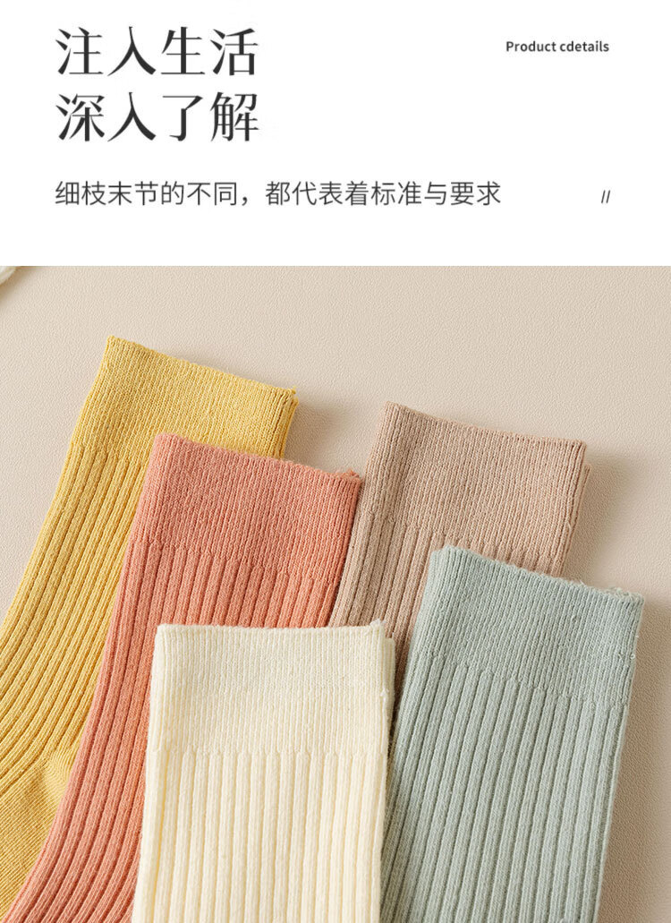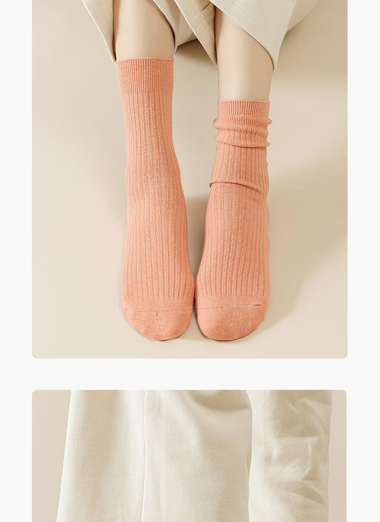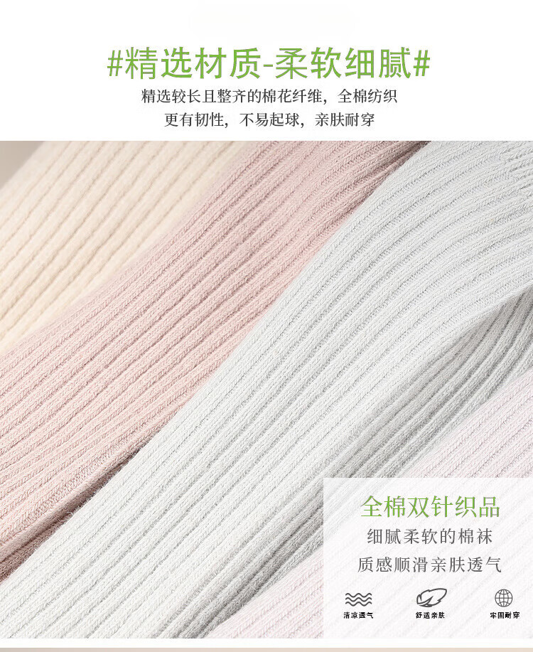 新疆棉袜子女士抽条春秋厚款中筒袜吸汗防臭100%纯棉双针耐磨女袜 女双针长袜【彩色】 5双 均码