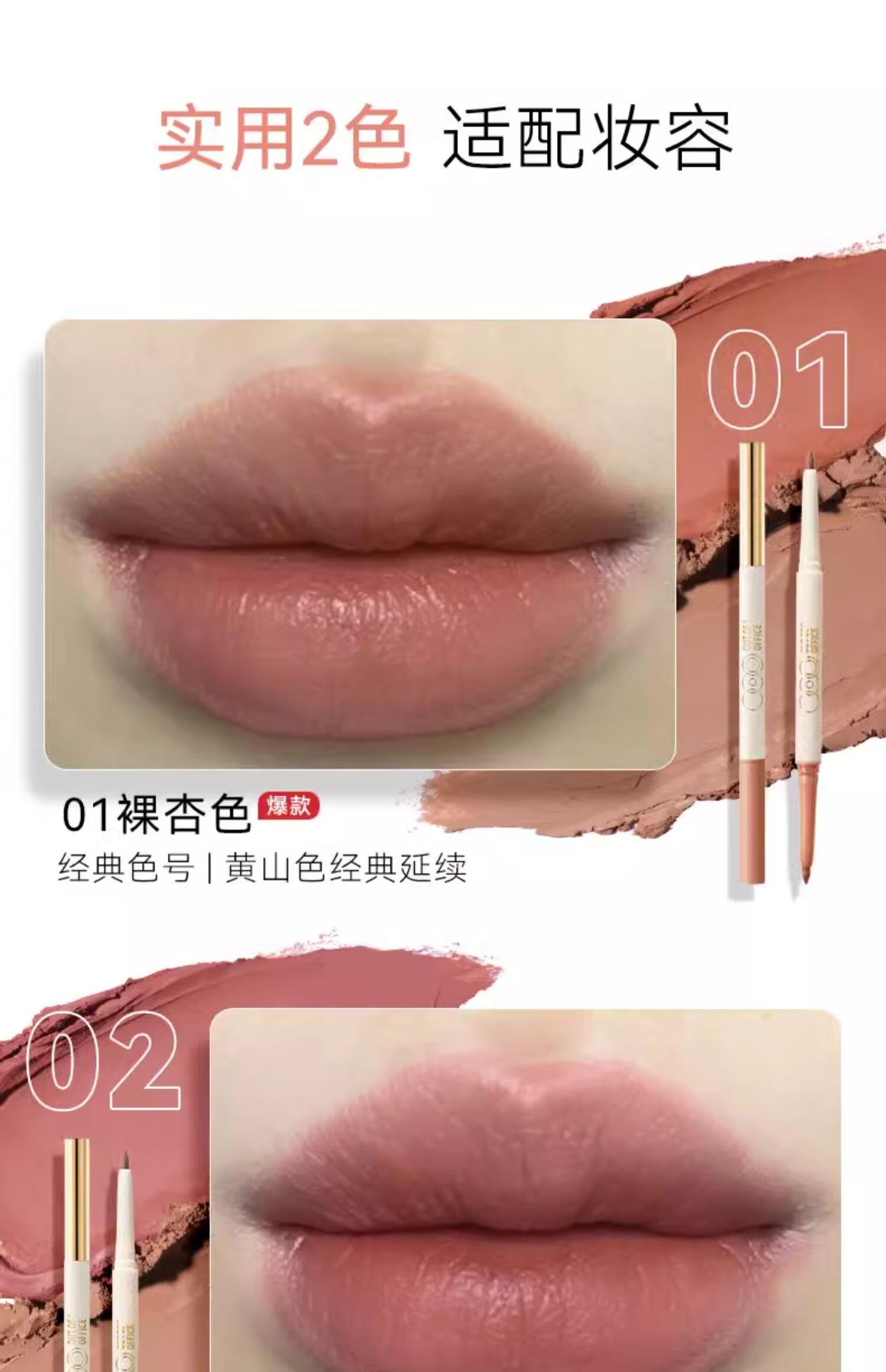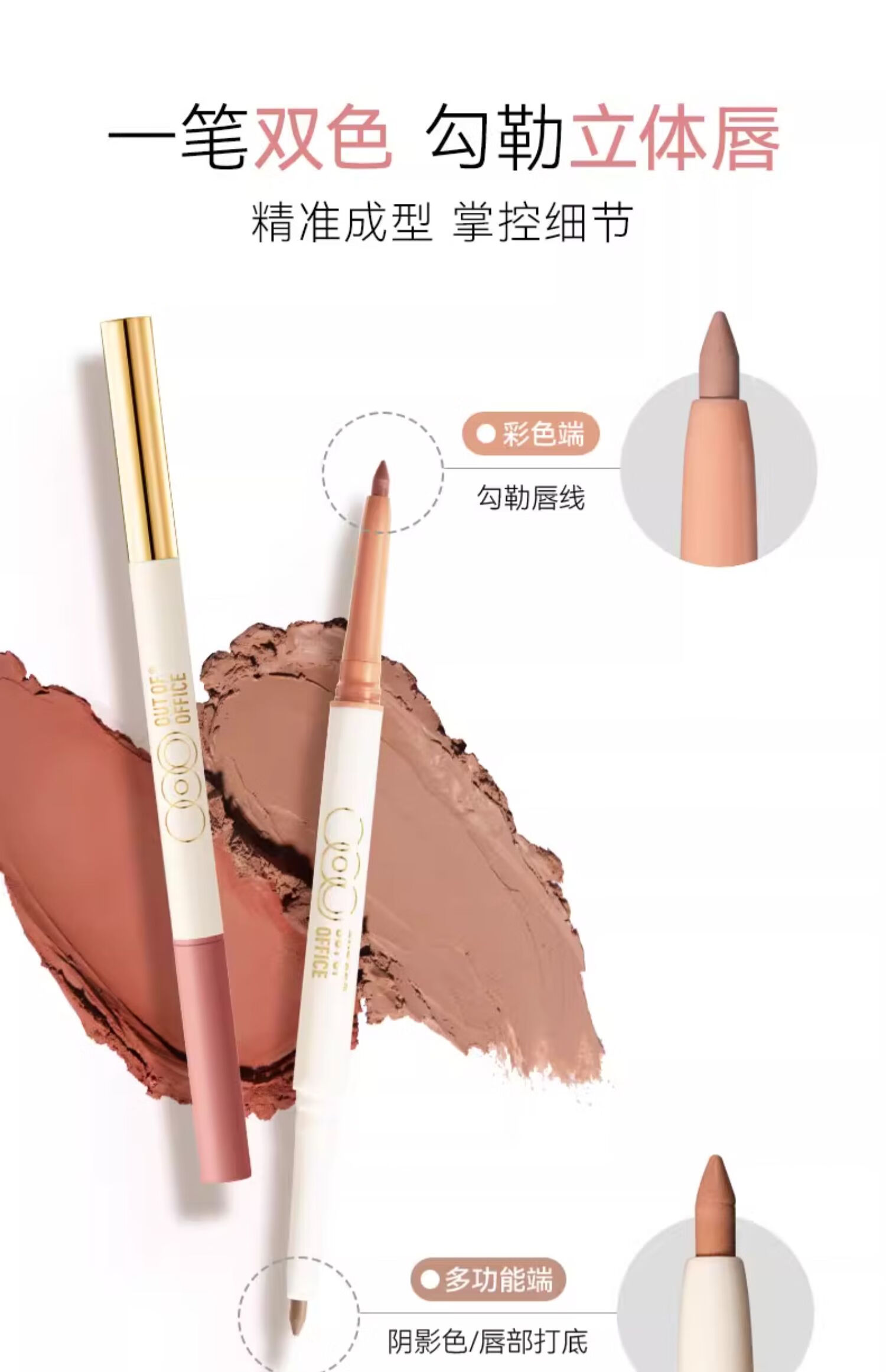 OUT-OF-OFFICE 双头唇线笔OOO修容自然勾勒唇形 塑型唇线笔 01裸杏色 新年礼物