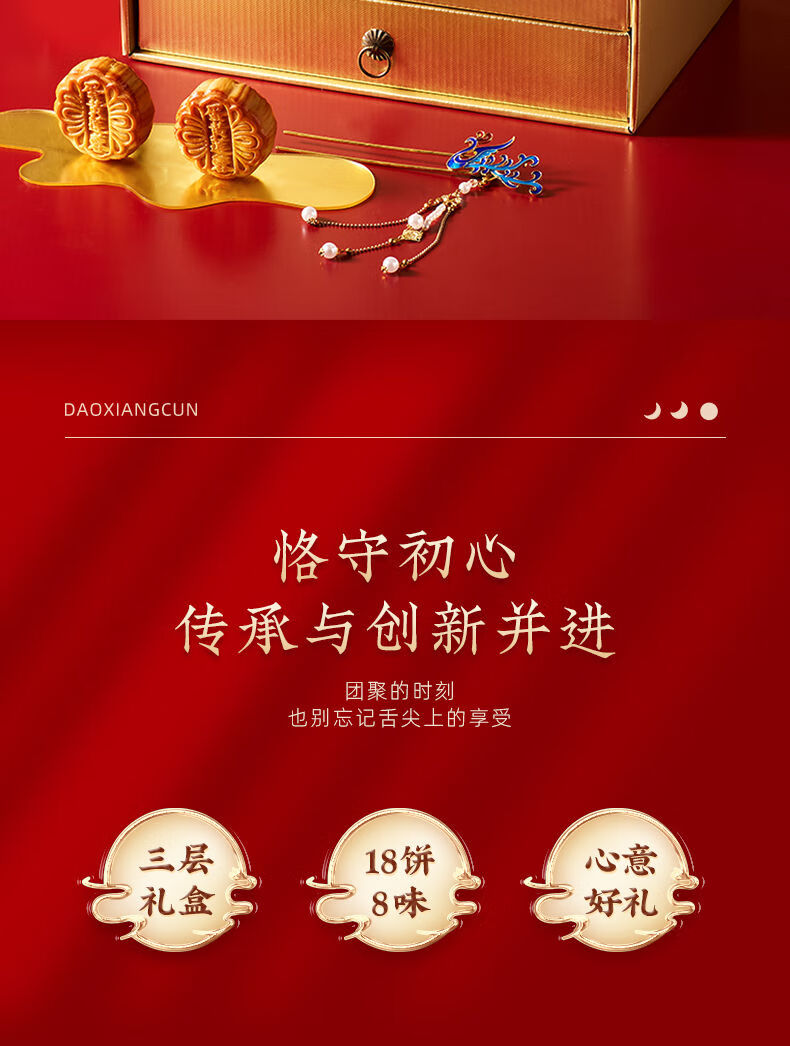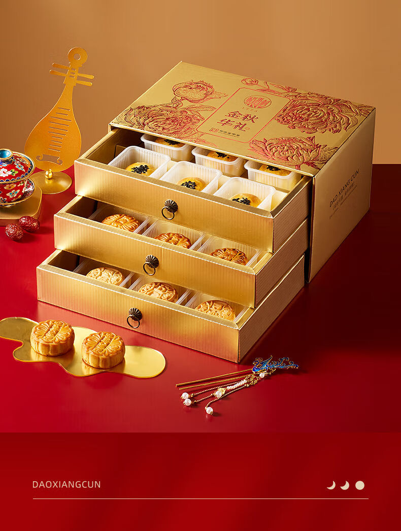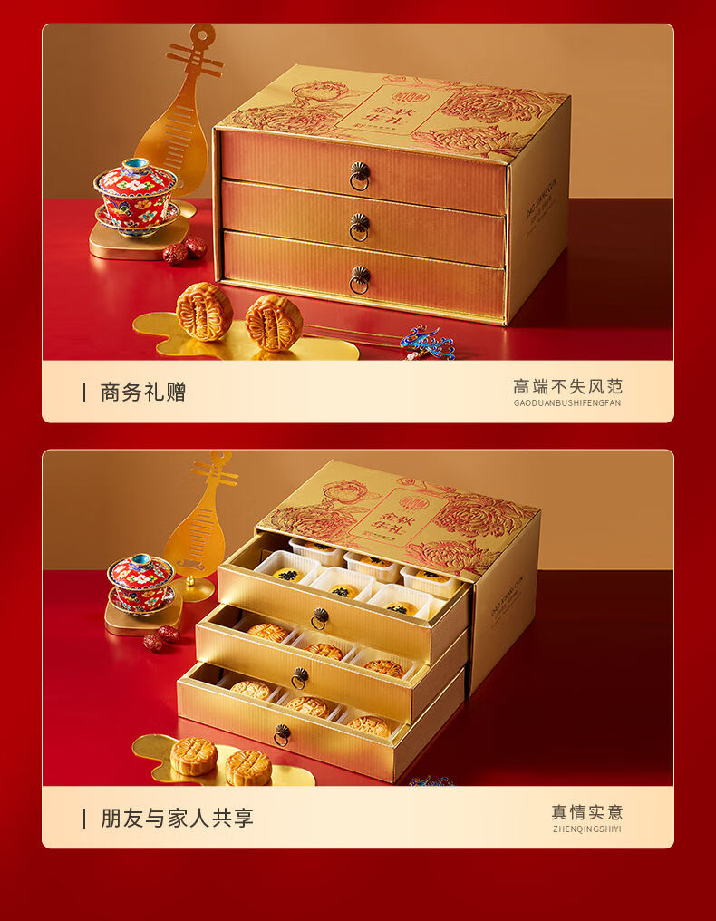 北京稻香村月饼礼盒广式蛋黄莲蓉蛋酥组合中秋节送礼高端礼品三层装 三层高端金色礼盒【18饼8味】