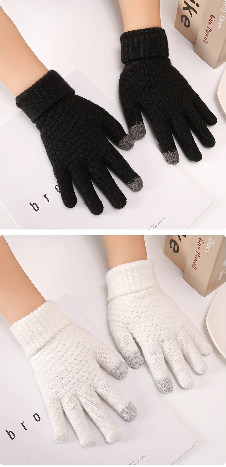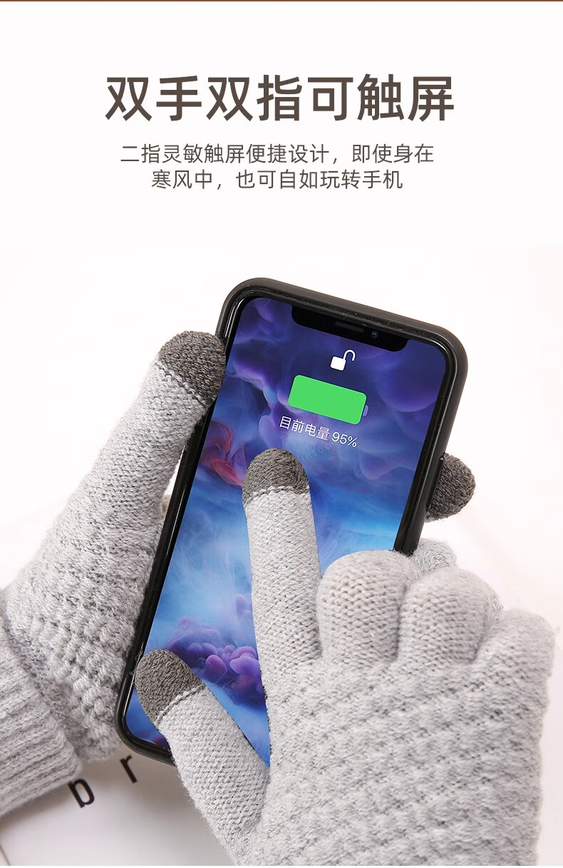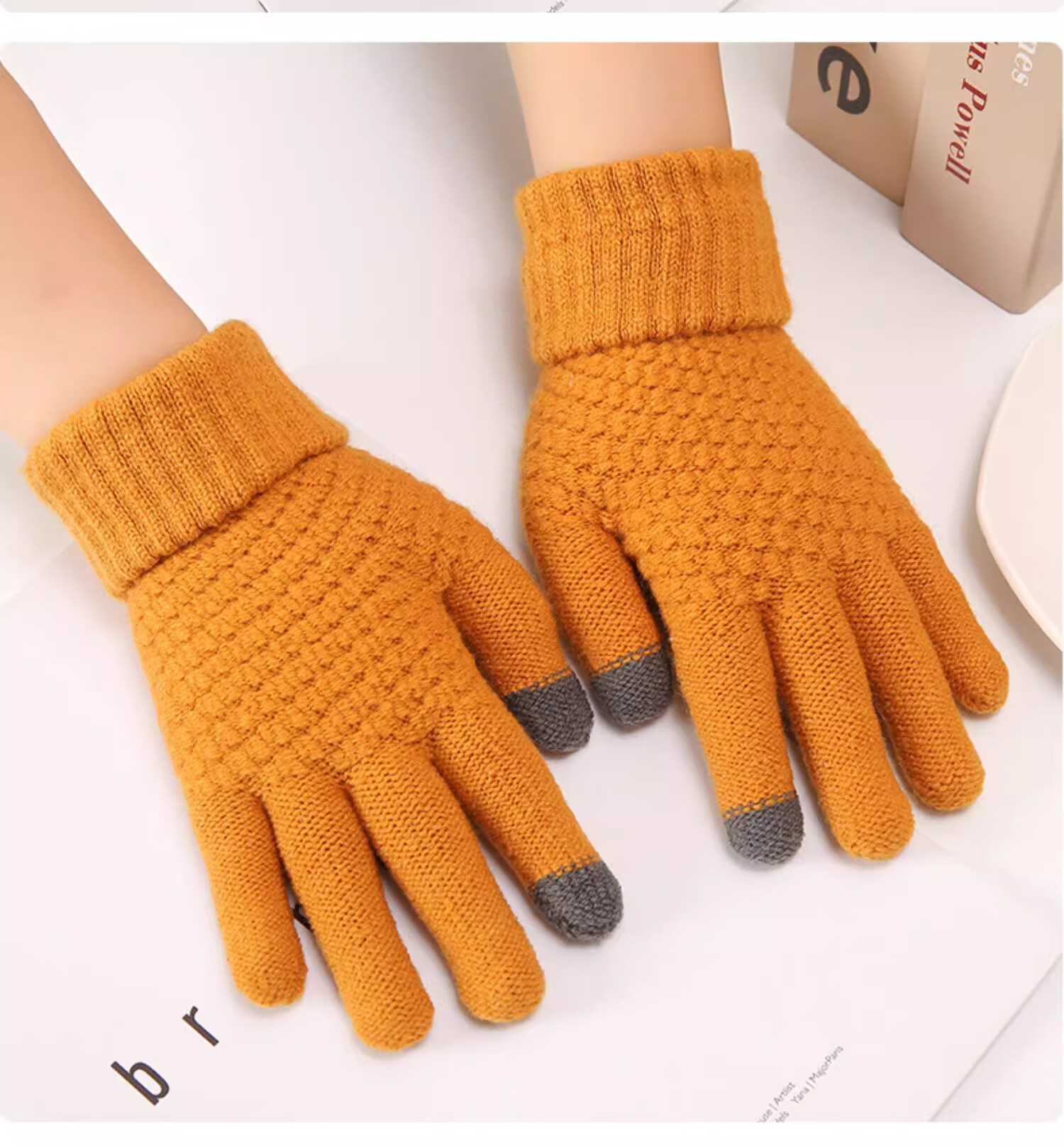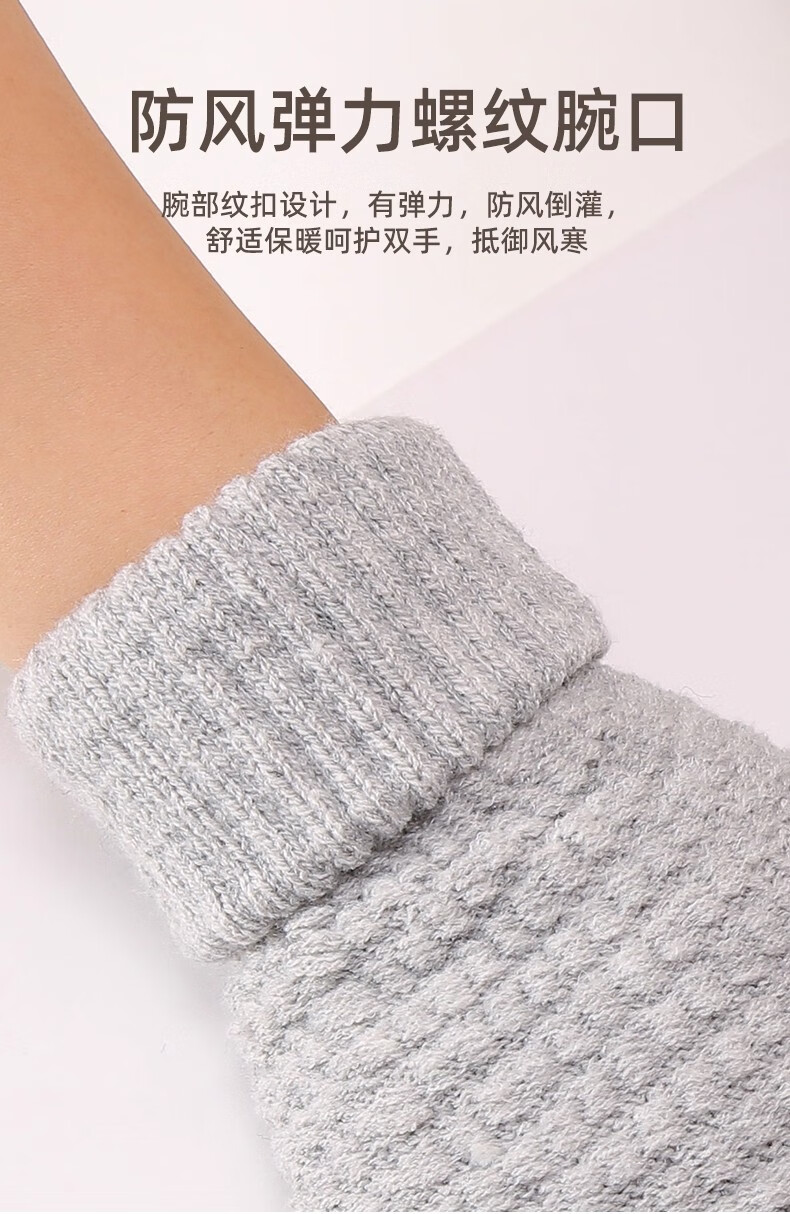 可触屏骑行保暖手套户外运动女加绒加厚棉防寒毛线手套秋冬男耐用 姜黄色【双指触屏 亲肤保暖】 均码