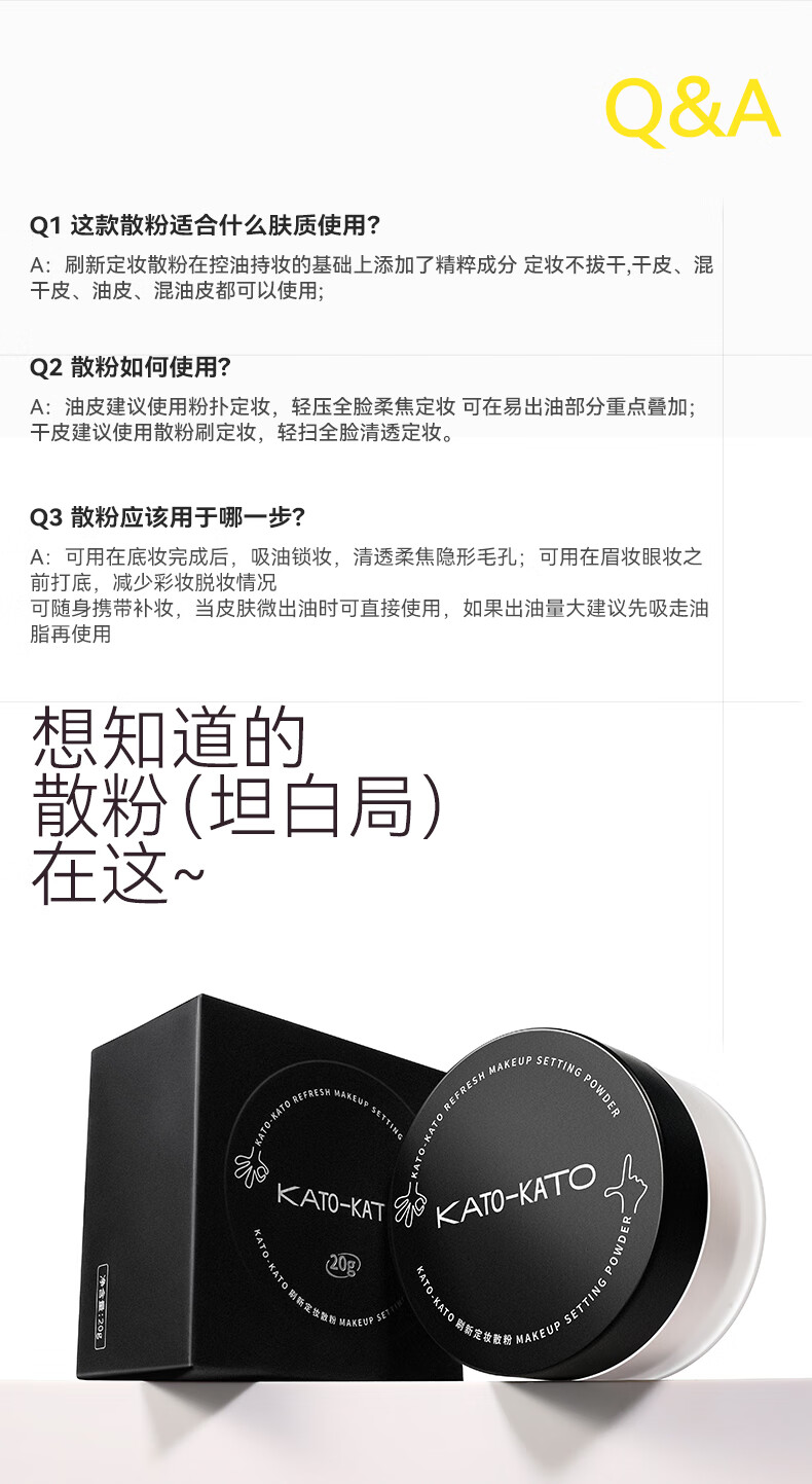 KATO-KATO刷新定妆散粉20g持久控油不脱妆雾面柔焦修饰蜜粉 新年礼物送女友