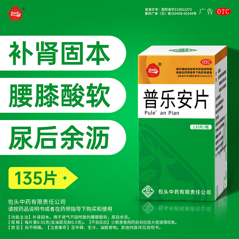 包中 普乐安片135片前列腺炎专用药前列腺增生肥大钙化前列腺药男性慢性前列腺炎尿频尿急尿不尽药前列腺炎药
