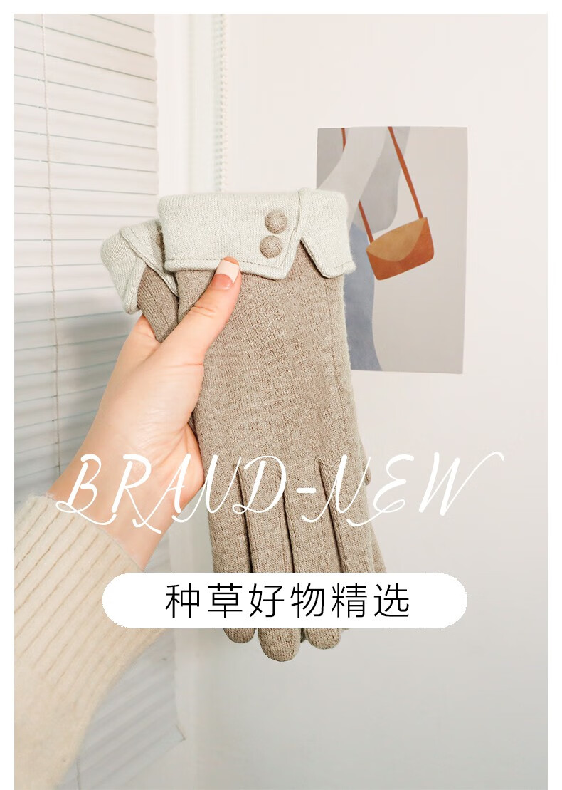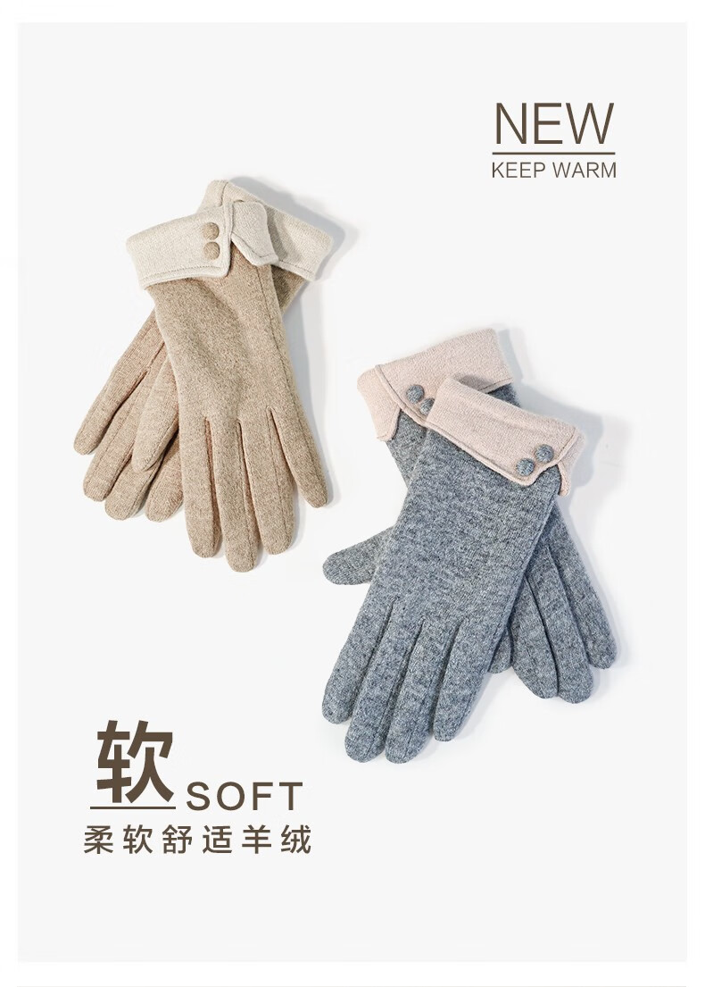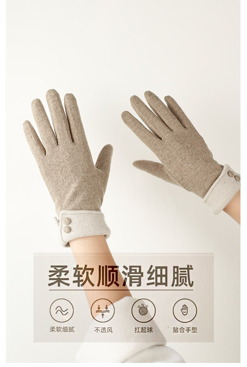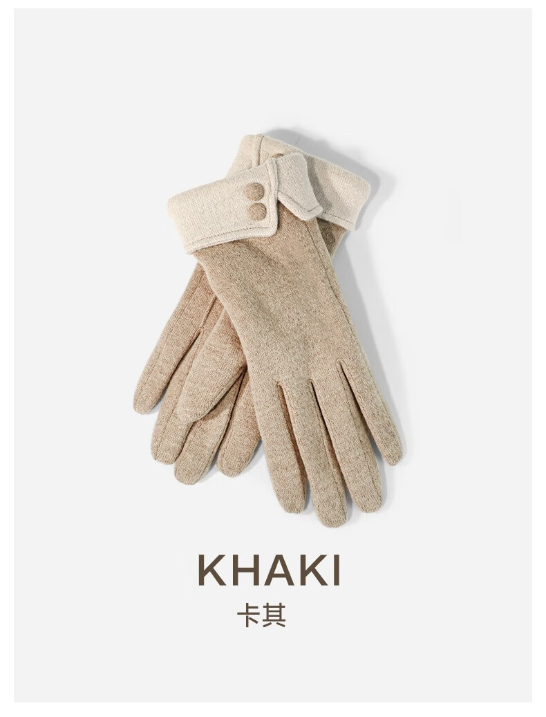 SOMUBAY手套女冬天加绒加厚保暖质感手套女生开车骑车防寒可触屏分指手套 卡其