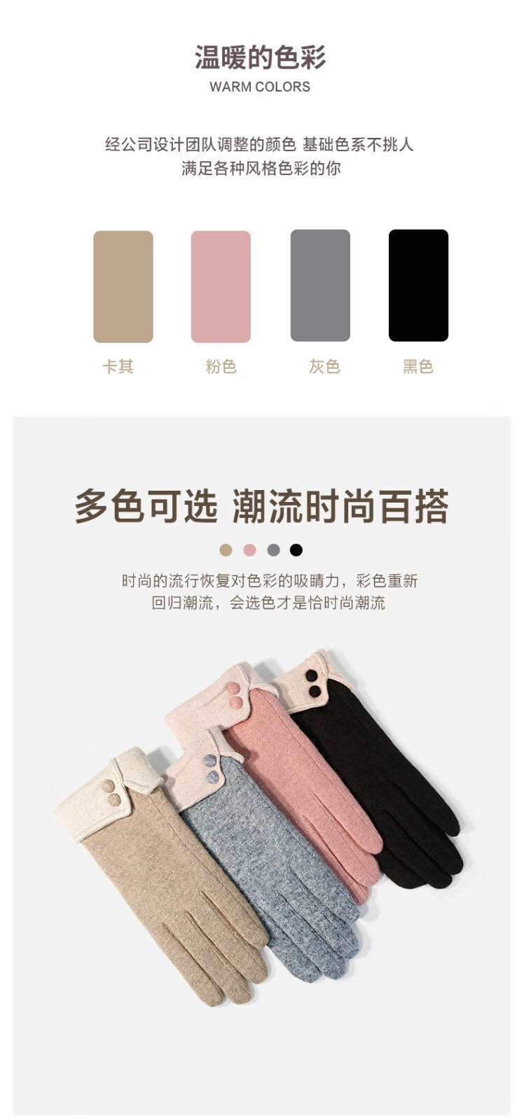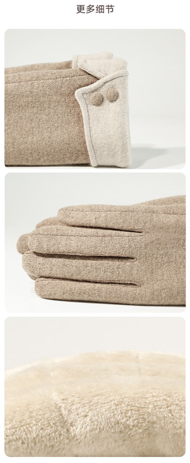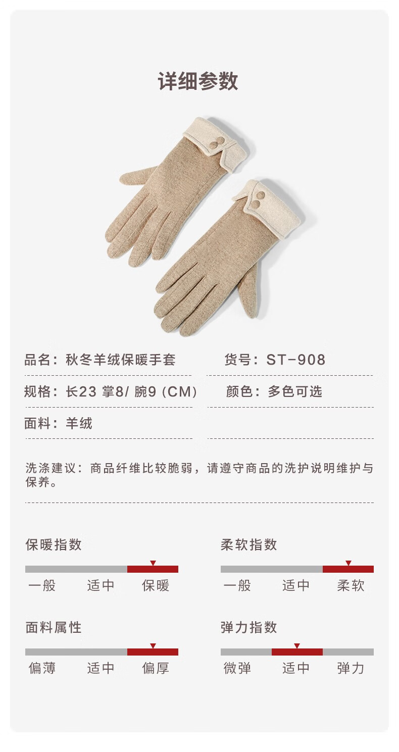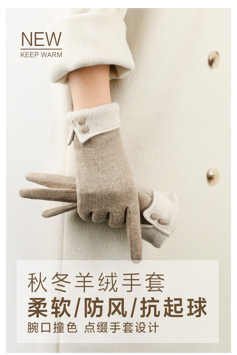 SOMUBAY手套女冬天加绒加厚保暖质感手套女生开车骑车防寒可触屏分指手套 卡其