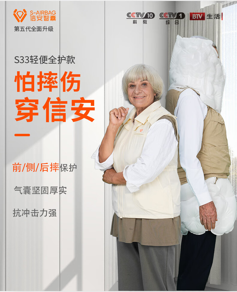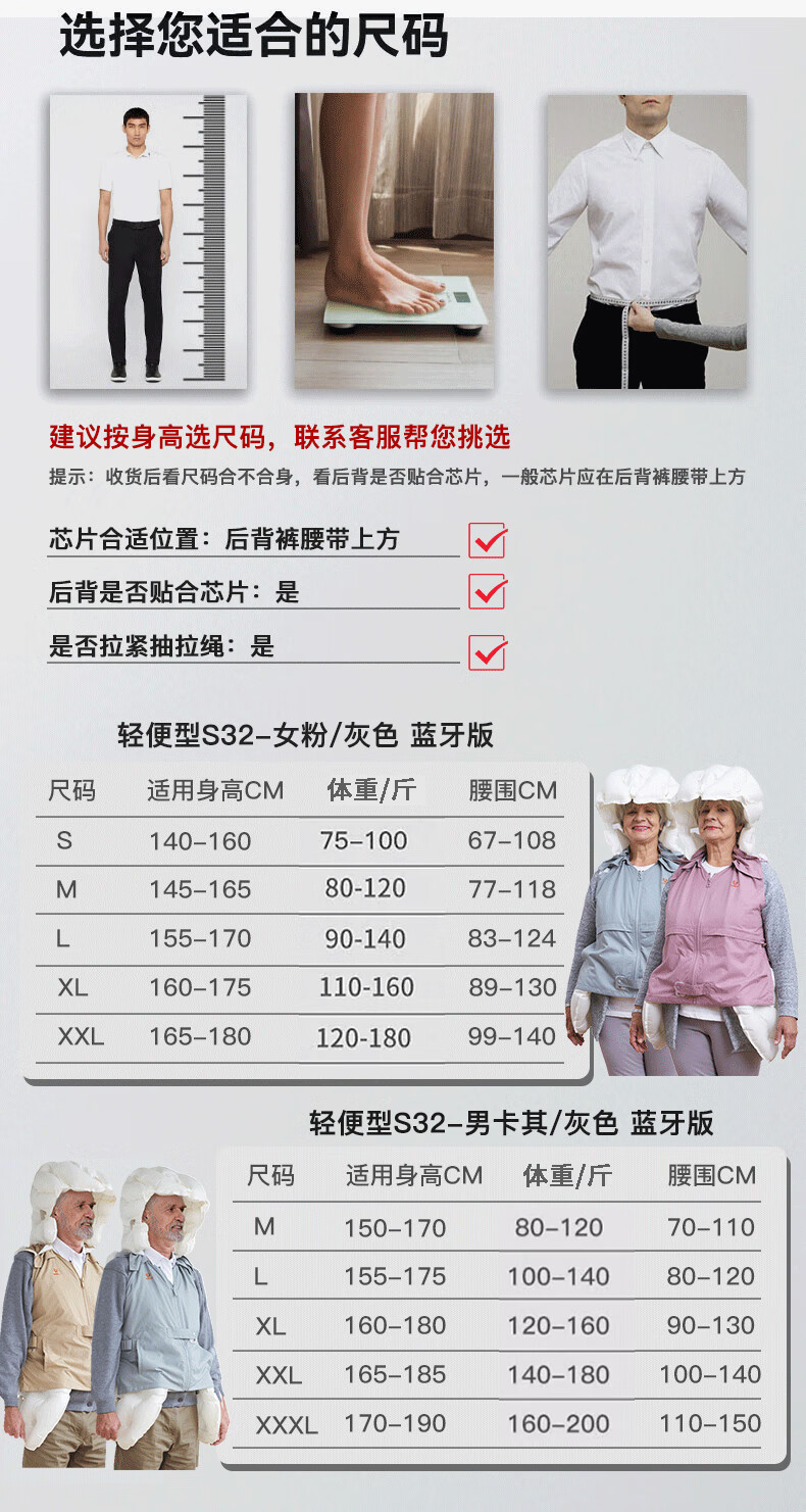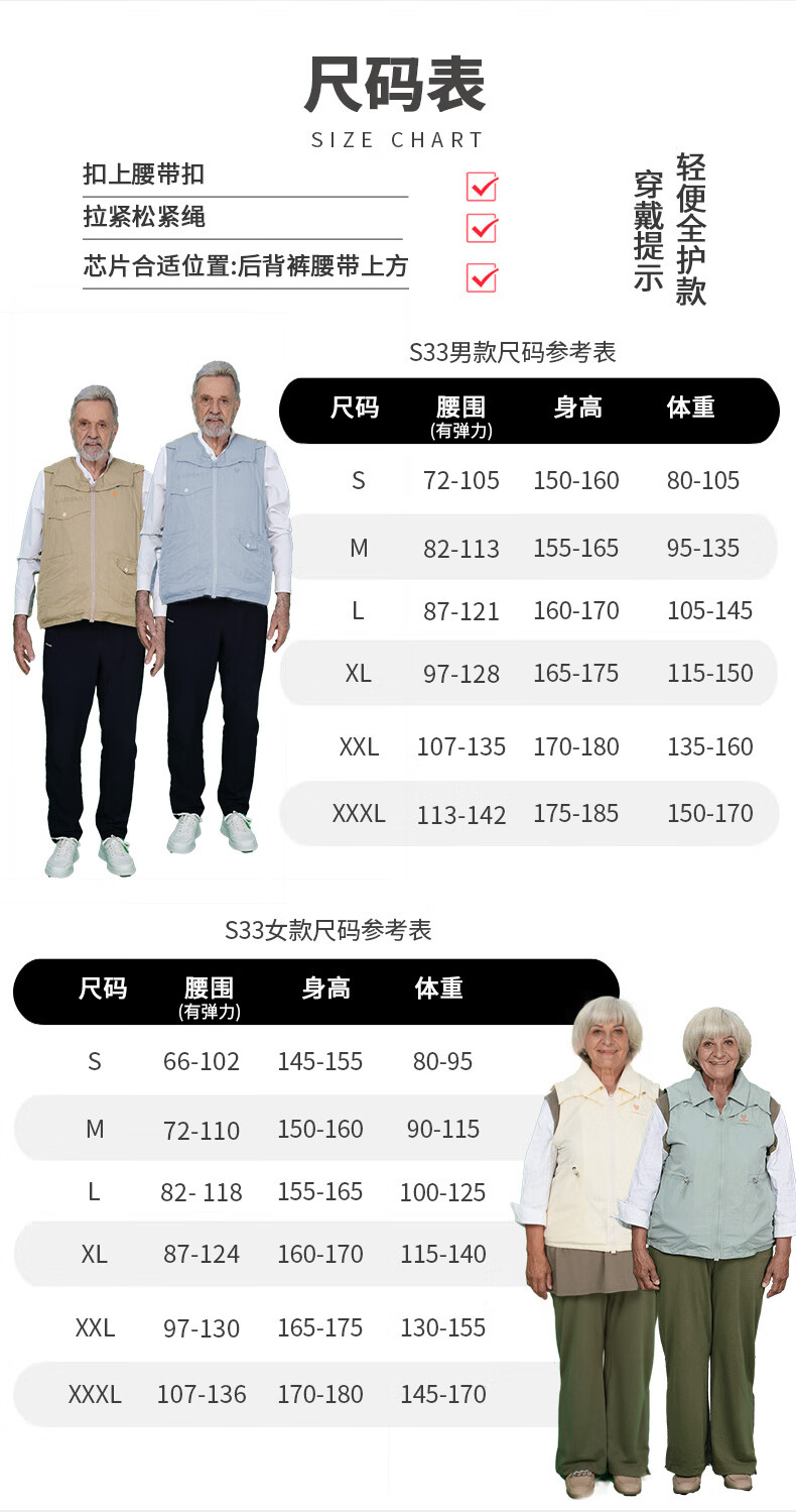 信安智囊信安智囊防摔气囊马甲老人防摔气囊服老年防跌倒神器保护送长辈 S33轻便全护款-女蓝灰 XL
