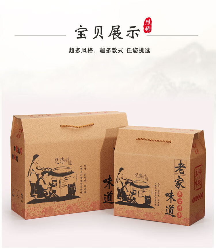开言土特产包装盒定制年货礼盒空盒子通用特产腊味熟食农产品批发纸箱 房子款老家味道【大号】 包装盒 x 0x0x0cm