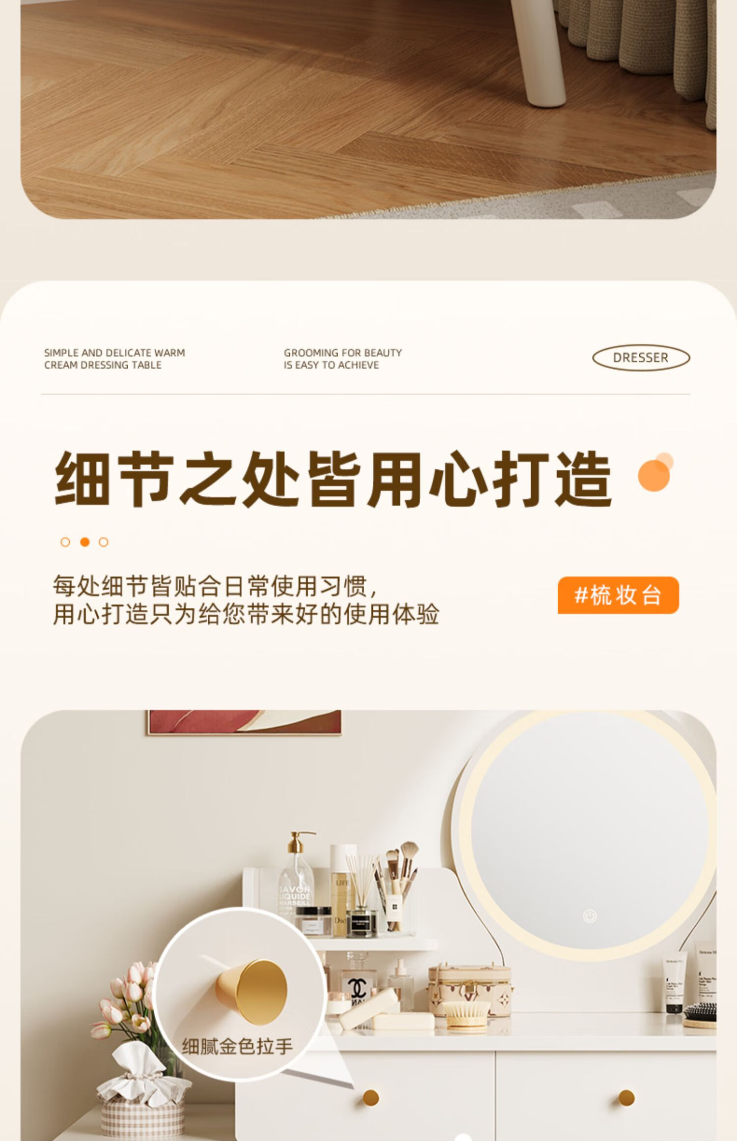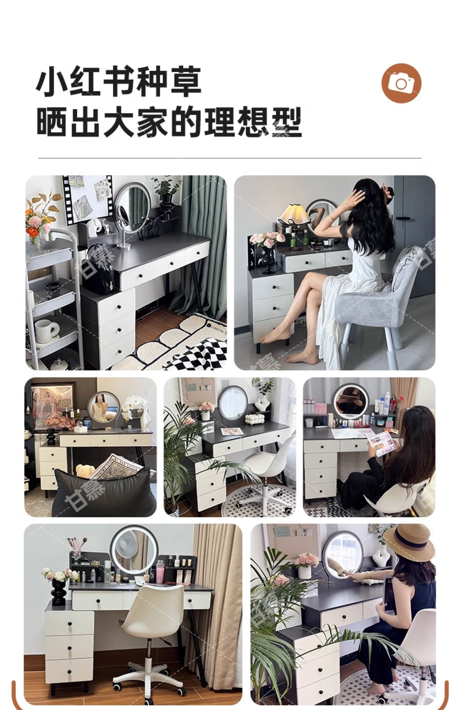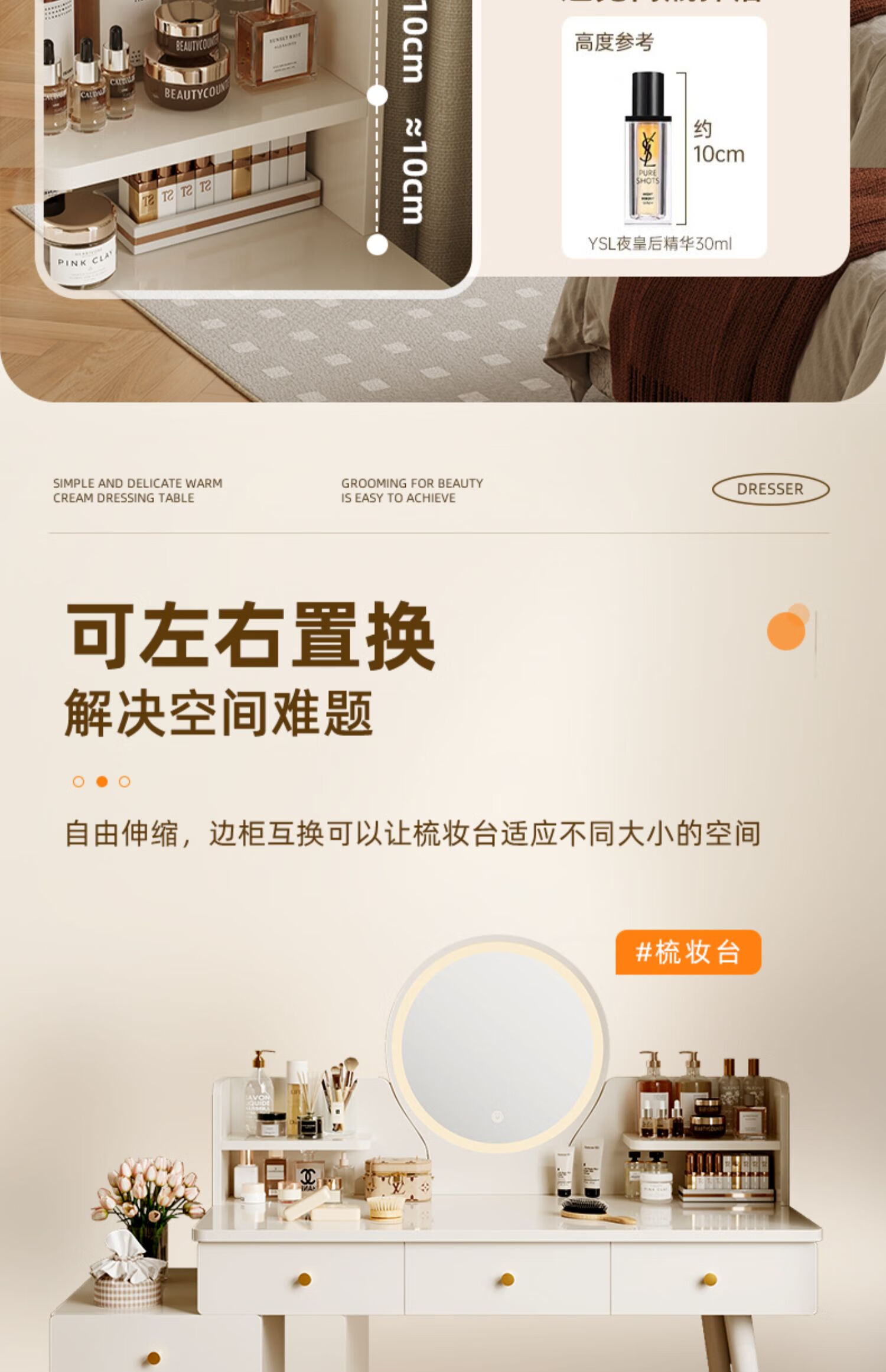 御乐欣实木梳妆台斗柜收纳一体化妆桌家用卧室可伸缩简约灯镜化妆台桌子 力荐【高密度板-单桌】五抽灰色100cm 加厚板材 3年质保