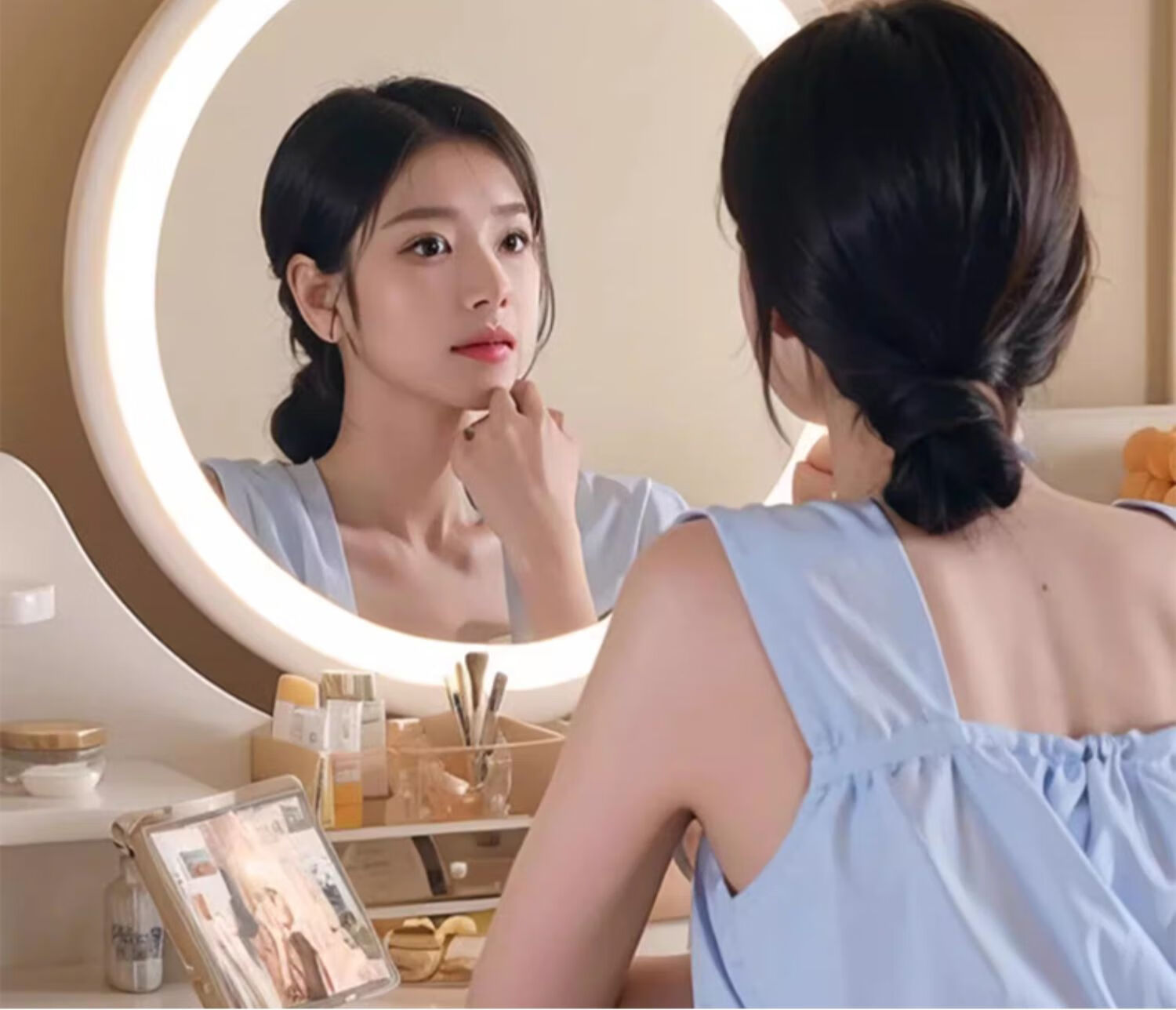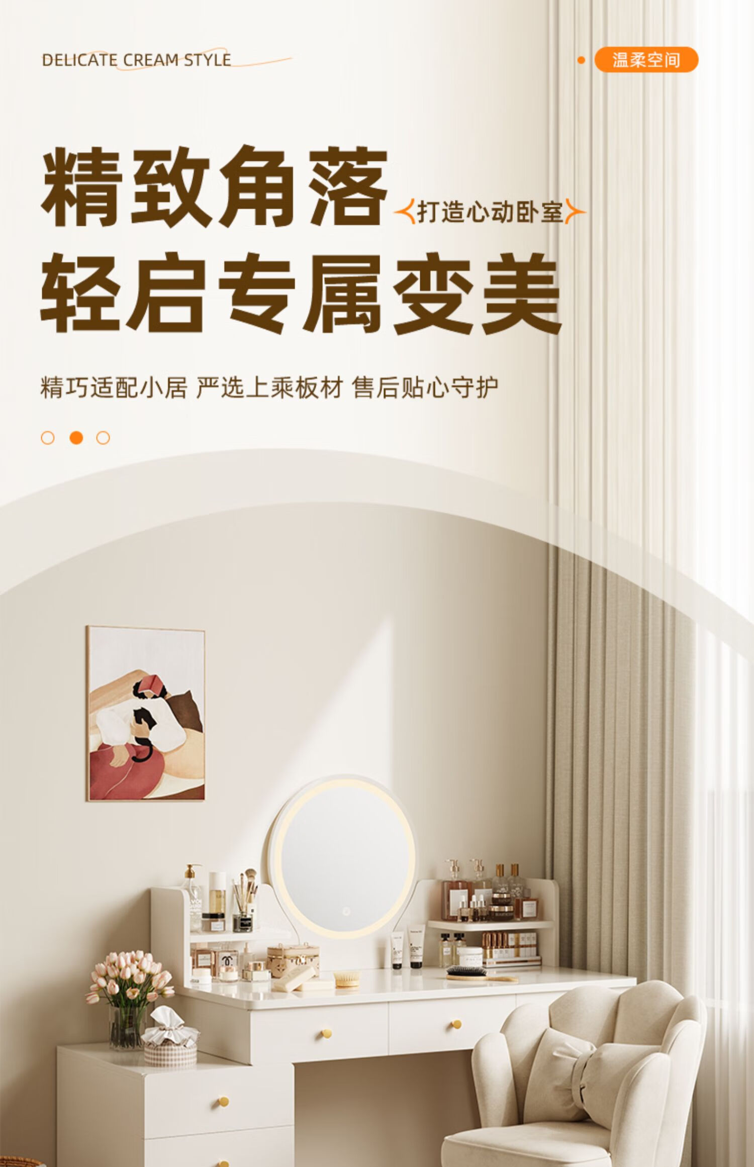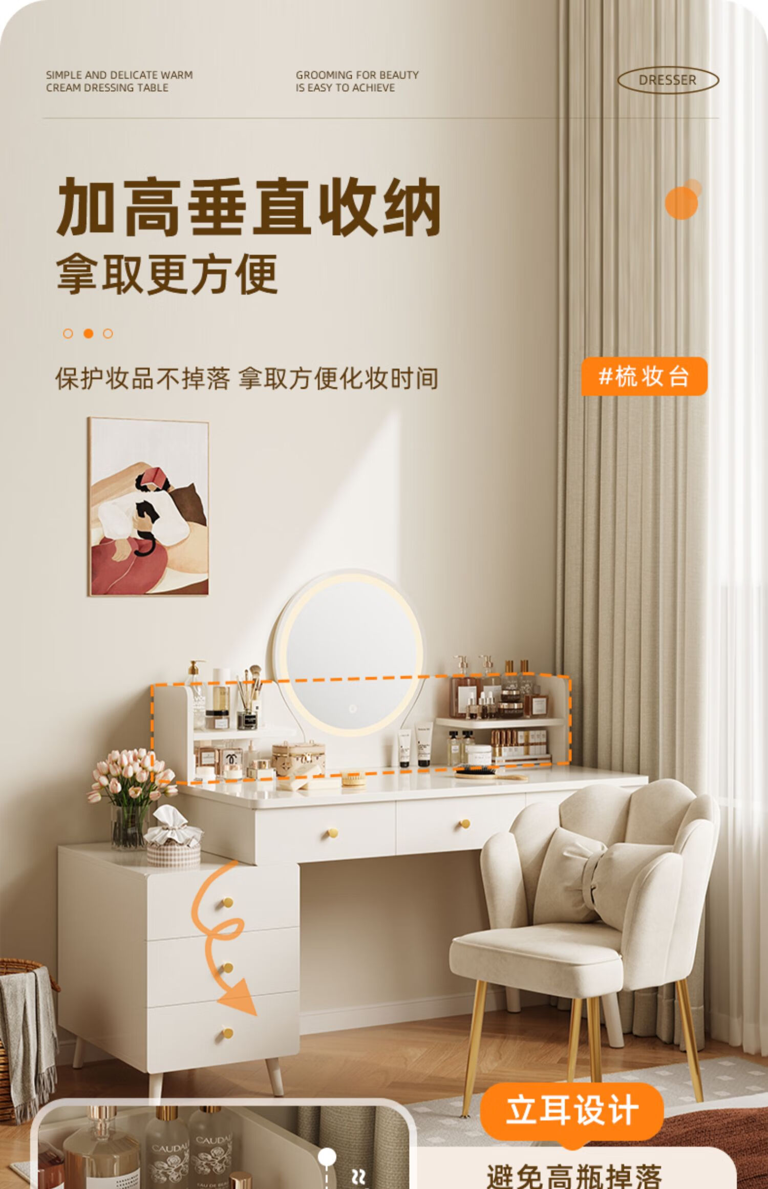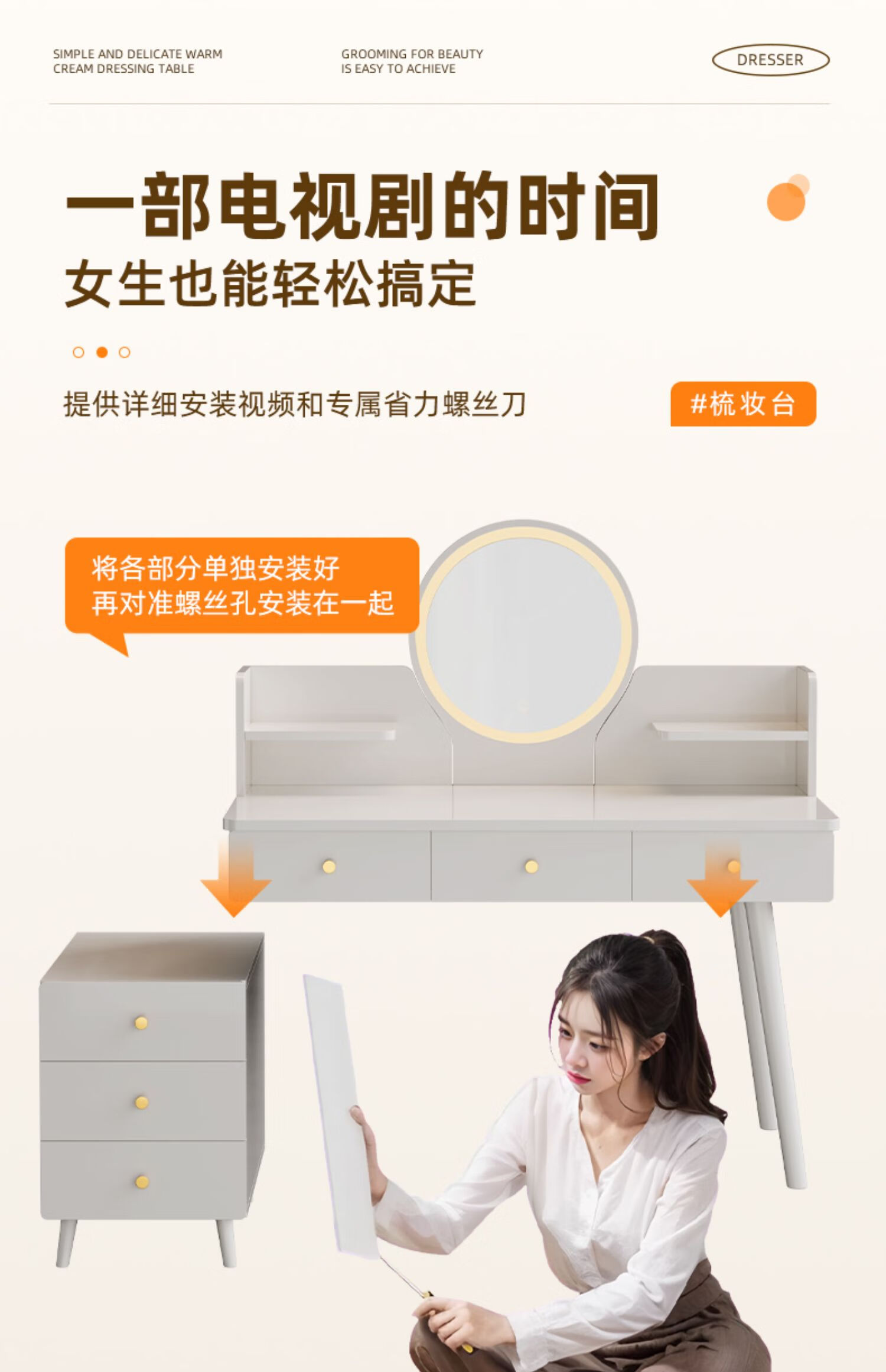 御乐欣实木梳妆台斗柜收纳一体化妆桌家用卧室可伸缩简约灯镜化妆台桌子 力荐【高密度板-单桌】五抽灰色100cm 加厚板材 3年质保