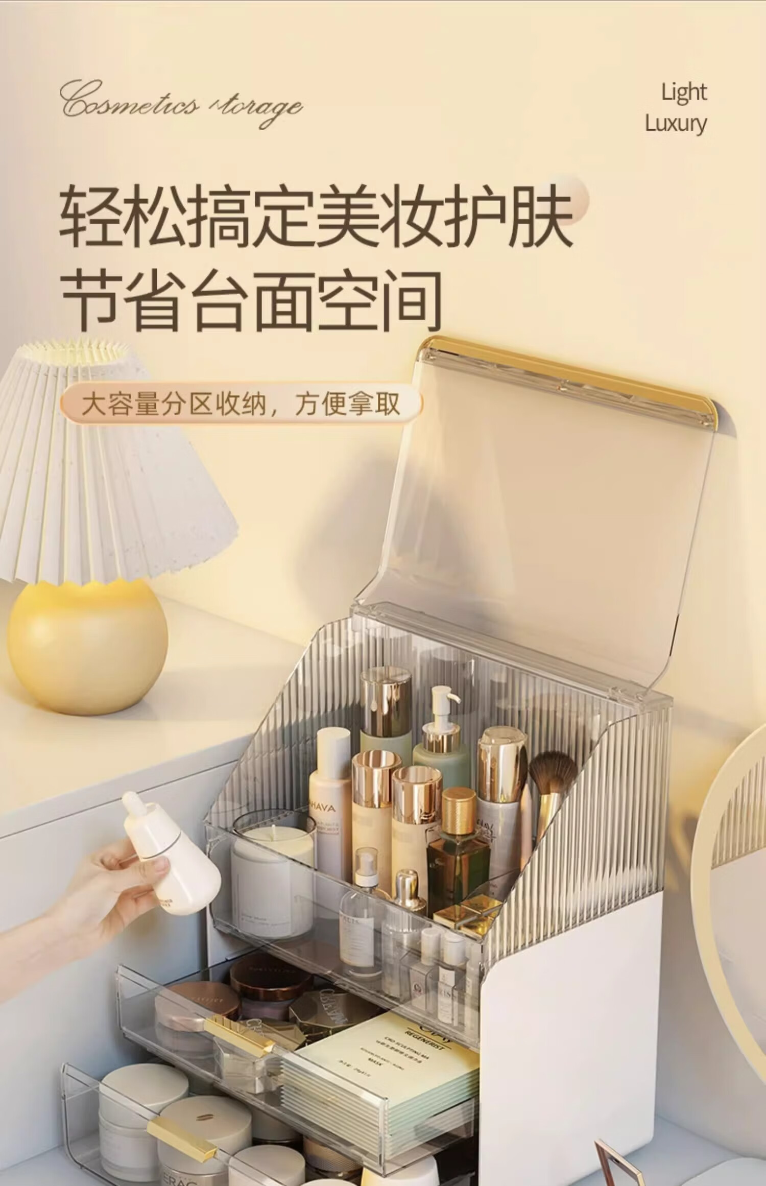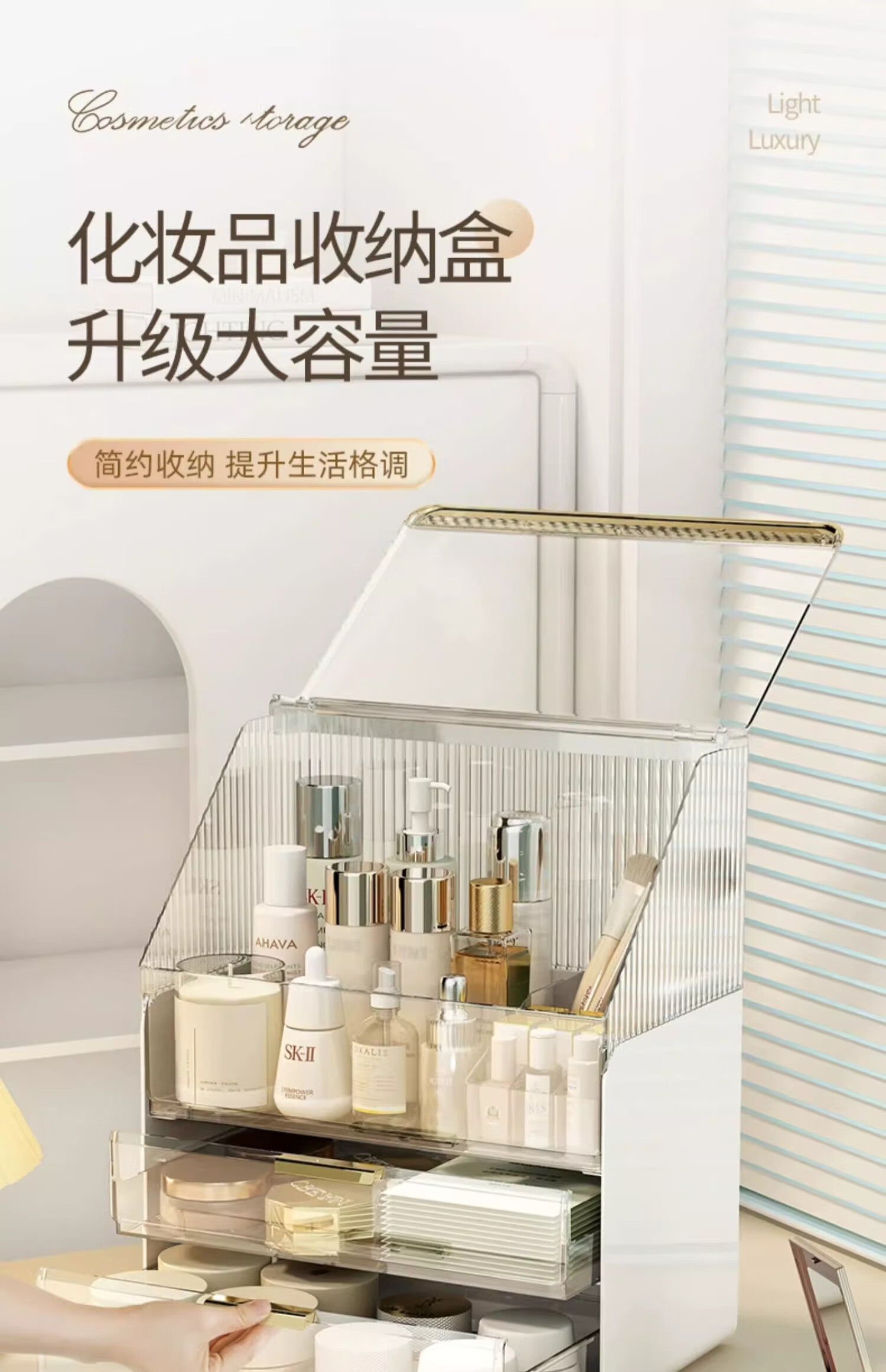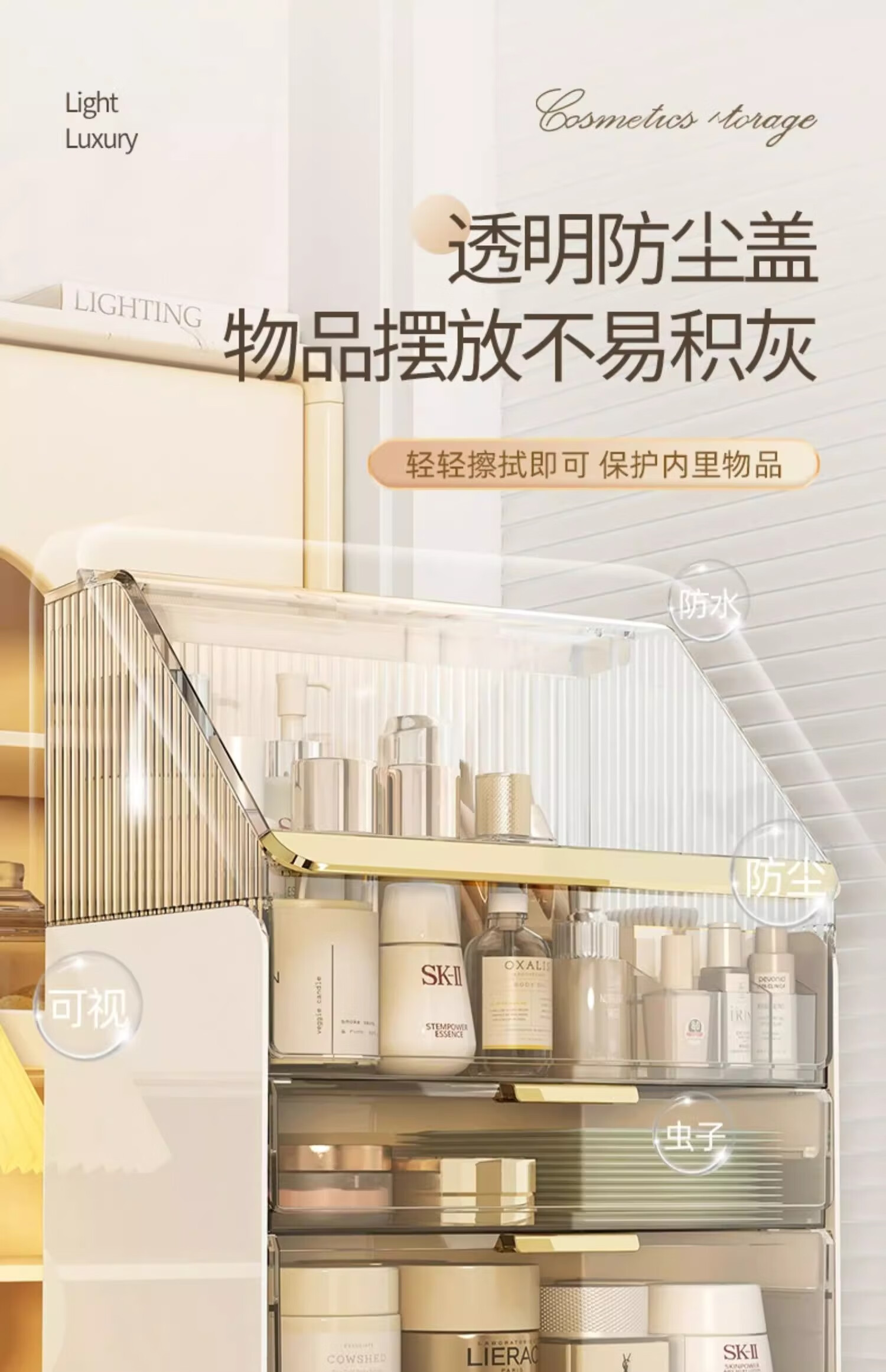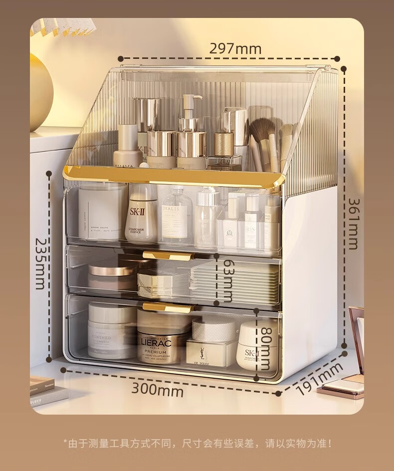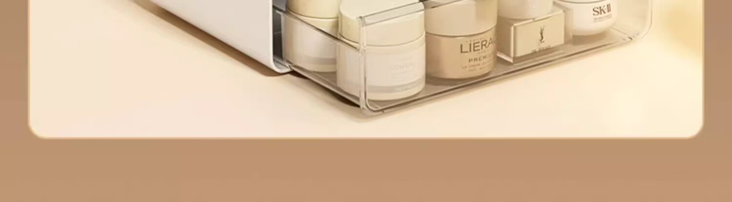 优勤(YOUQIN)化妆品收纳盒生日礼物梳妆台置物架高透亚克力轻奢抽屉防尘化妆箱 透白【超大容量防尘款】送口红盒