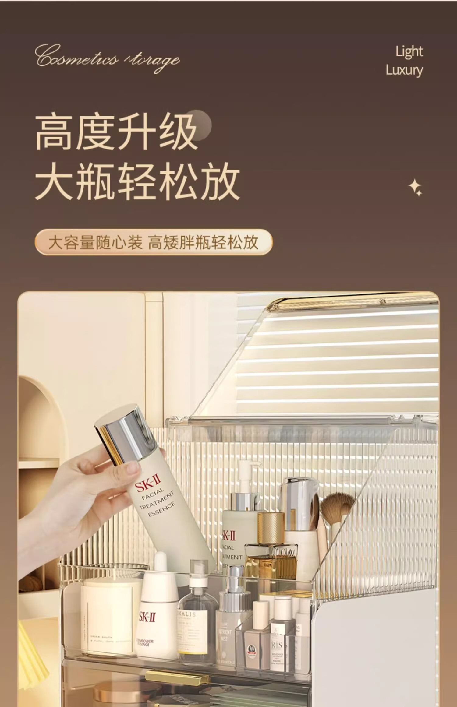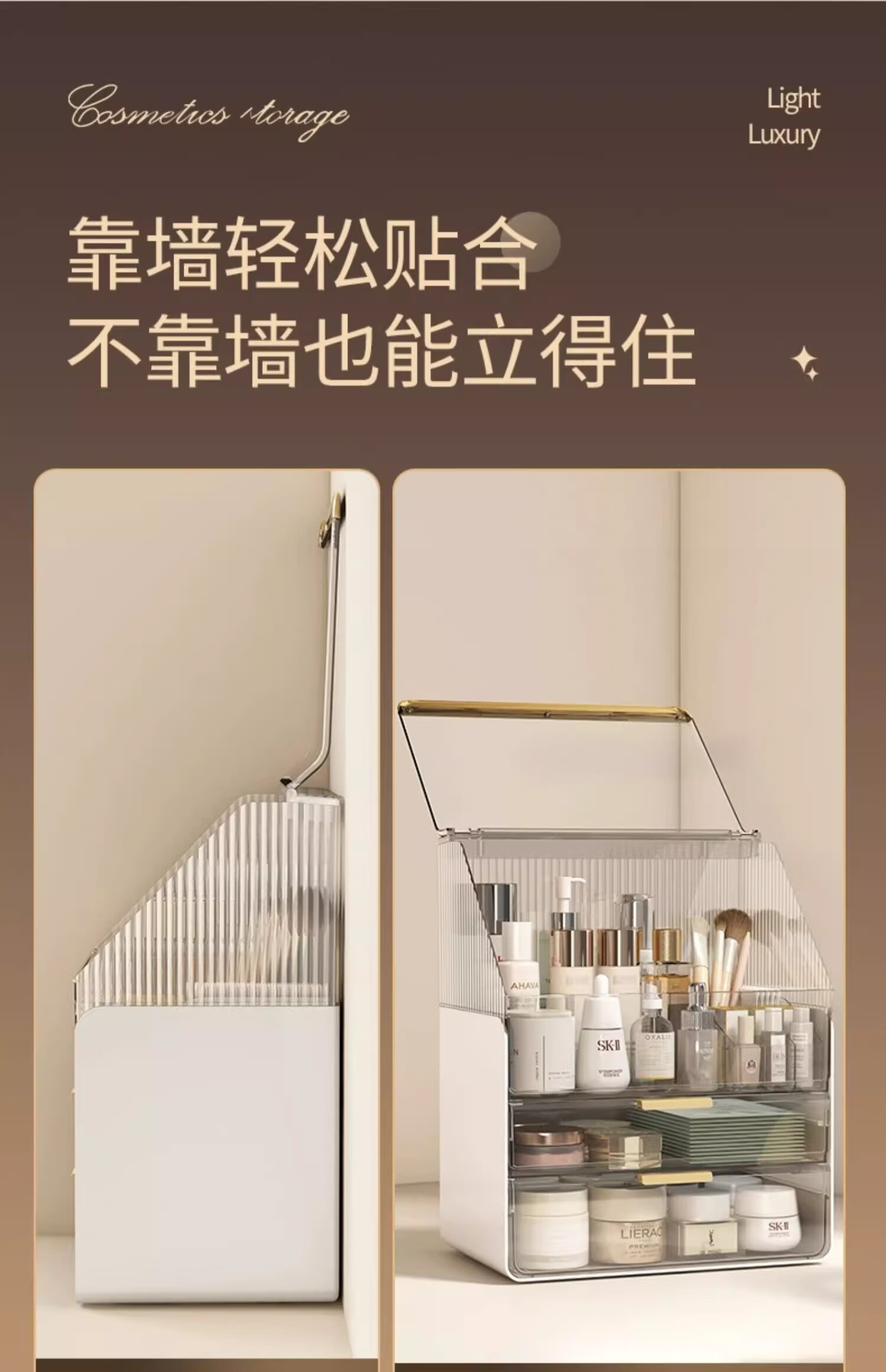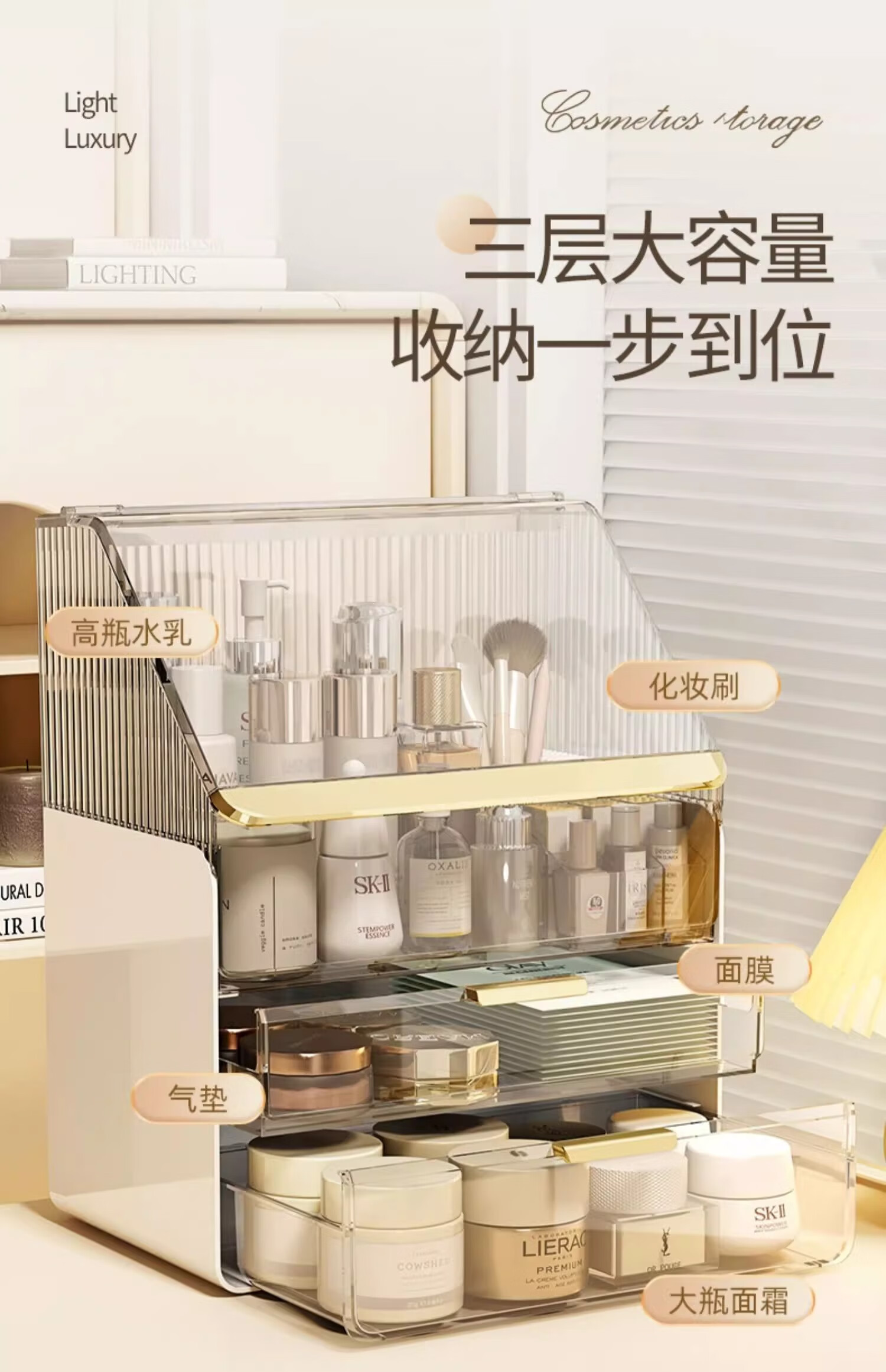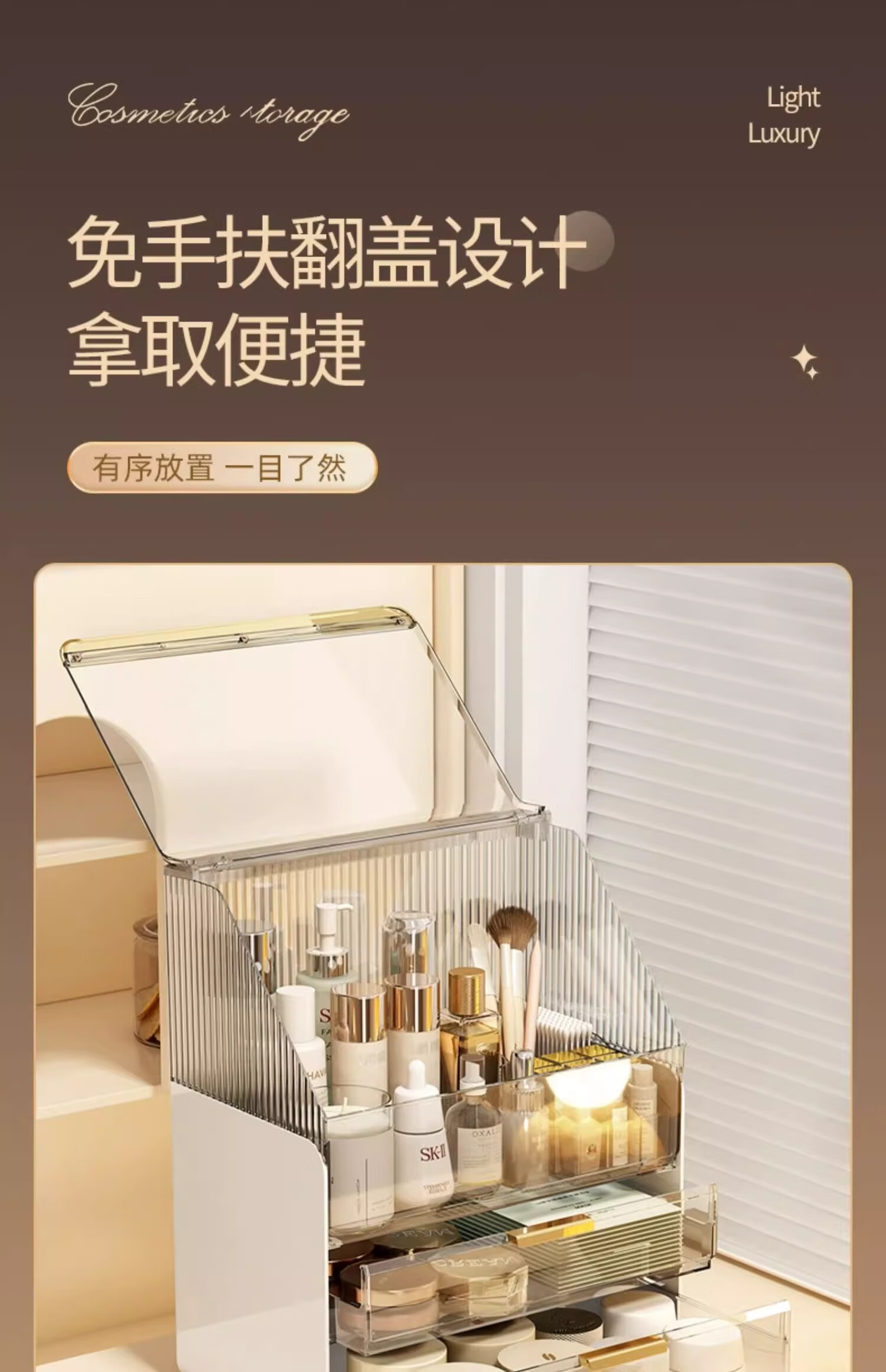 优勤(YOUQIN)化妆品收纳盒生日礼物梳妆台置物架高透亚克力轻奢抽屉防尘化妆箱 透白【超大容量防尘款】送口红盒