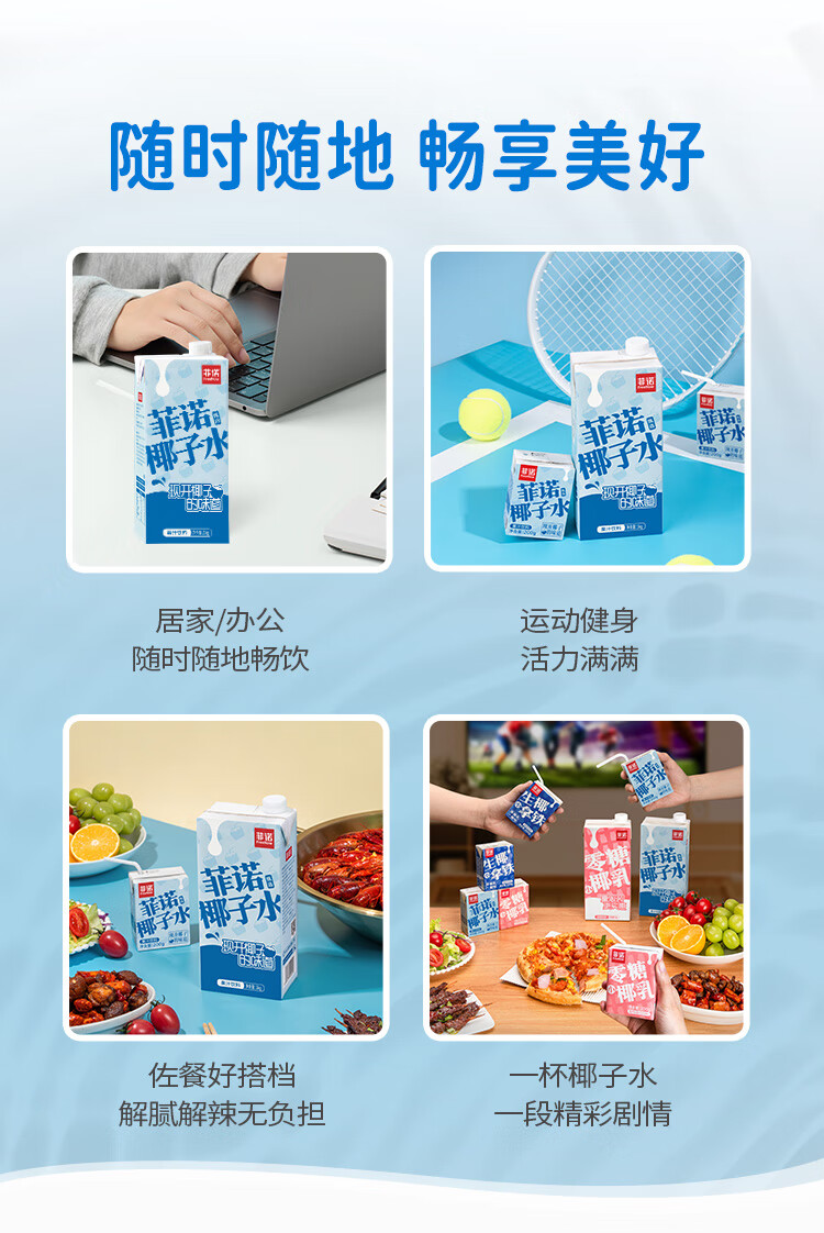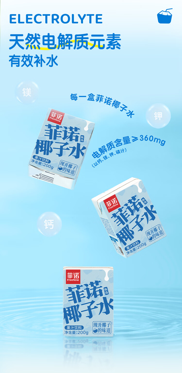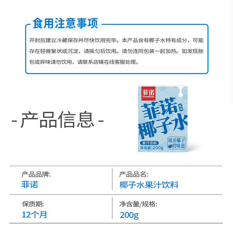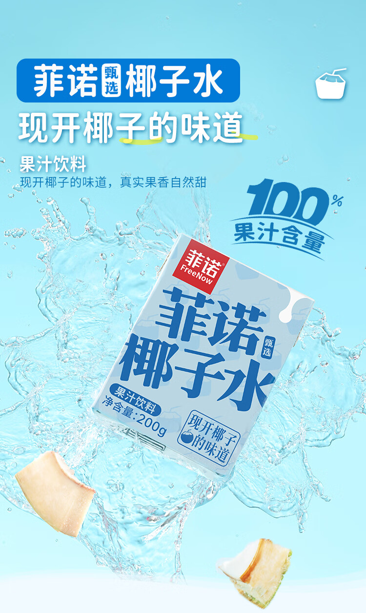菲诺 100%果汁含量椰子水 网红0脂肪椰汁椰青饮料 24盒 箱装
