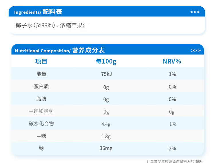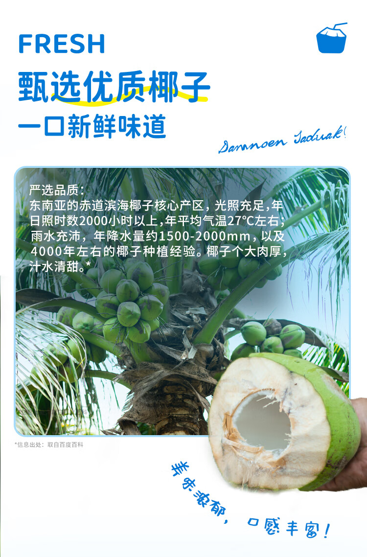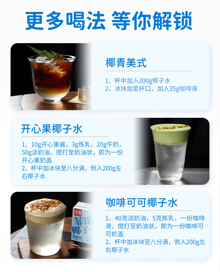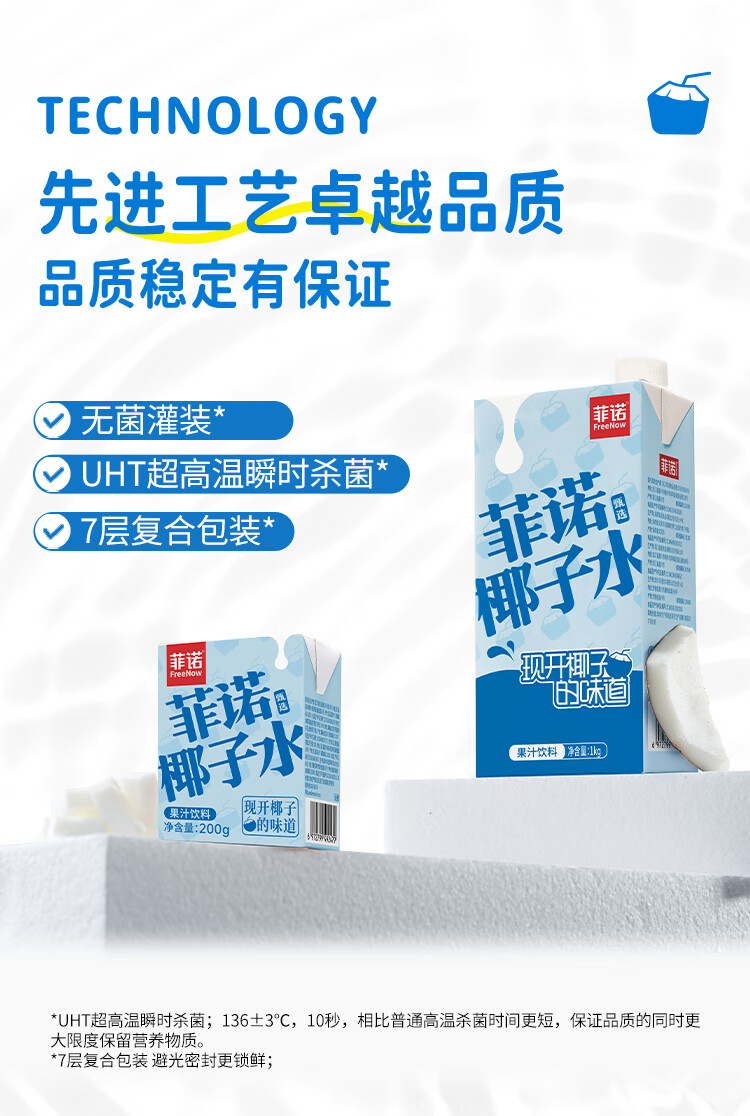 菲诺 100%果汁含量椰子水 网红0脂肪椰汁椰青饮料 24盒 箱装