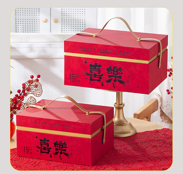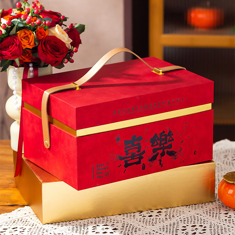 咏幻红色礼盒空盒大容量新婚伴手礼品盒餐具包装盒乔迁结婚大号礼物盒 中号红色喜乐天地盖30.5x21.5x16cm