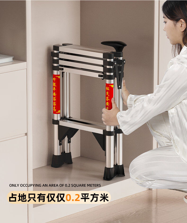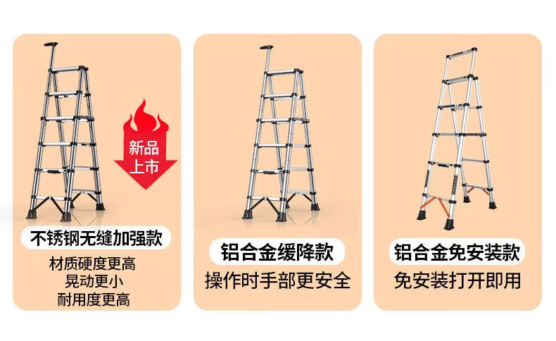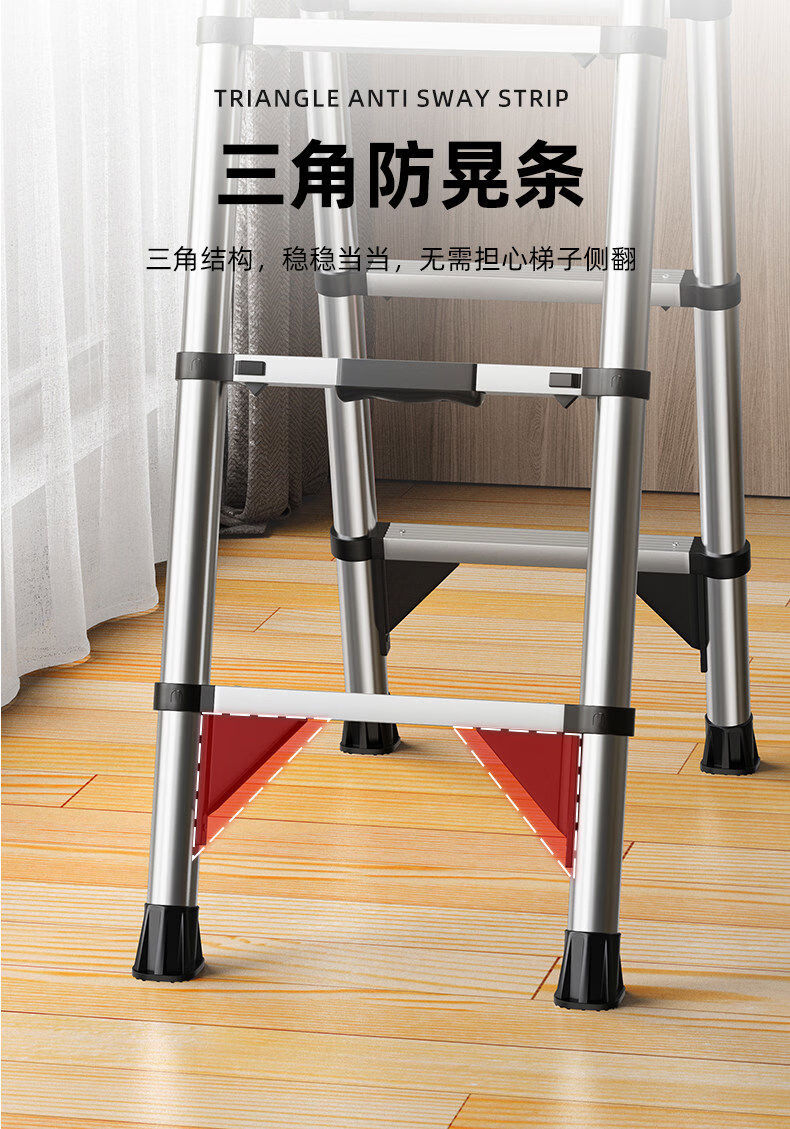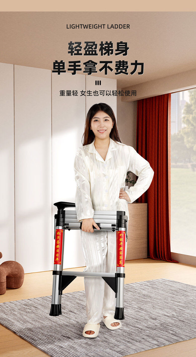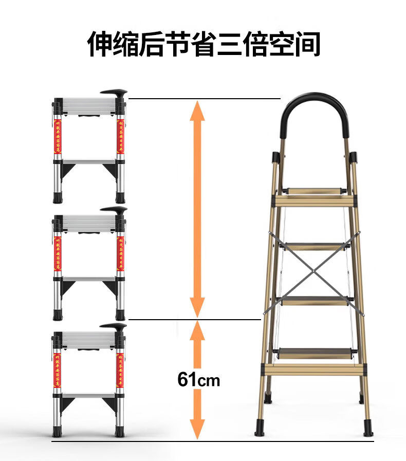 佳戈宝折叠伸缩梯室内人字梯家庭梯小型楼梯 +防晃+防夹手红款4步 伸缩梯