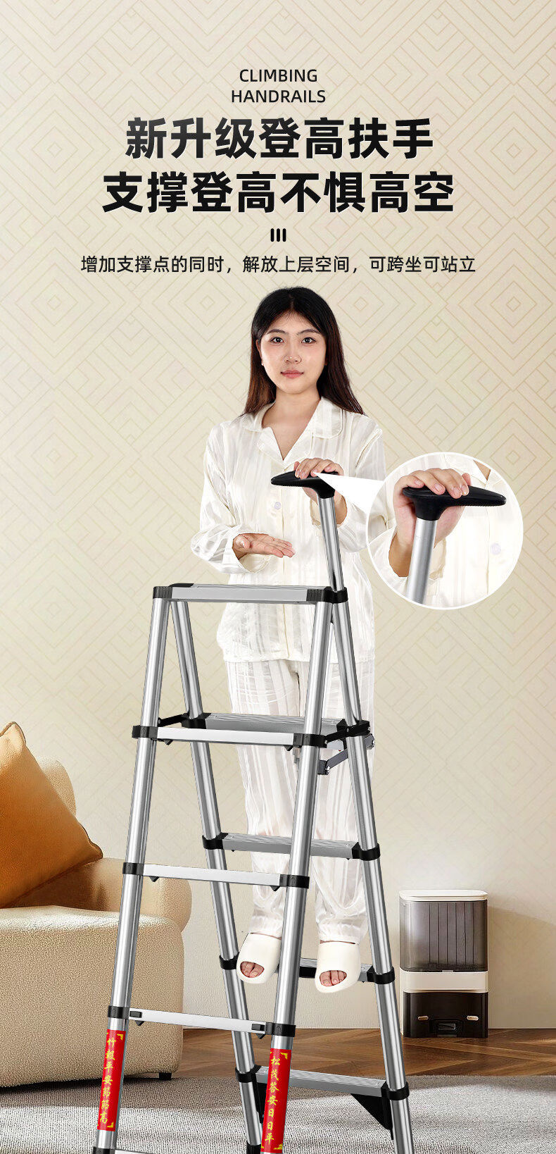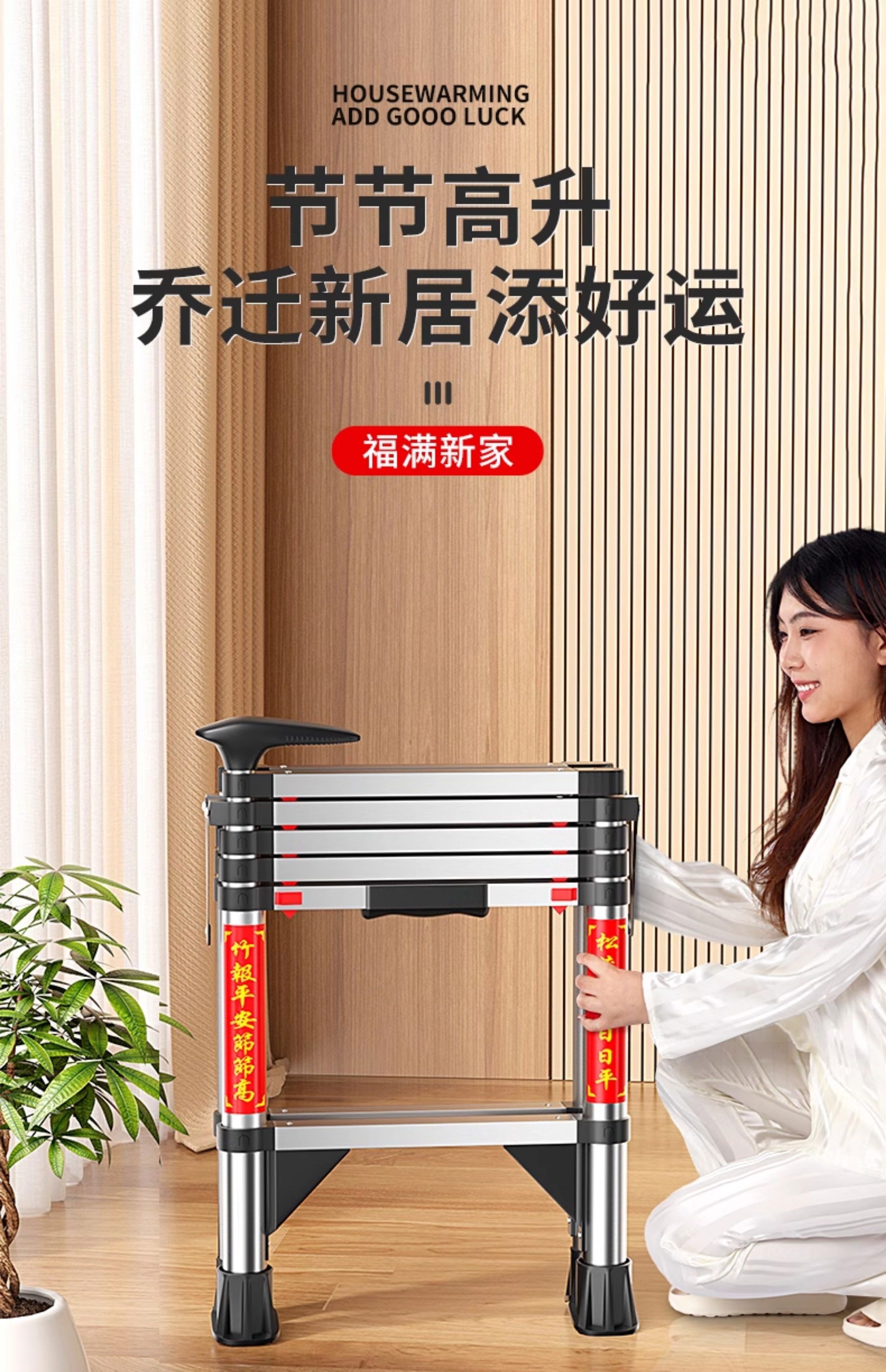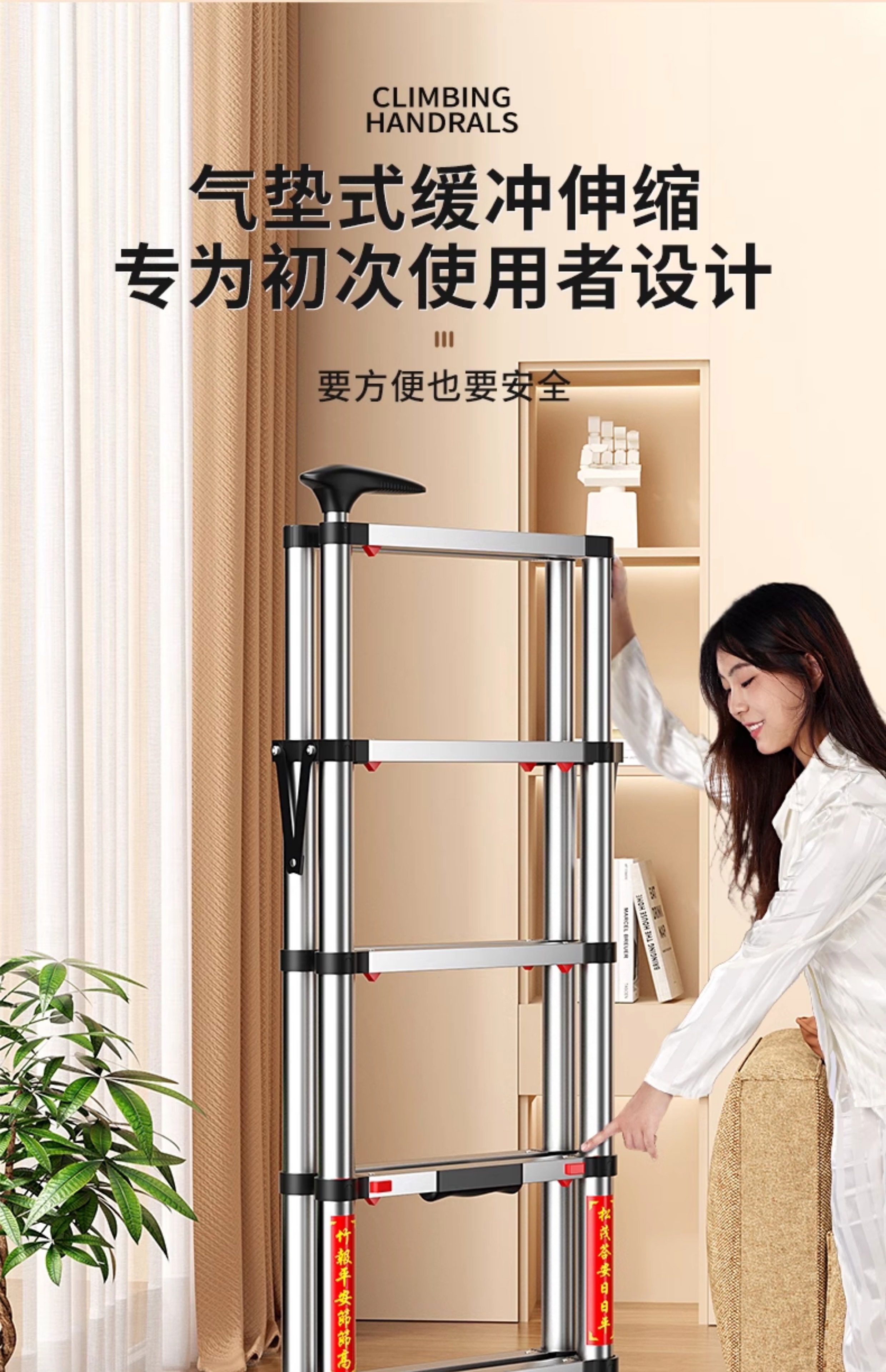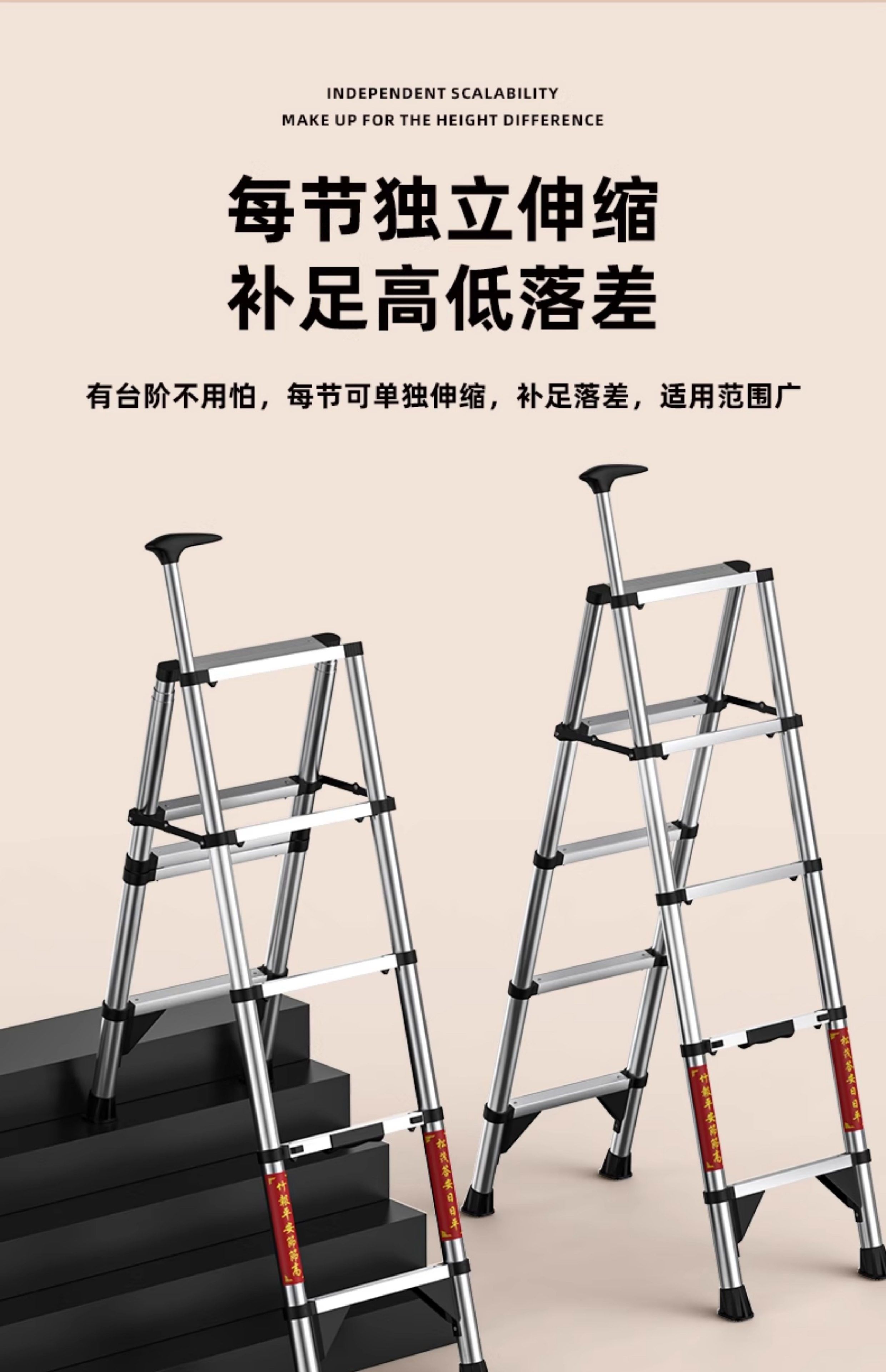 佳戈宝折叠伸缩梯室内人字梯家庭梯小型楼梯 +防晃+防夹手红款4步 伸缩梯