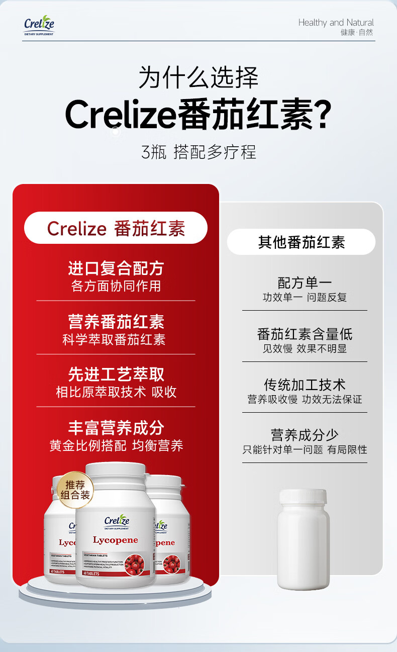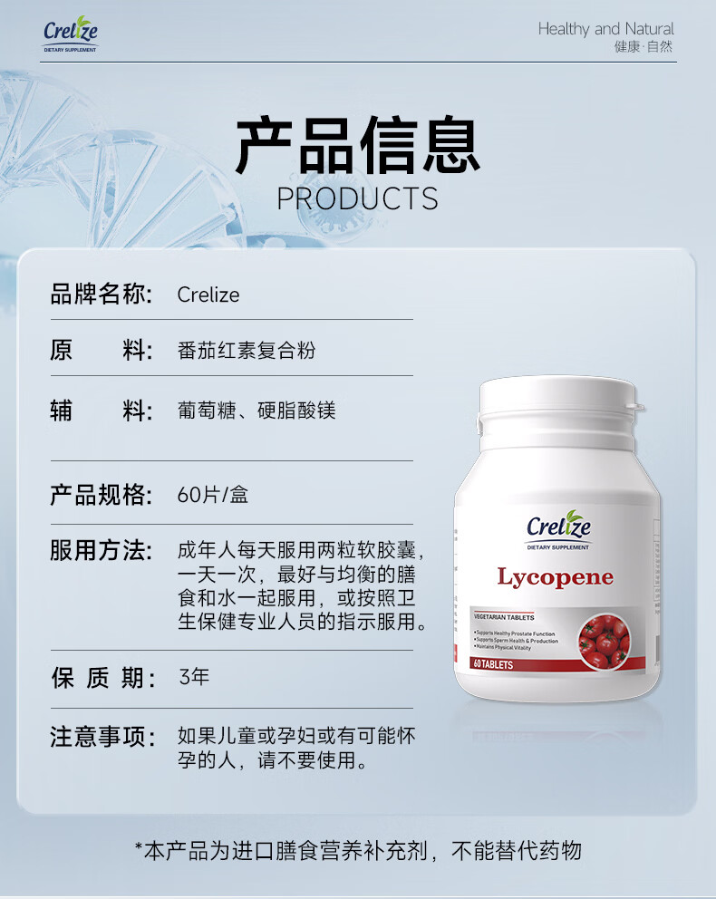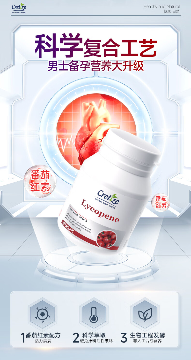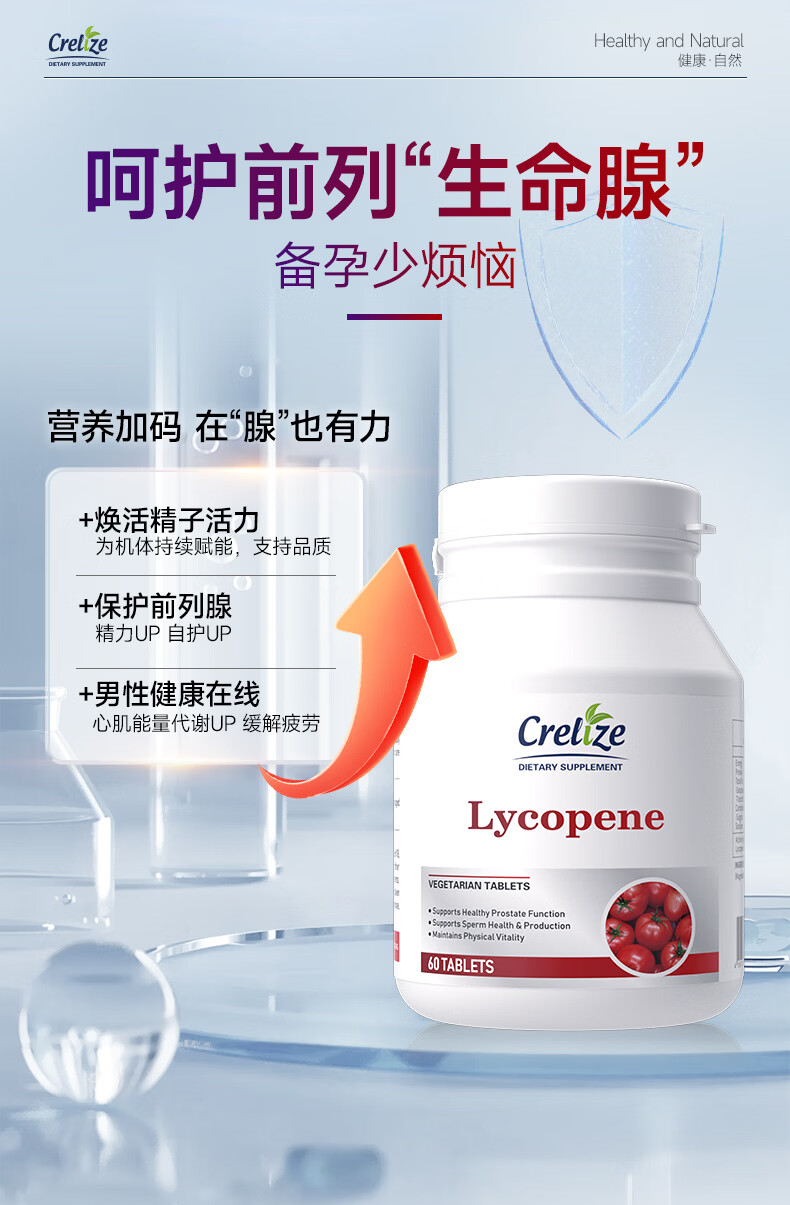 CRELIZE番茄红素片男性备孕浓缩前列腺补肾保健品 1瓶体验装【10%用户购买】