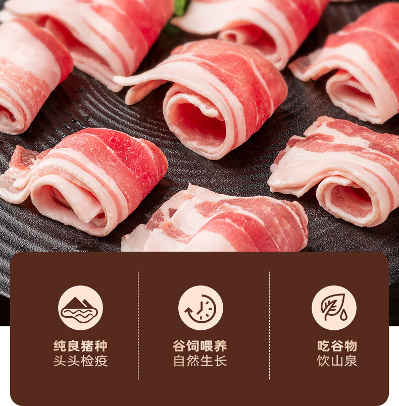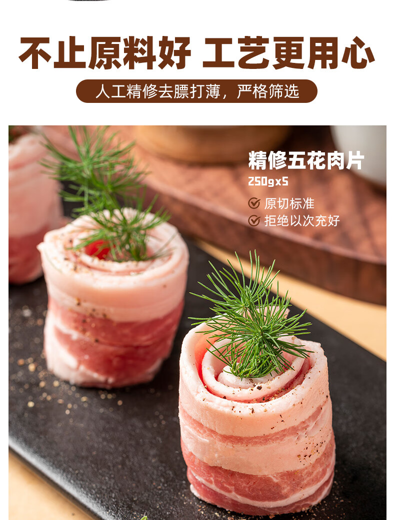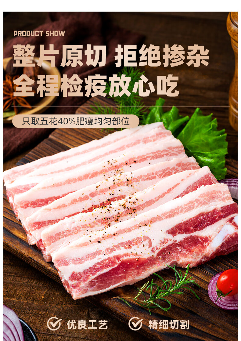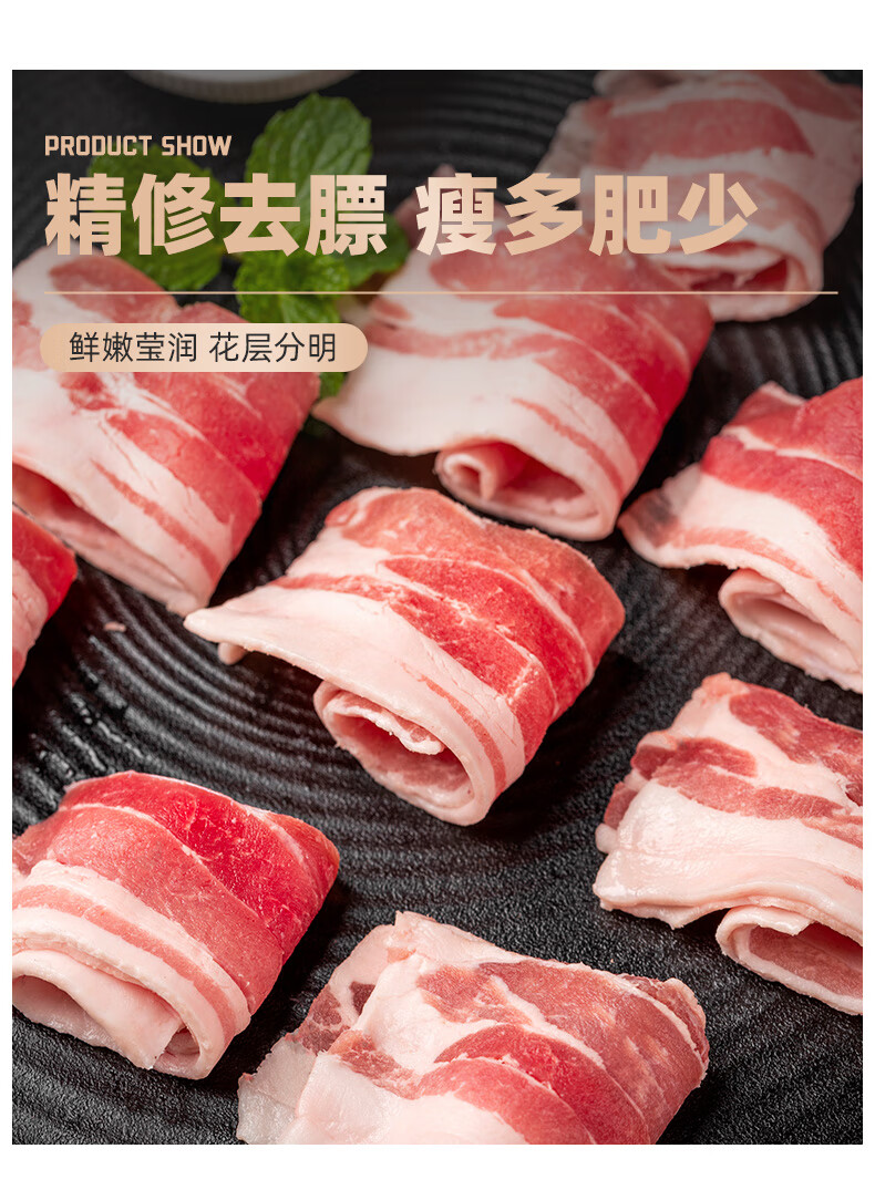 龙大肉食 黑猪去皮五花肉片净重250g*5 黑猪肉 生鲜五花肉烧烤肉 火锅食材