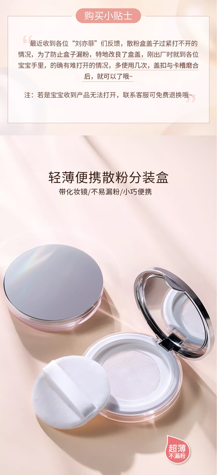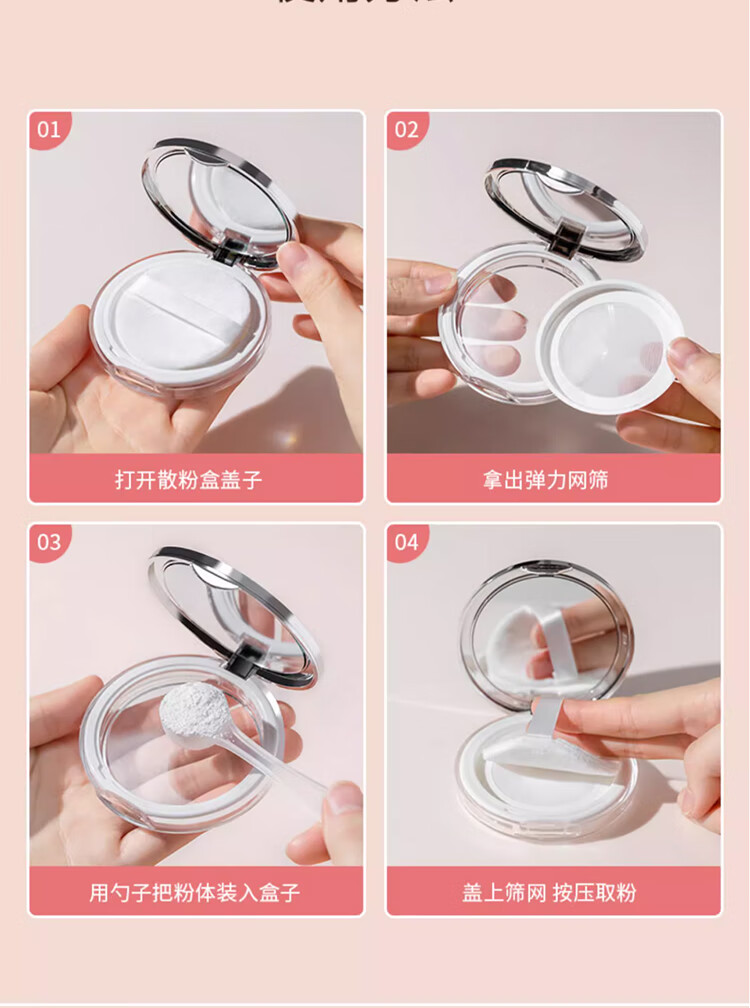 古迪黑胡椒超薄散粉分装盒小巧便携不漏大容量迷你小号空盒弹力网