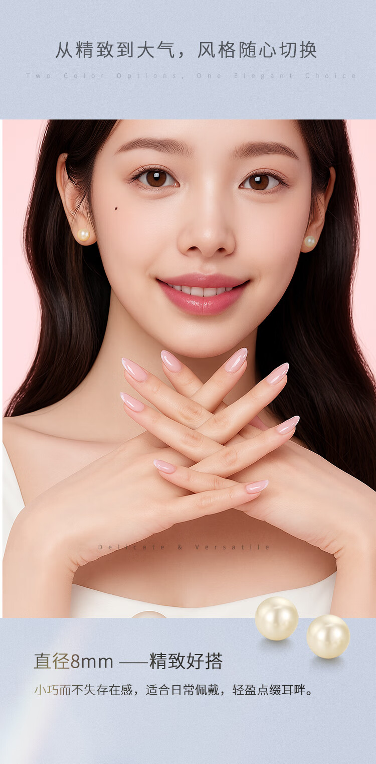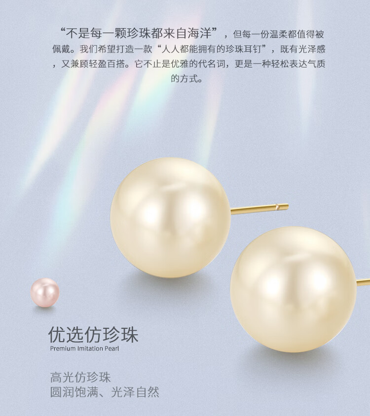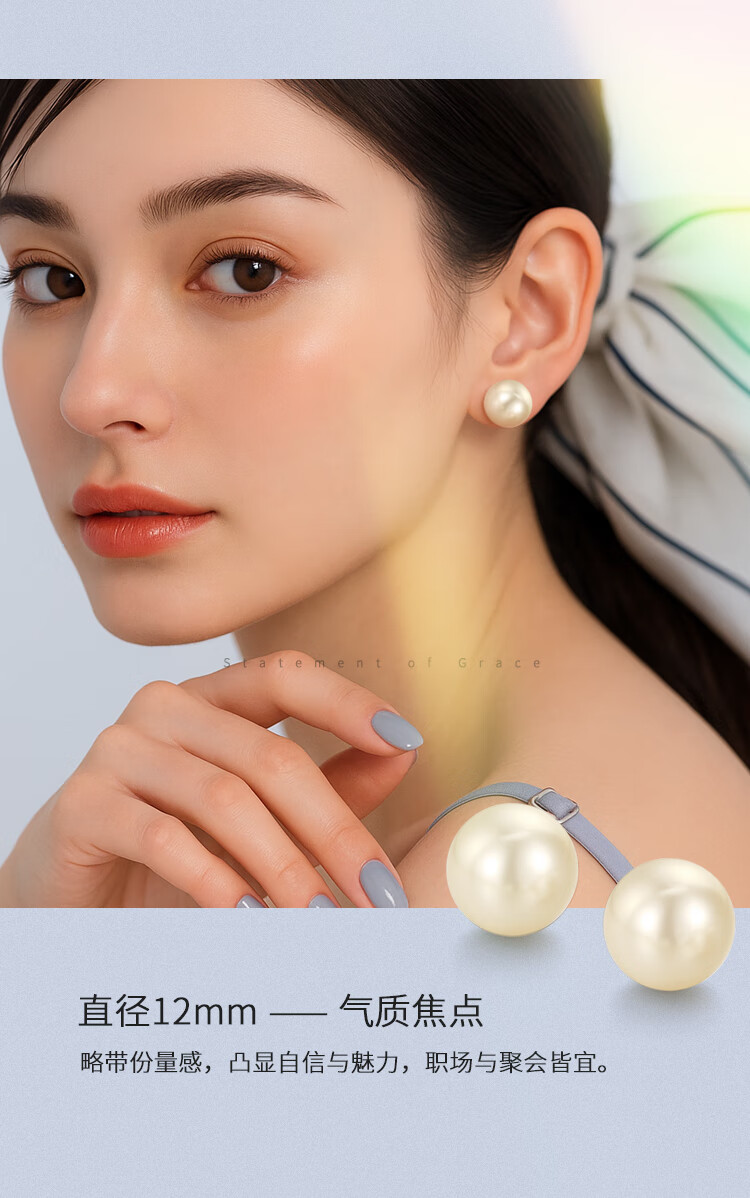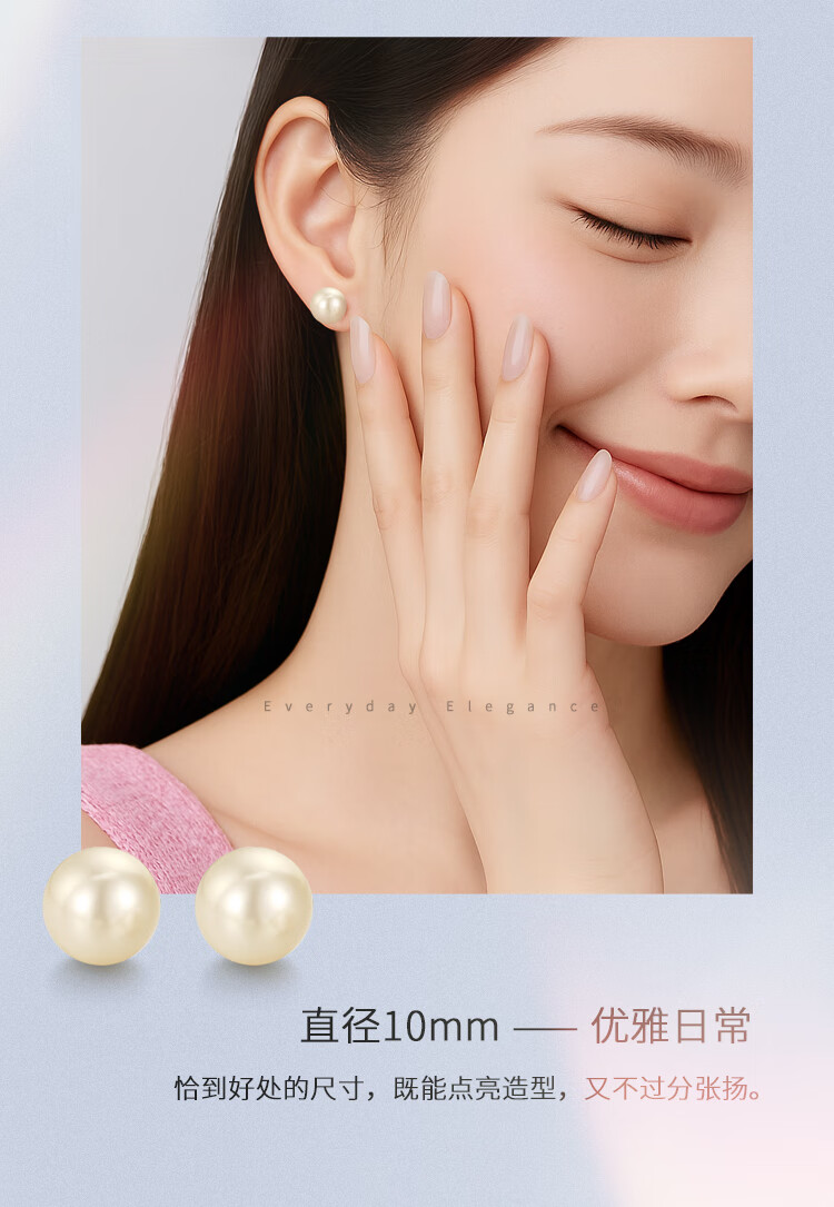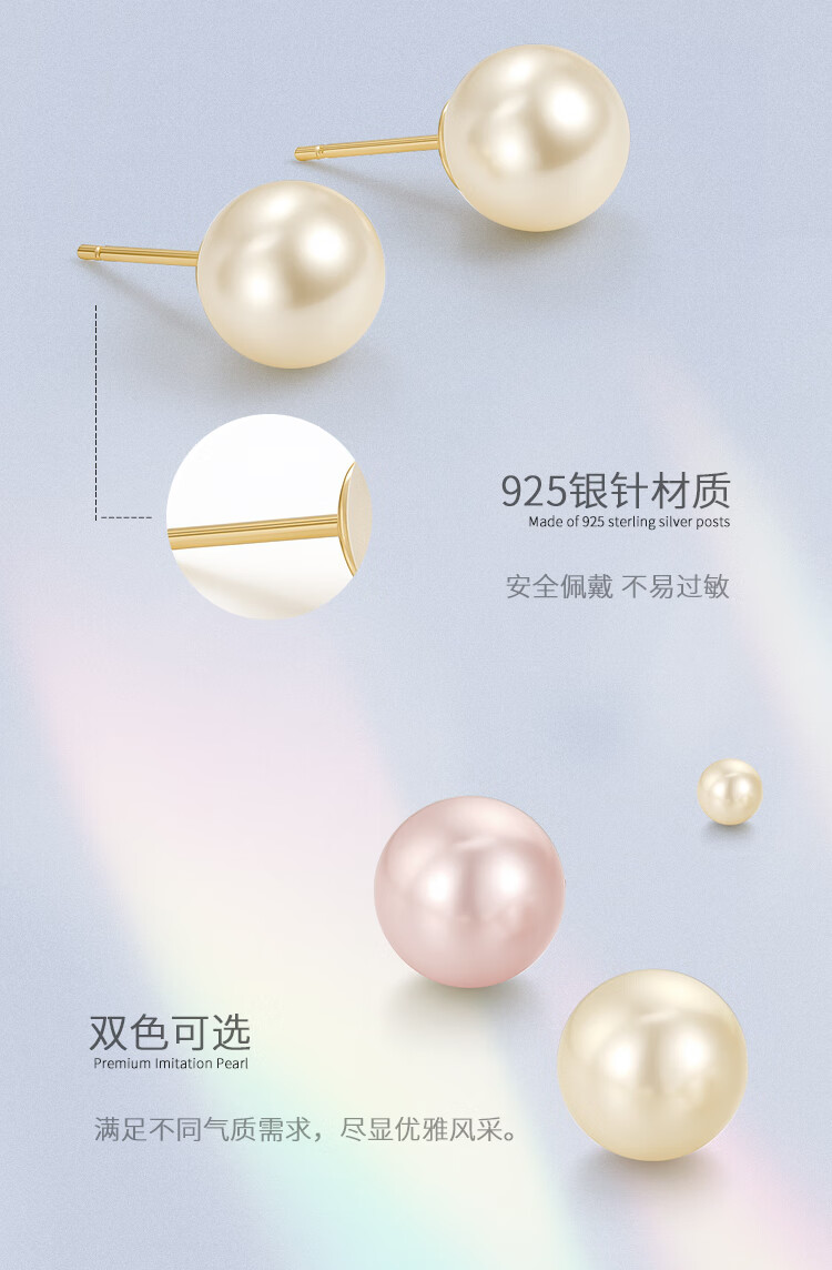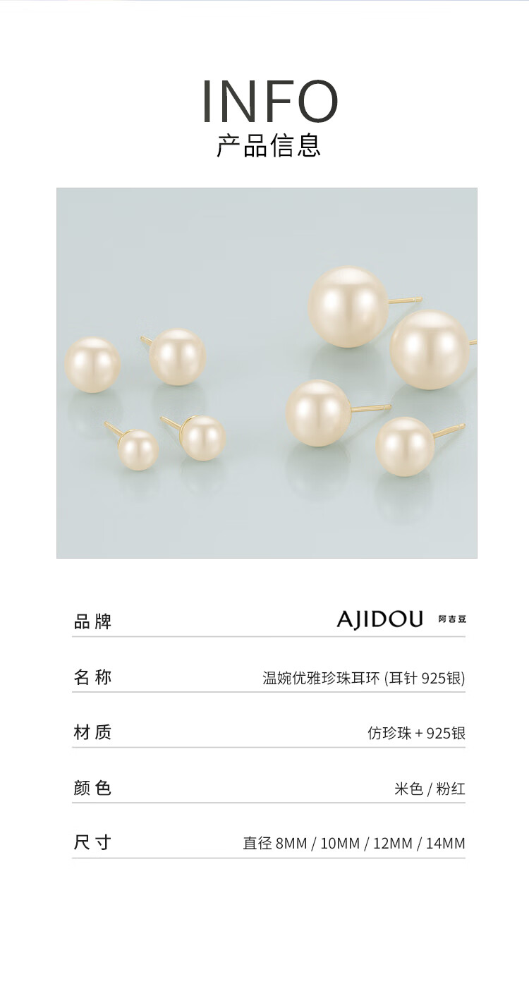 AJIDOU阿吉豆爆款仿珍珠耳钉925银针精致百搭正圆大珍珠新年米白12mm