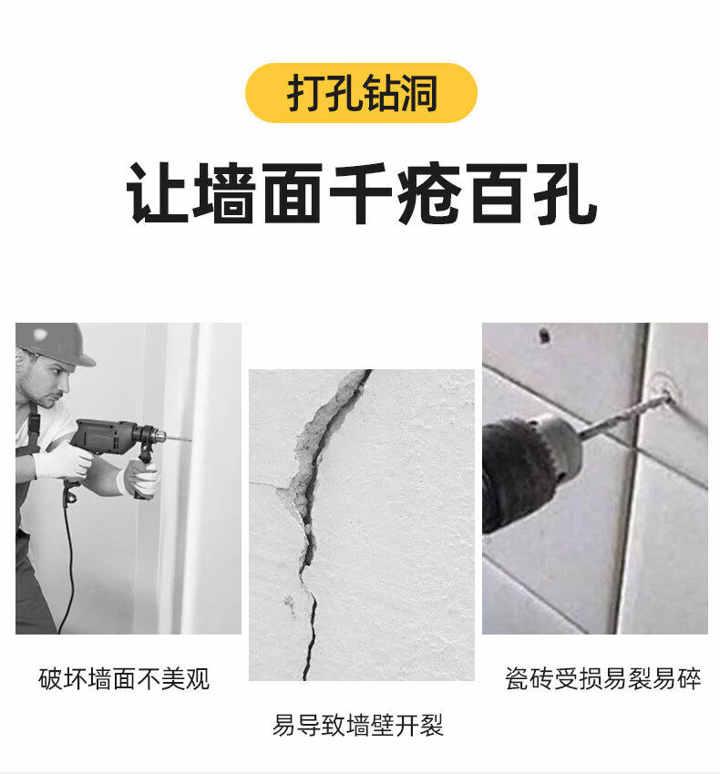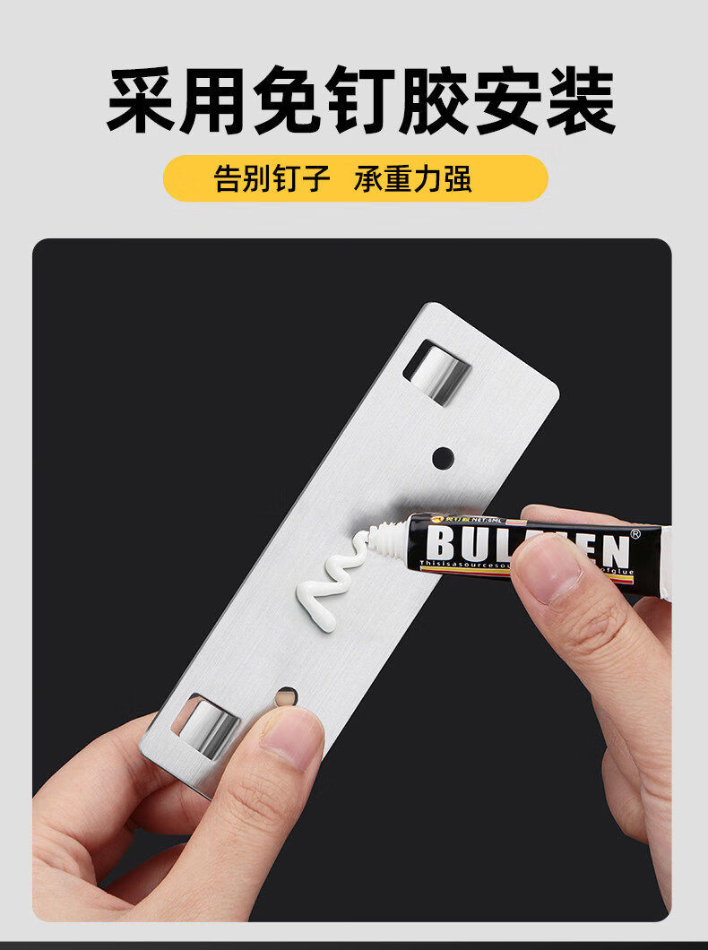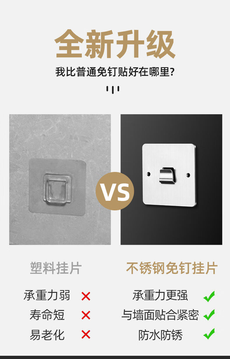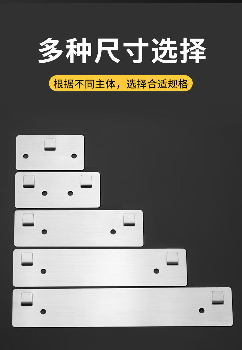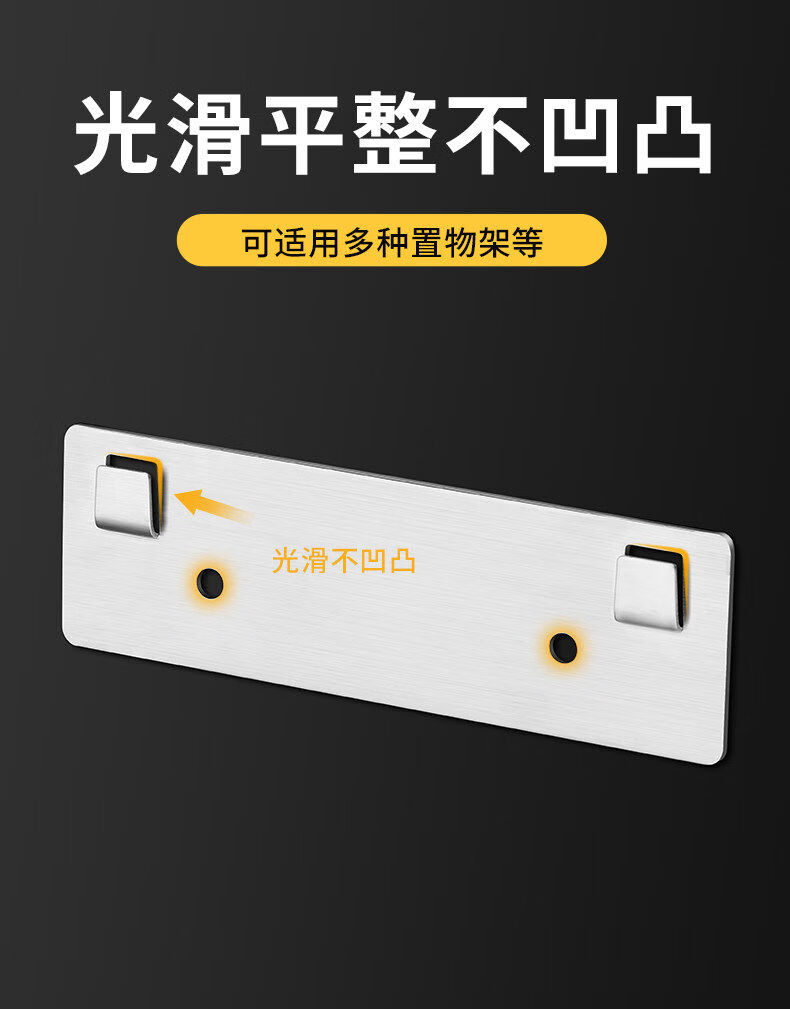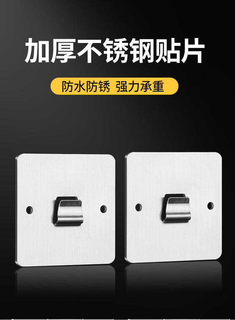 溥畔置物架粘贴片不锈钢强力贴厨房浴室免钉卡扣挂钩粘钩墙上 6点5*3点8单钩可卡1-m内扁板