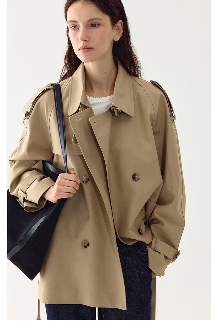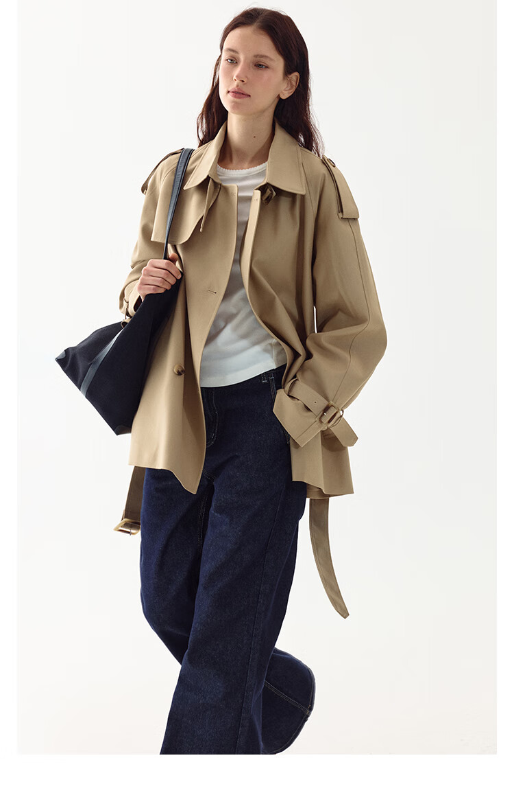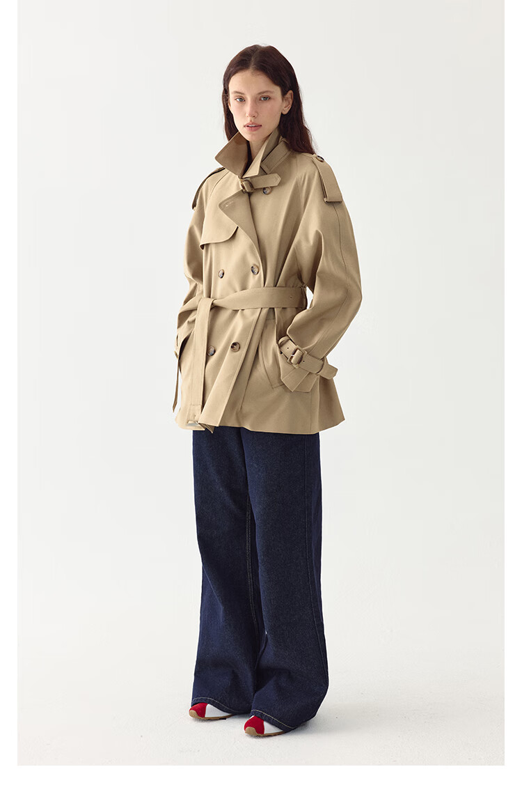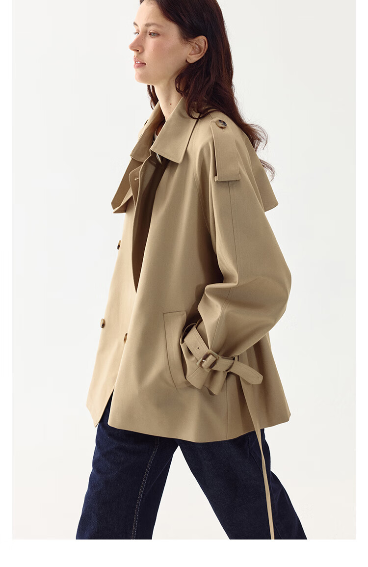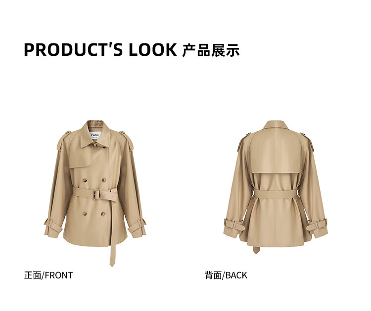 fano studios范洛Fano复古老钱风短活页肩章可拆卸经典短款风衣外套女 卡其色第二批 XS
