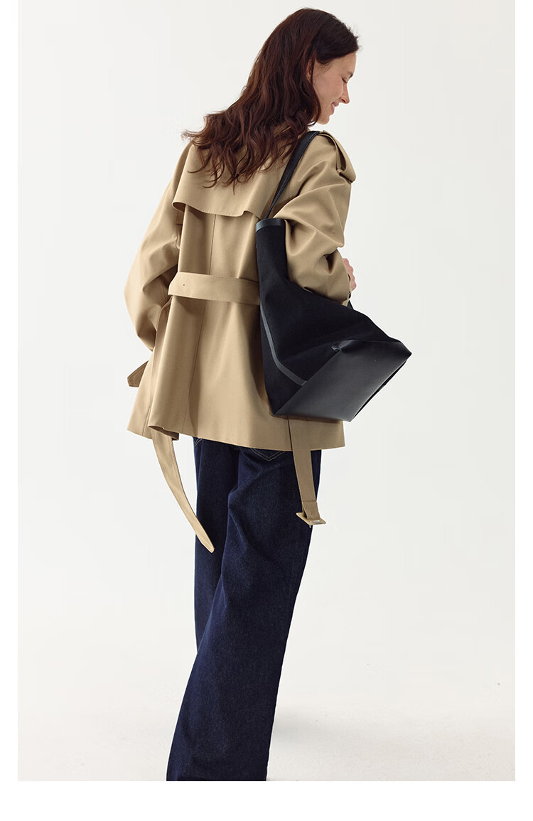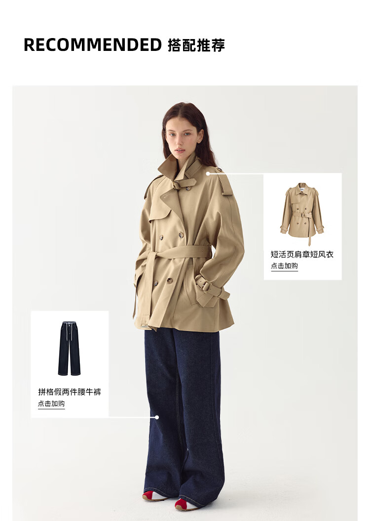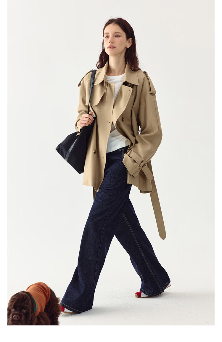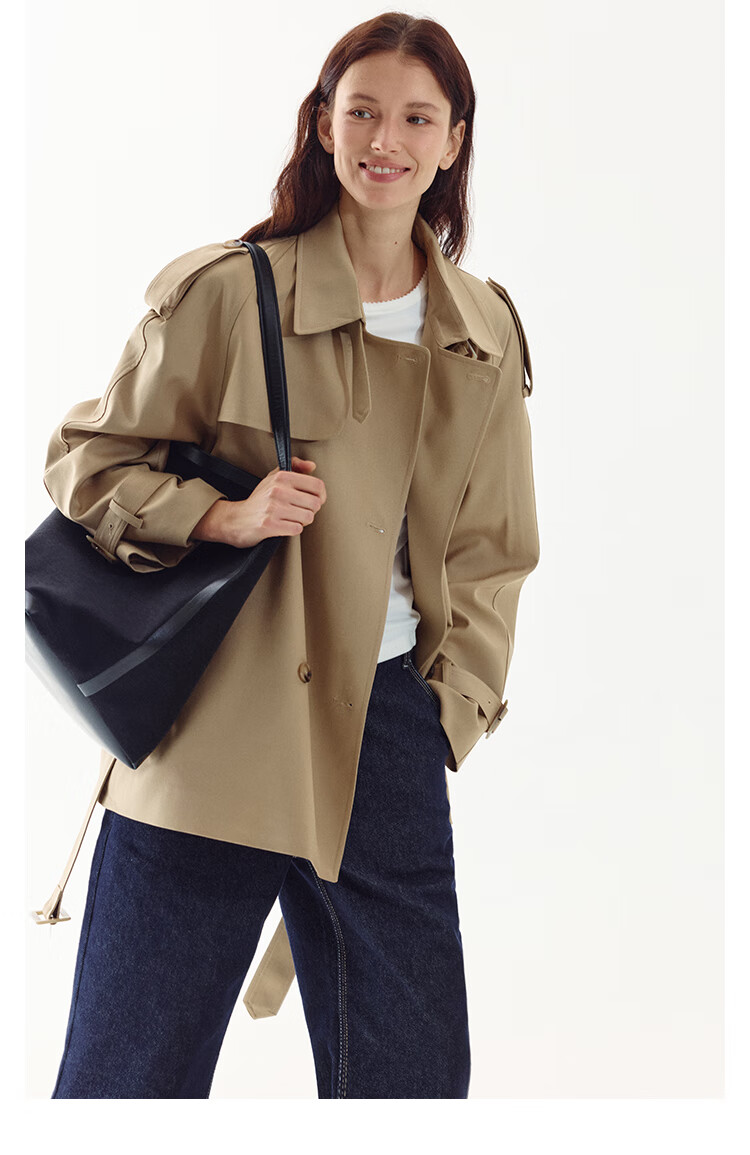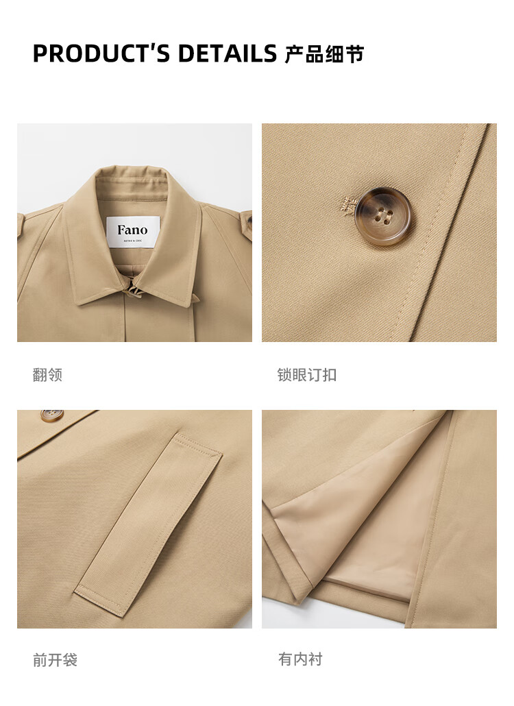 fano studios范洛Fano复古老钱风短活页肩章可拆卸经典短款风衣外套女 卡其色第二批 XS