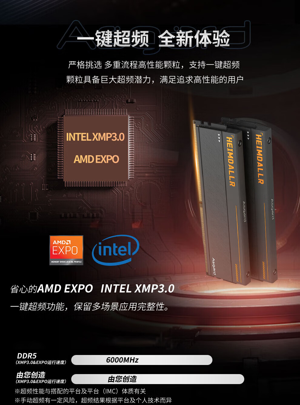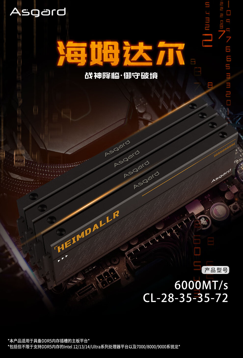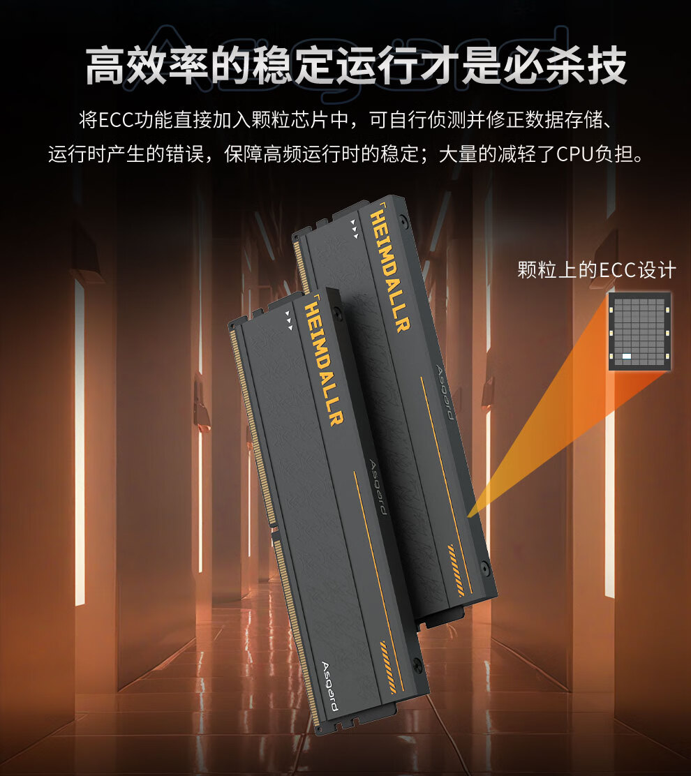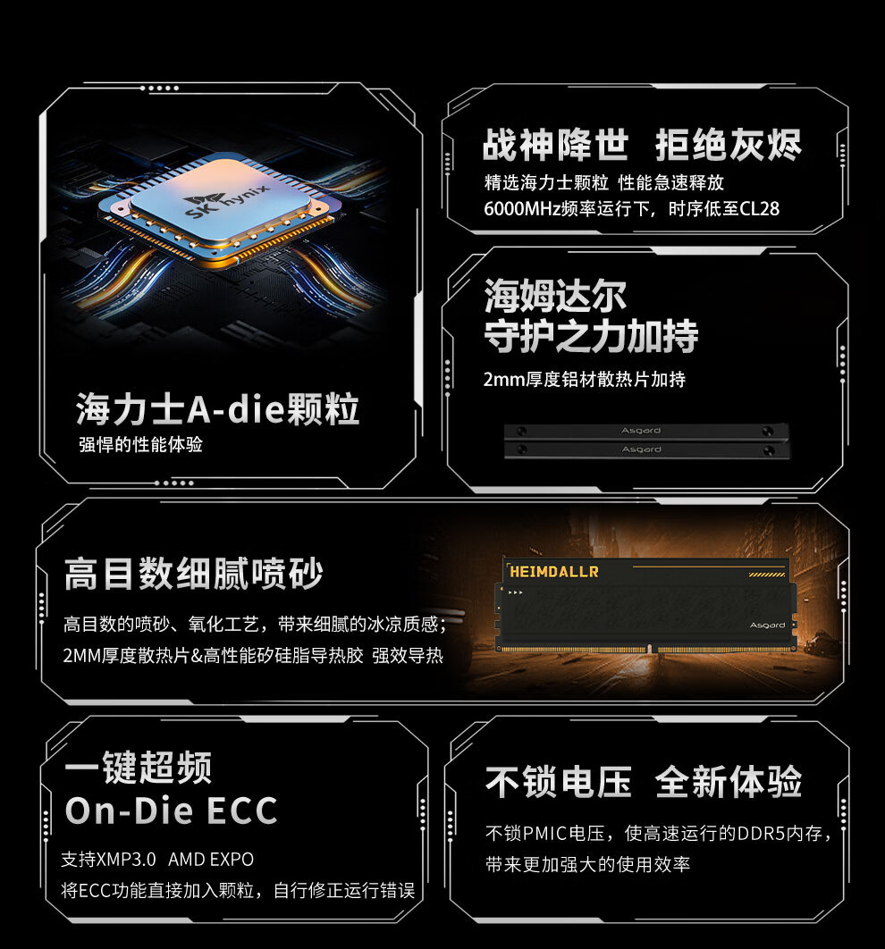 阿斯加特(Asgard)32GB(16GBx2) DDR5 6000 台式机内存条 海姆达尔 马甲条 海力士A-die CL28 黑厚甲