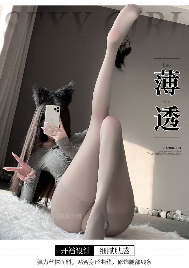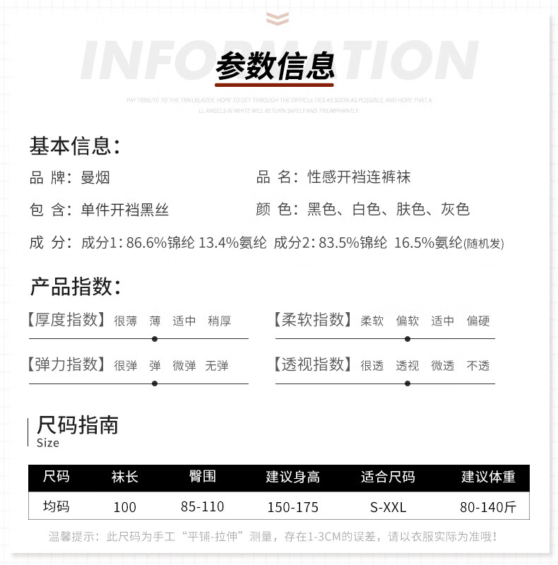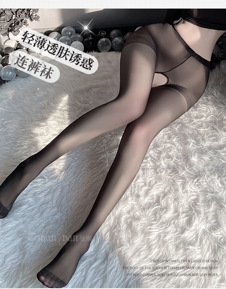 曼烟情趣内衣用品性感开阴裆丝袜夫妻刺激黑丝战袍连裤袜美腿袜黑7001