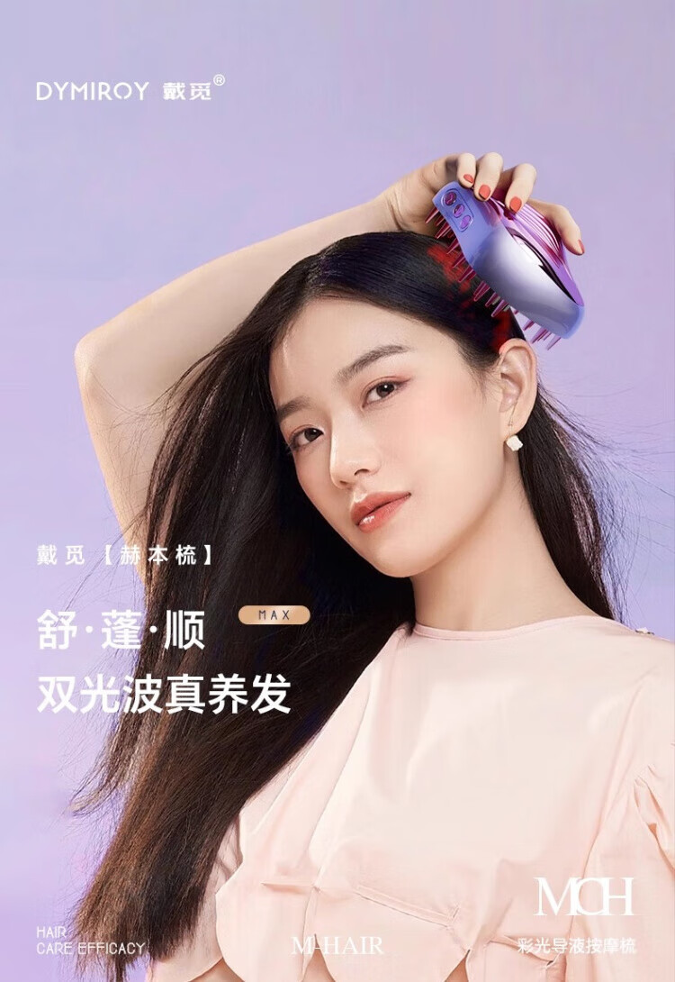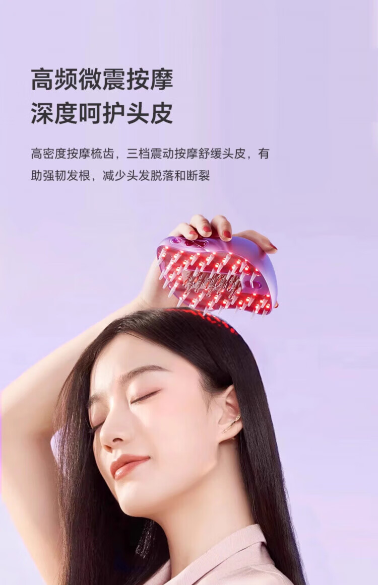 鸿志静选德国精油导入梳头皮上药器电动按摩梳子红光疗渗透米诺发液涂抹 紫色全配款【红蓝光疗+头皮上药】