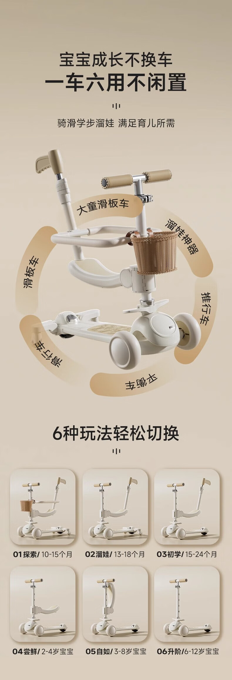 贝初众儿童玩具1-3岁男女孩一岁三岁宝宝周岁生日礼物2-6男童早教·益智 奶油白【精美礼盒+车筐书包】 两三婴儿学步车婴儿用品0-6个月圣诞节礼物