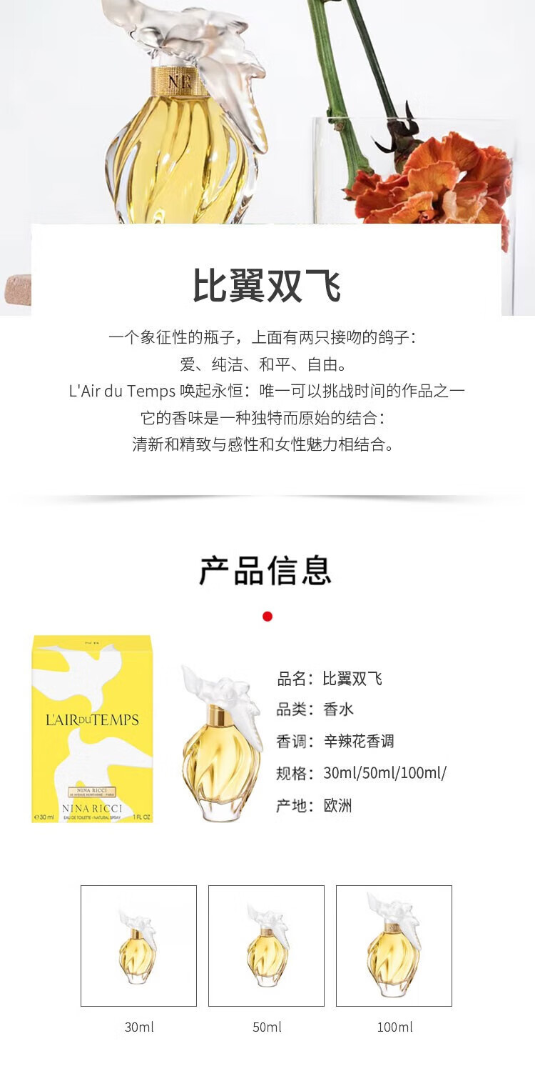 NINA RICCI莲娜丽姿 比翼双飞女士香水 EDT淡香水(辛辣花香调) 30ml