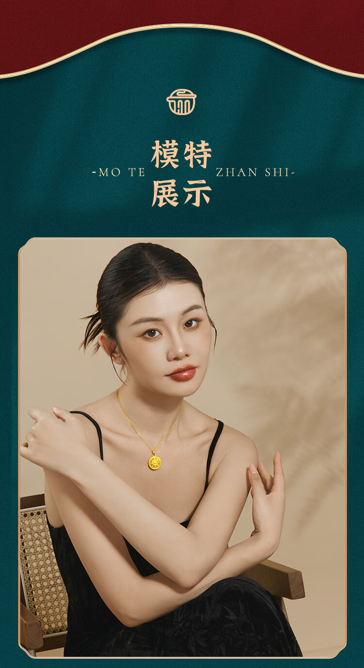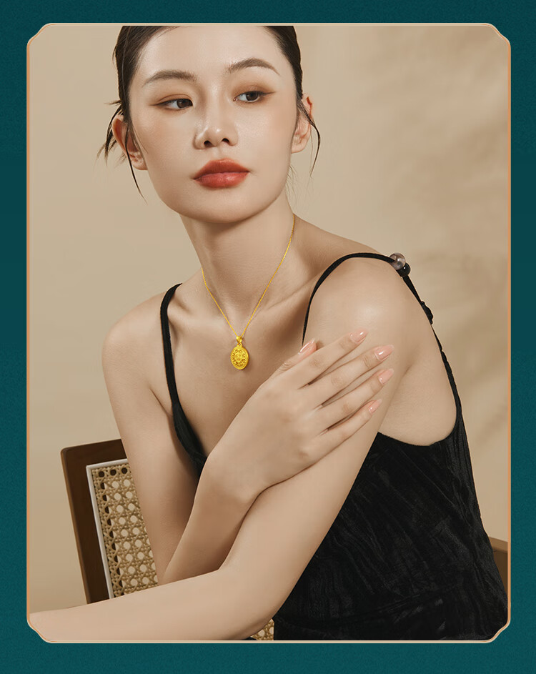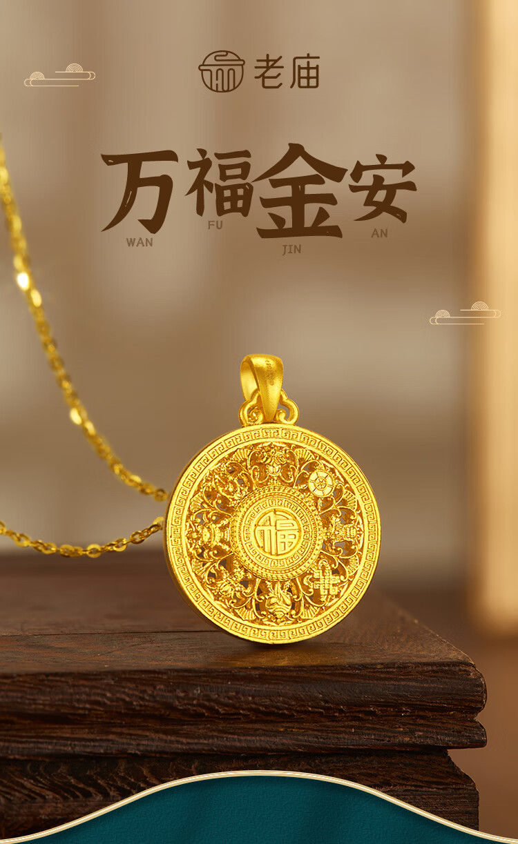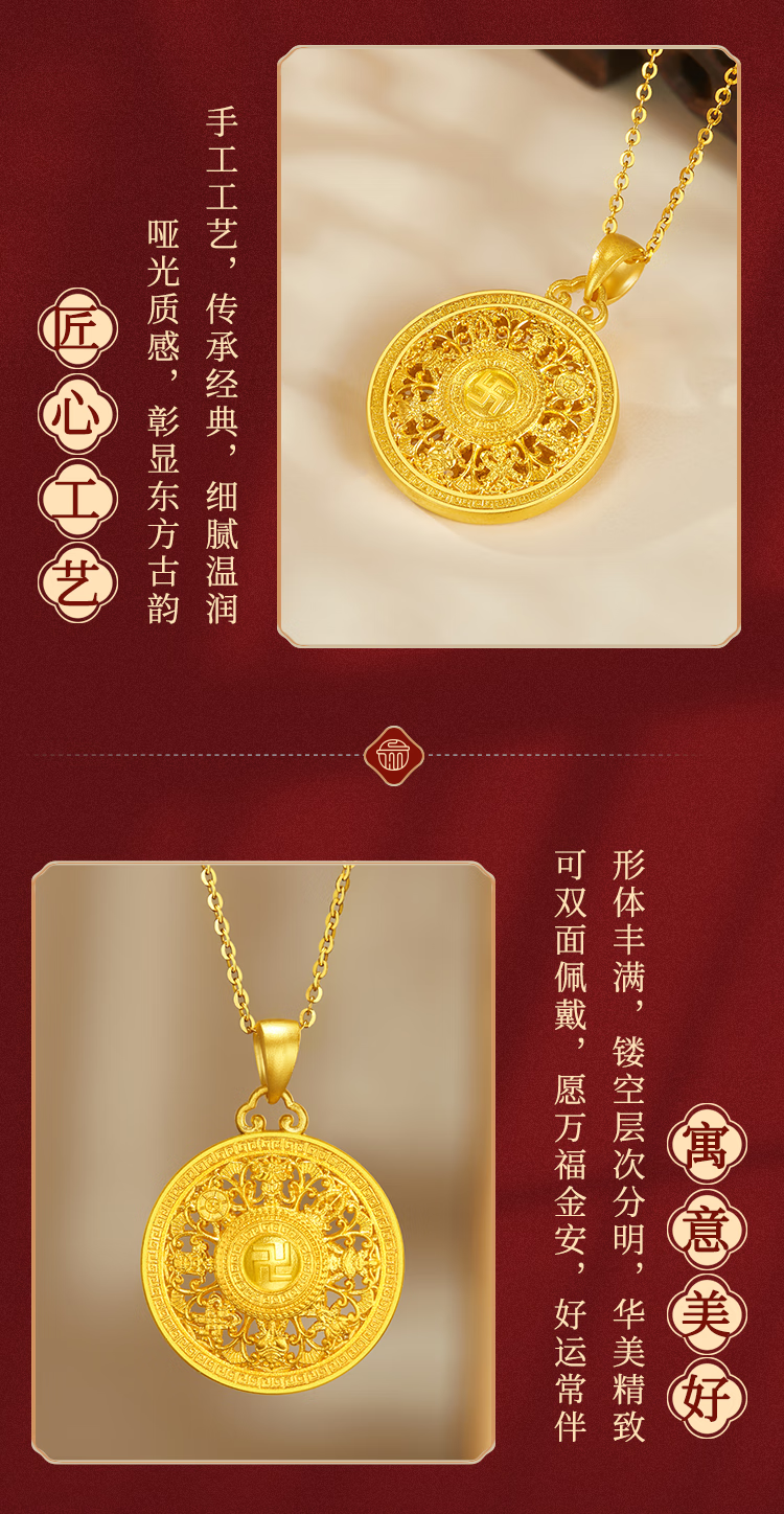 老庙黄金吊坠八宝罗盘古法金项链福字挂坠送长辈男女款情侣款节日礼物 约1g(圆扣头)