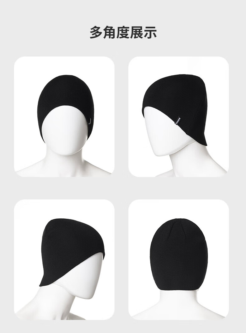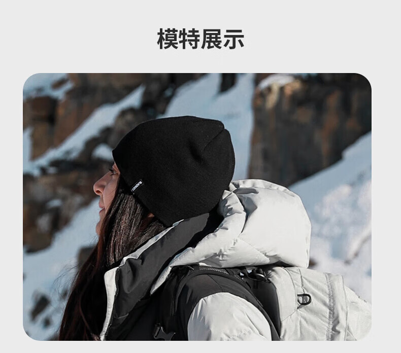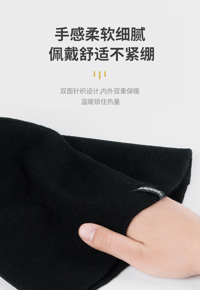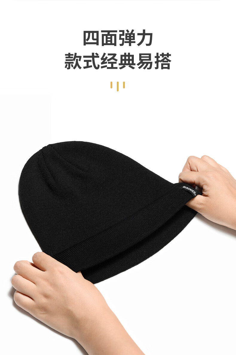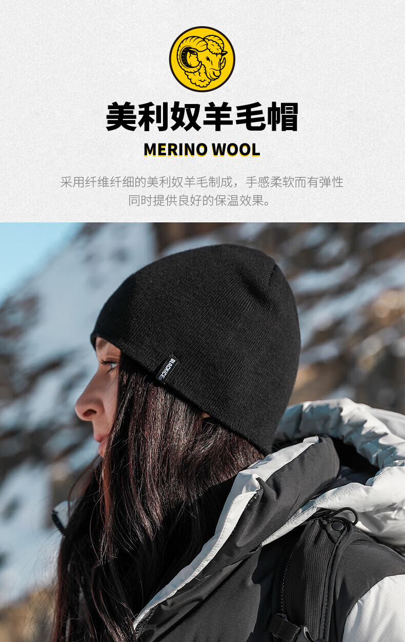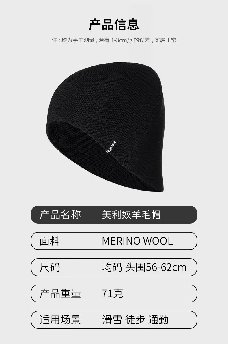 黑冰美利奴羊毛帽子冬季户外运动轻量保暖针织帽 Z2145 黑色
