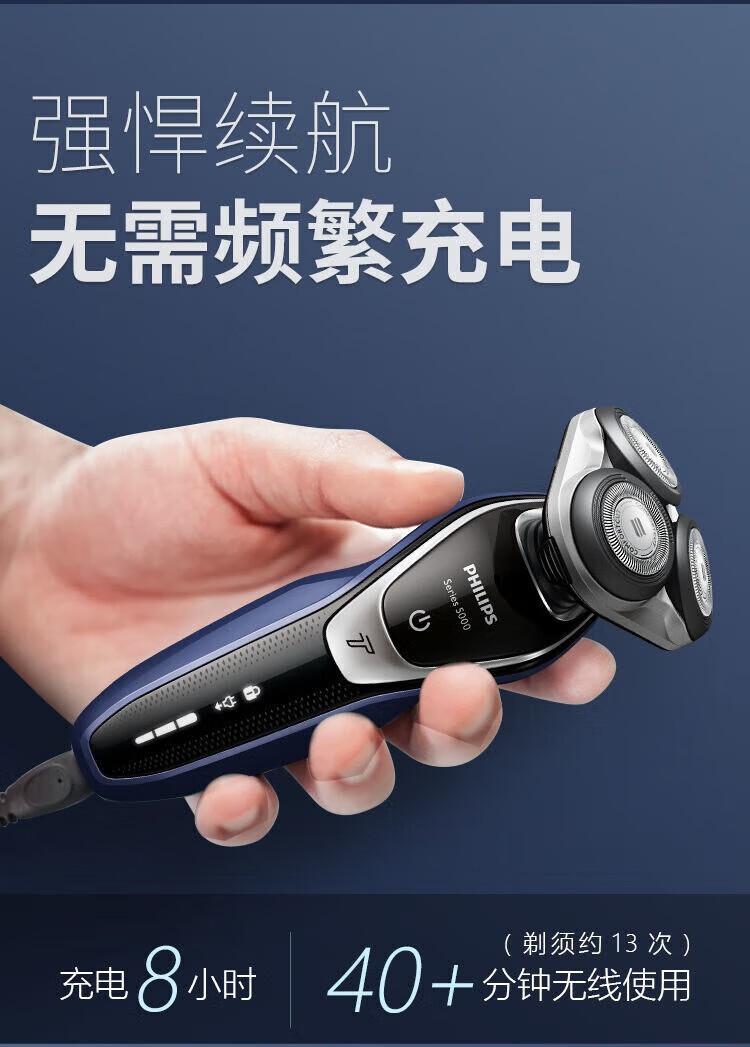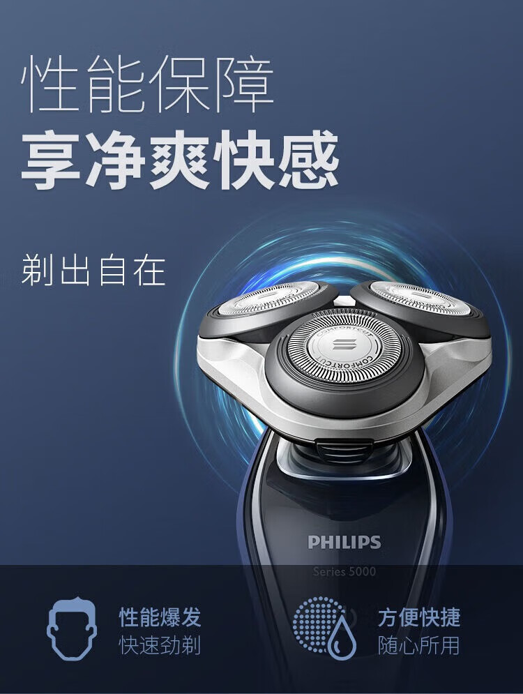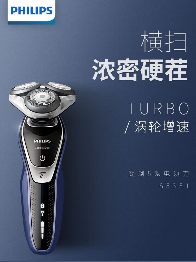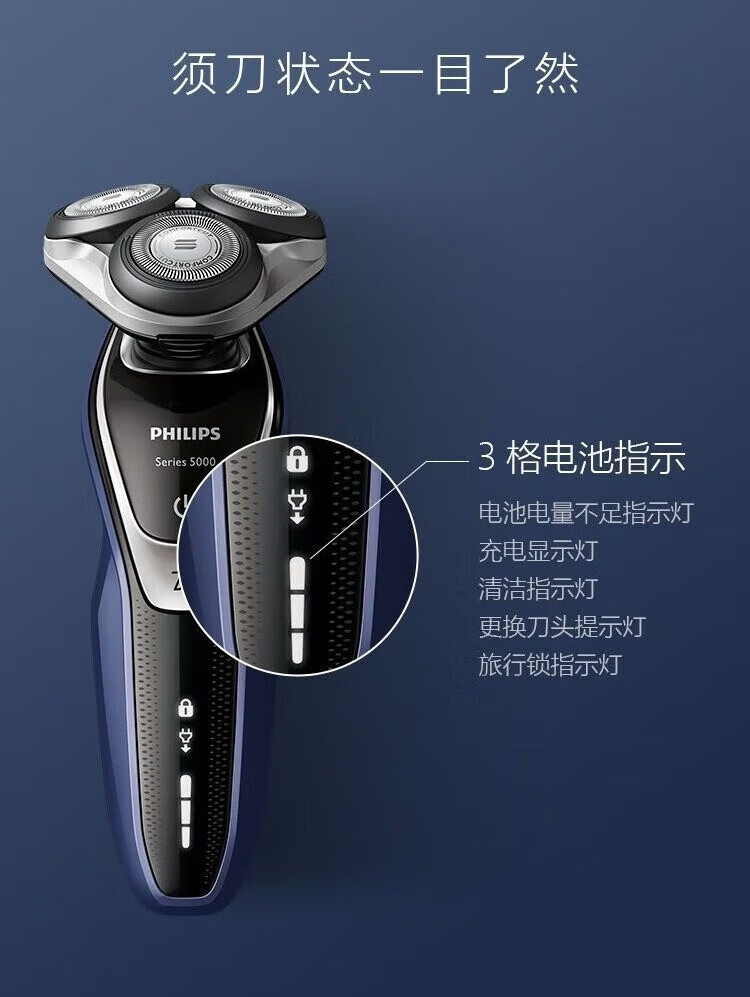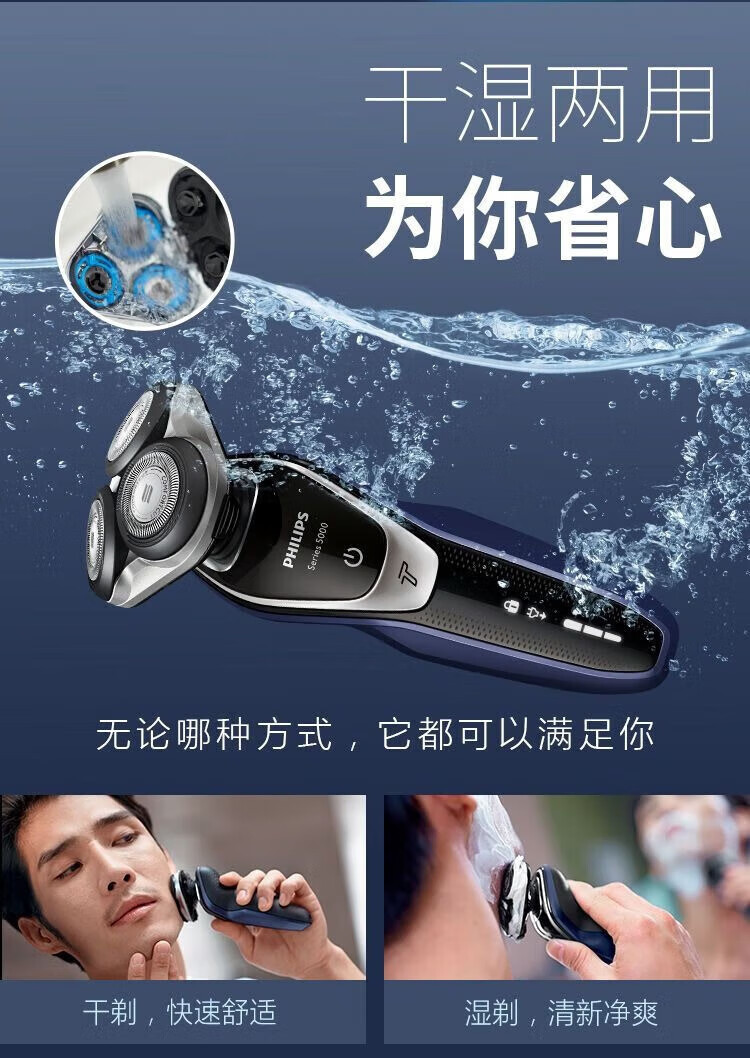飞利浦(PHILIPS)剃须刀S5000系列S5351/S5355/S5050/S5076/S5060三刀头原装正品送男友父亲圣诞元旦平安夜礼物 S5355原装进口标配