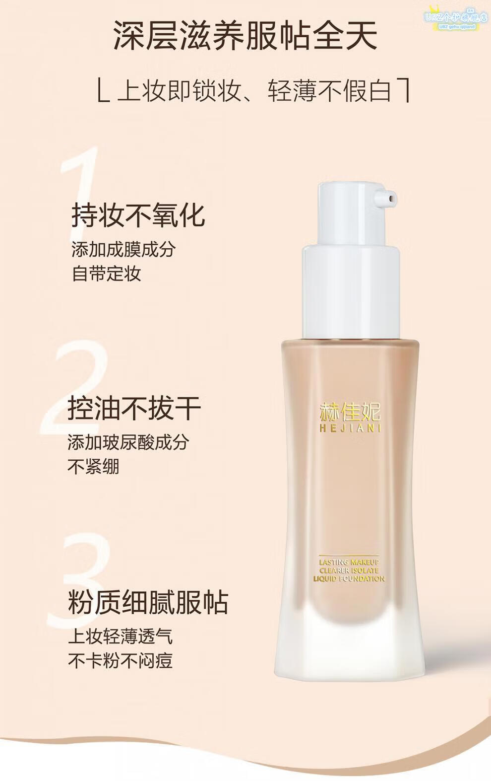 KIDC【官方】粉底液全天持妆赫佳妮美肤隔离粉底液遮瑕控油防水不油腻 象牙白 1盒ml