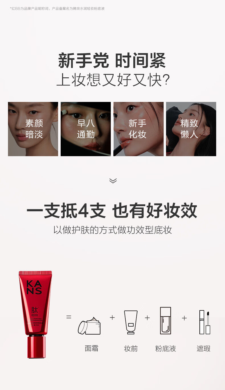 韩束(KanS)红bb霜遮瑕隔离霜保湿提亮肤色粉底液持久服帖不油腻刘浩存同款 【刘浩存同款】大红bb霜自然白80g