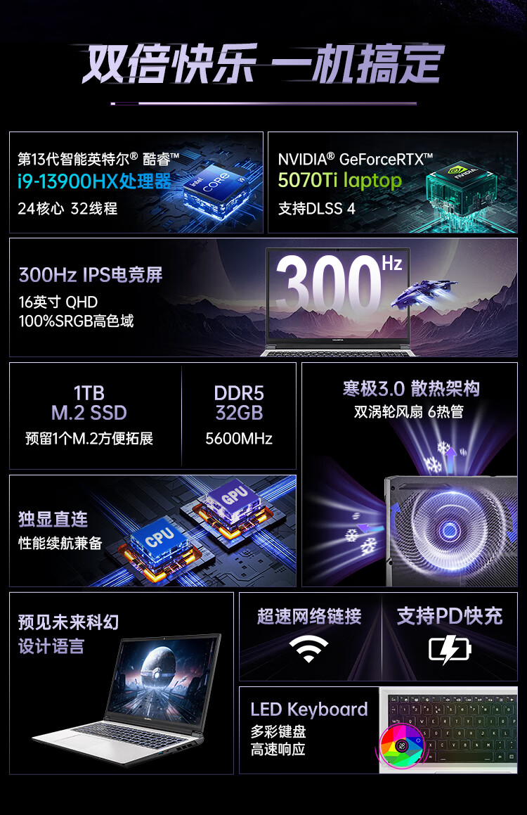 七彩虹(Colorful)隐星P16 Pro 13代酷睿i9 16英寸游戏笔记本电脑(i9-13900HX 32G 1TB RTX5070Ti 300Hz) 焕新版
