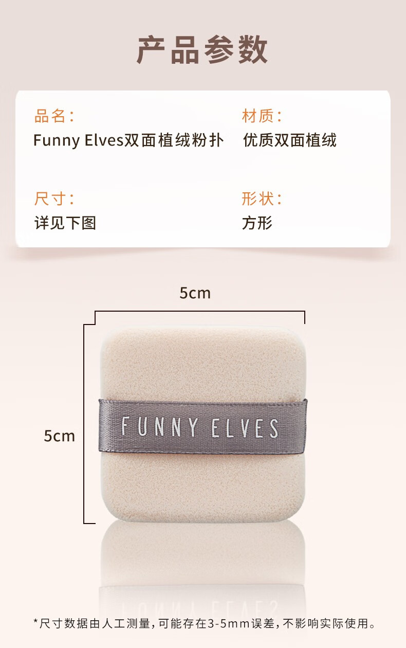 方里(FUNNY ELVES) 双面植绒定妆粉扑粉饼替换散粉蜜粉扑脸部化妆工具便携亲肤 双面植绒粉扑 1个