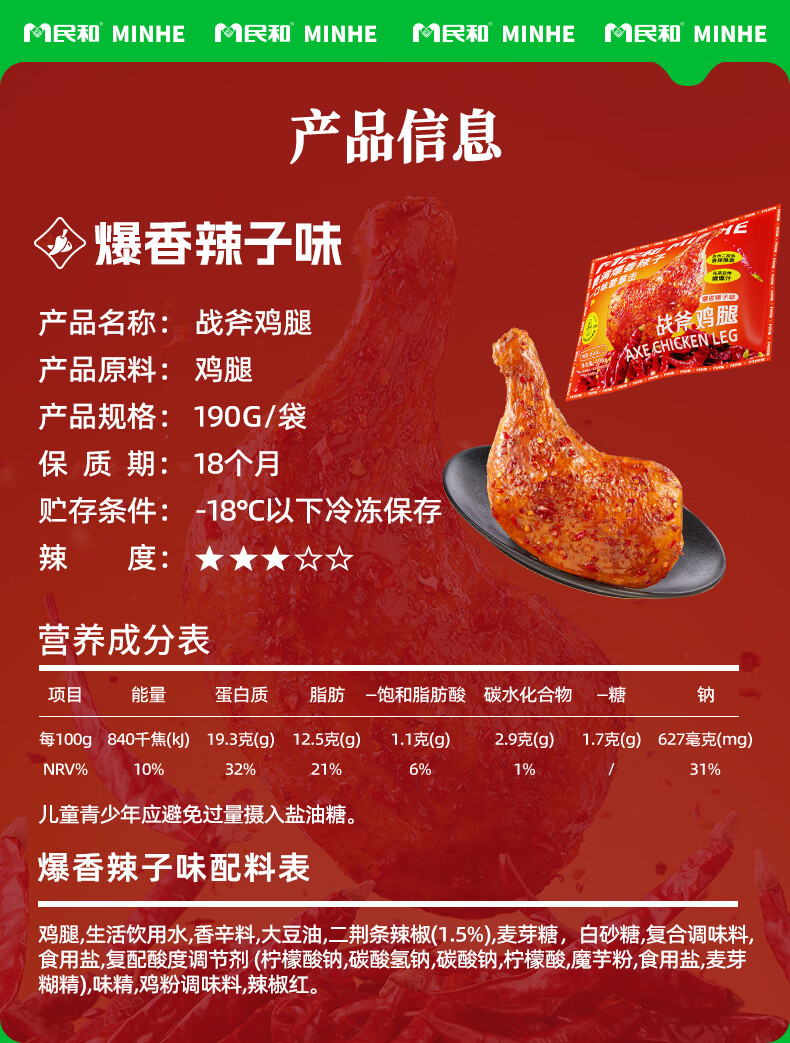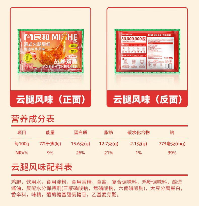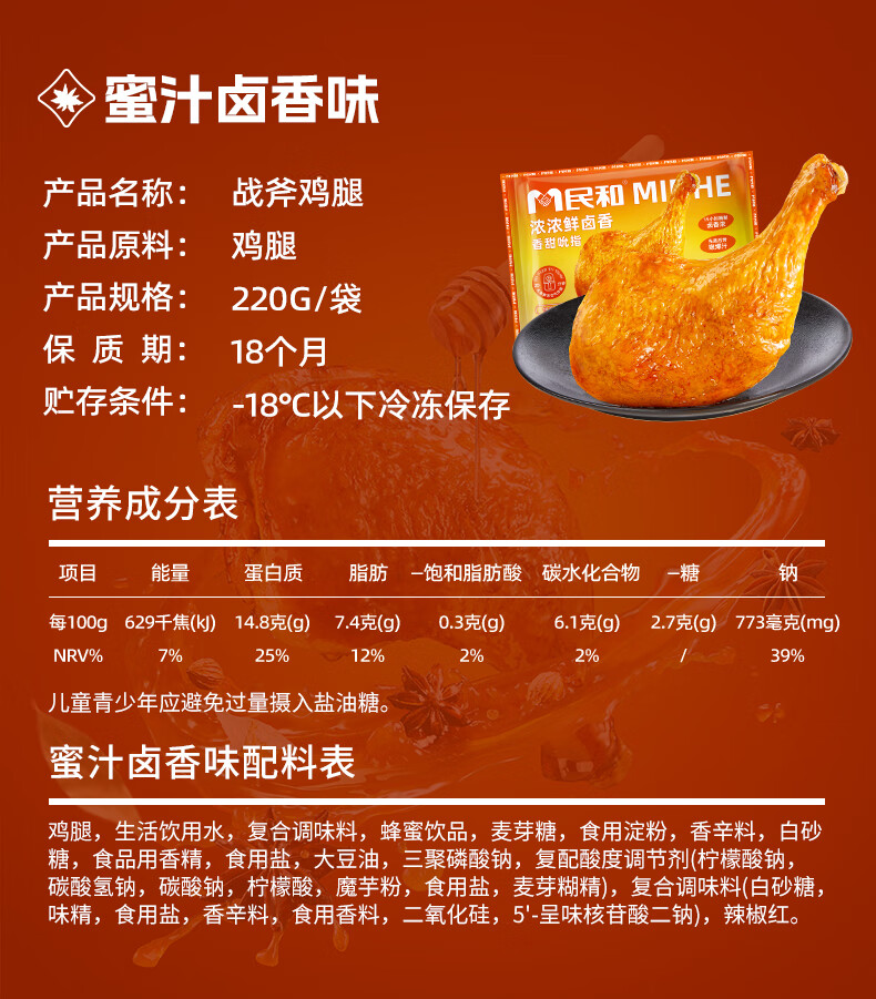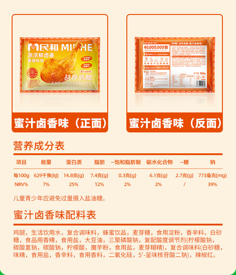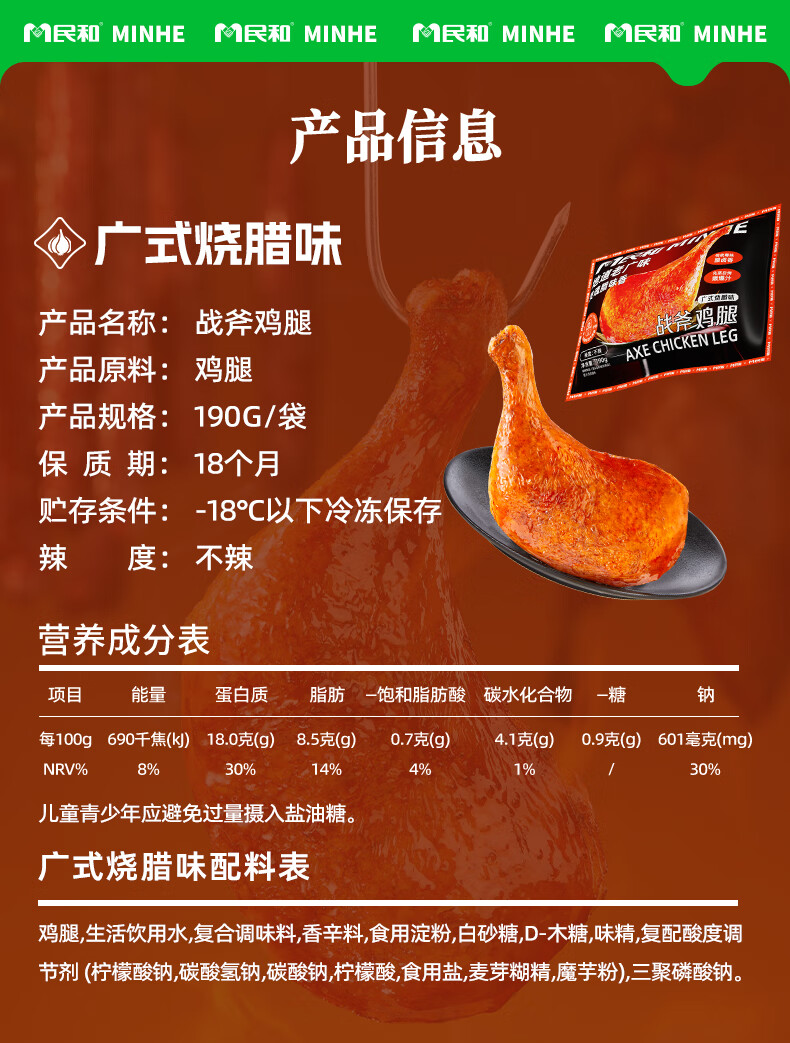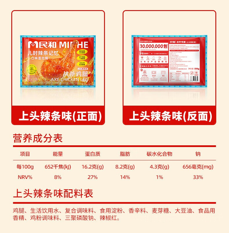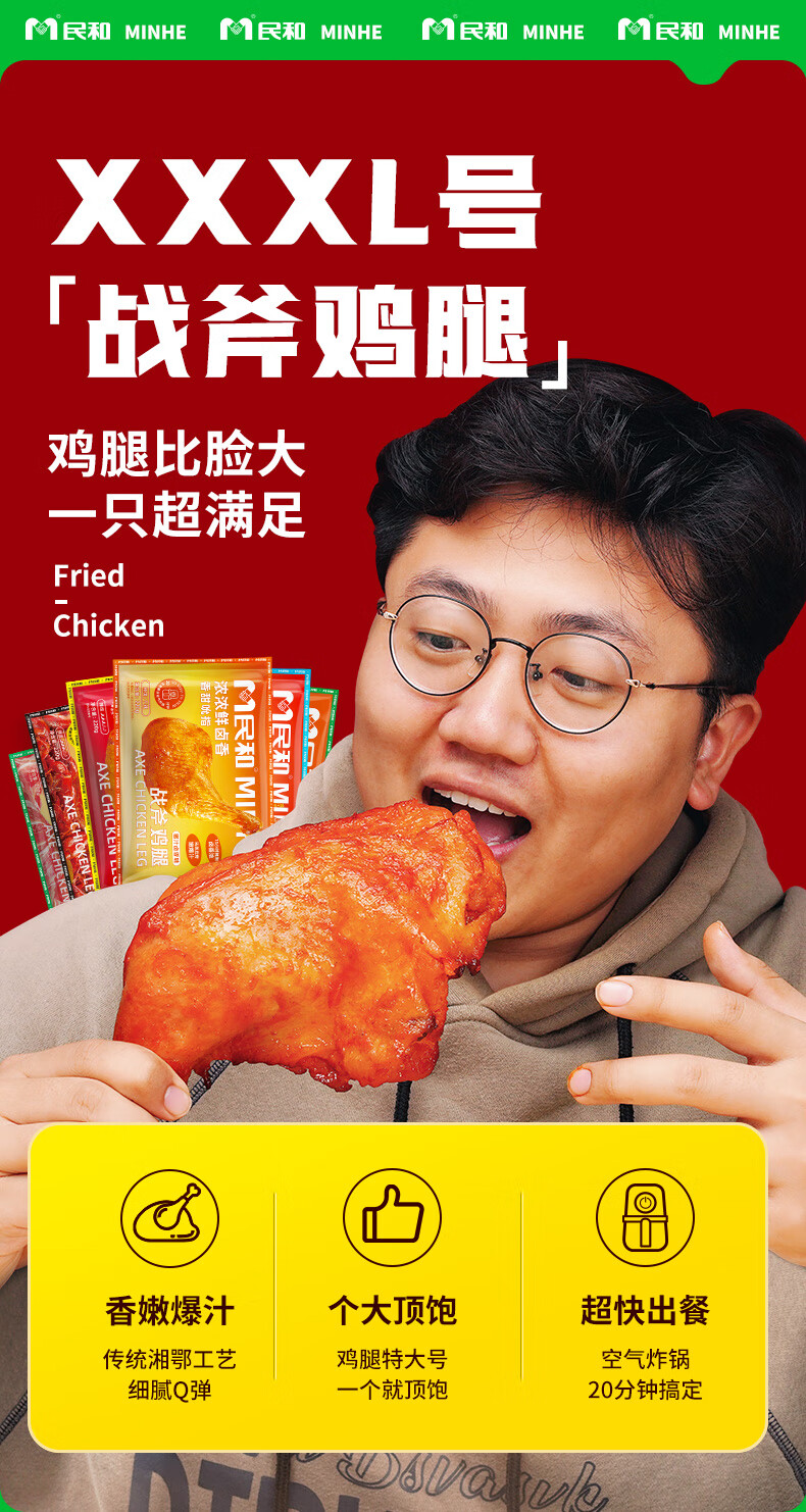 民和【199活动专区】战斧鸡腿奥尔良大鸡腿 炸鸡空气炸锅食材半成品 战斧鸡腿220g(奥尔良味)