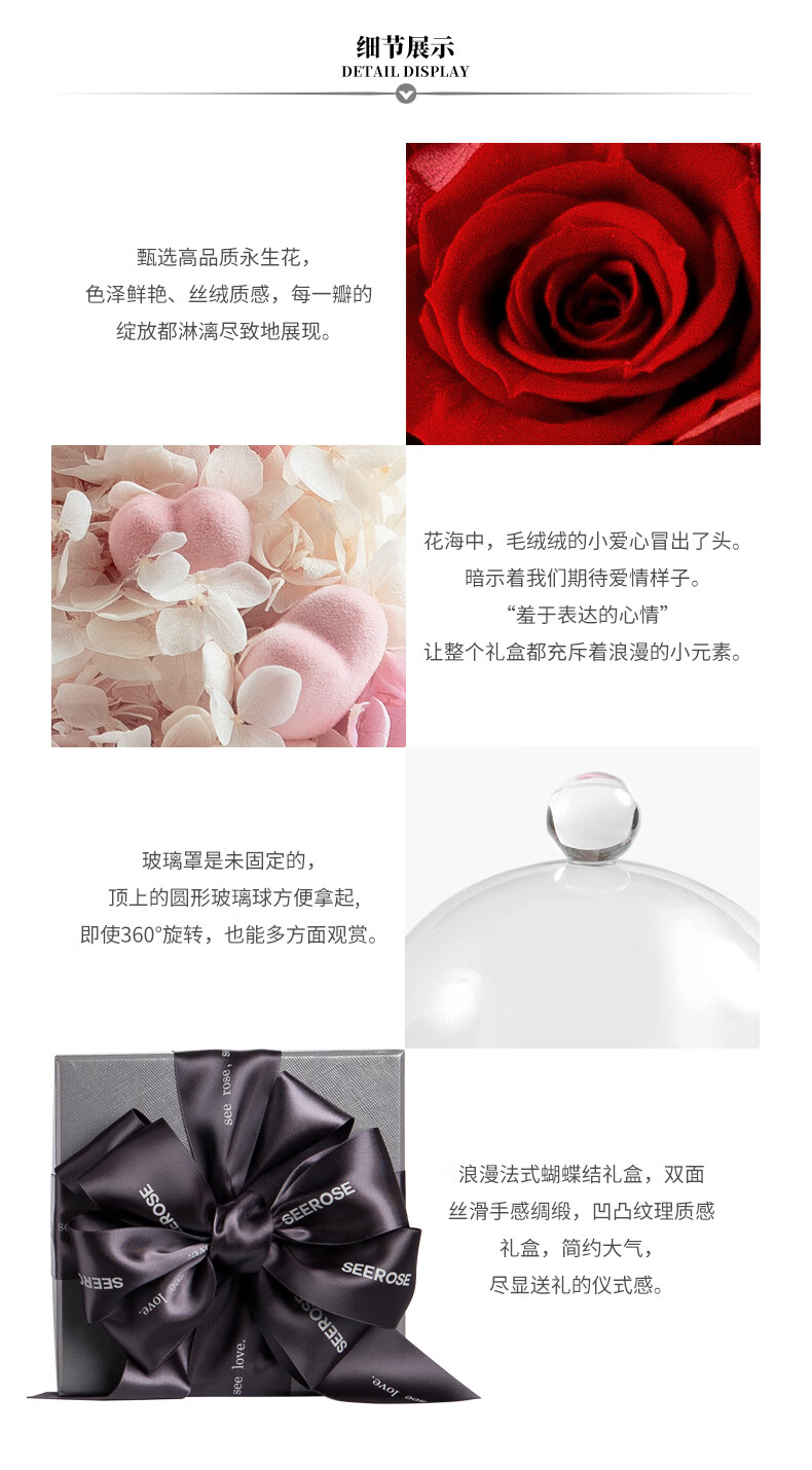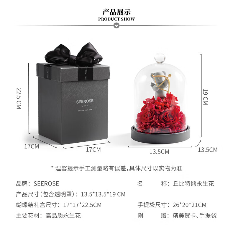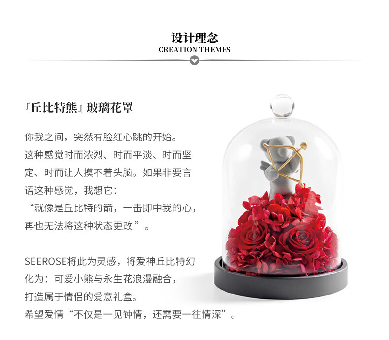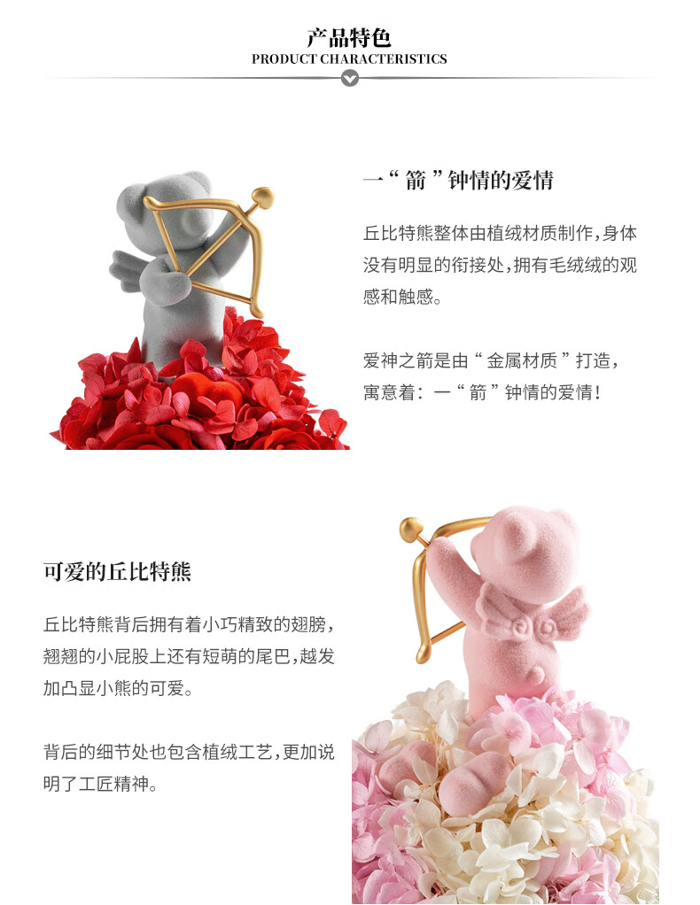 西罗斯(SEEROSE)永生花丘比特熊保鲜玫瑰花束高级春节情人节生日礼物送女朋友老婆 丘比特熊-粉色 全国7仓发-不支持代写贺卡