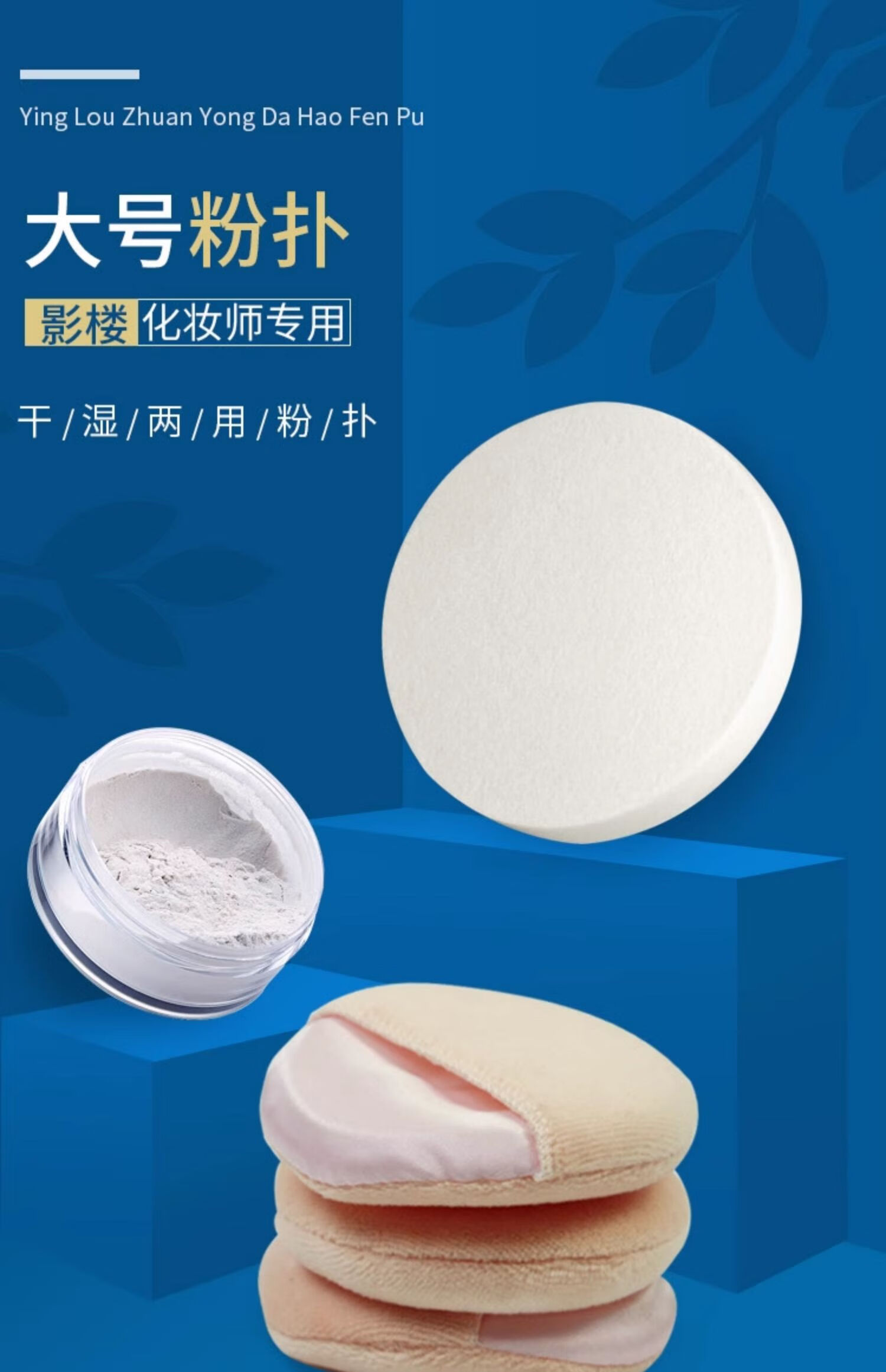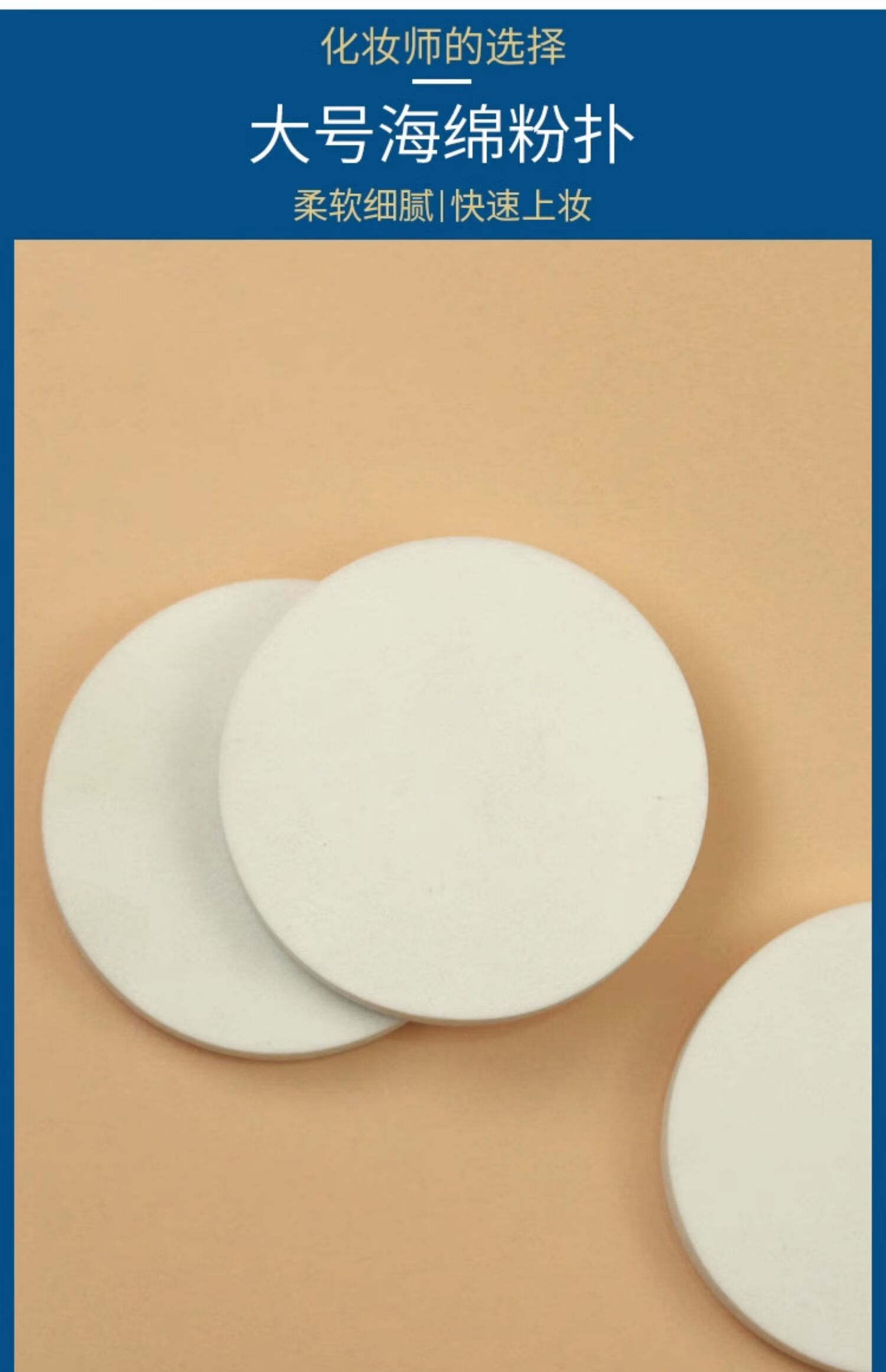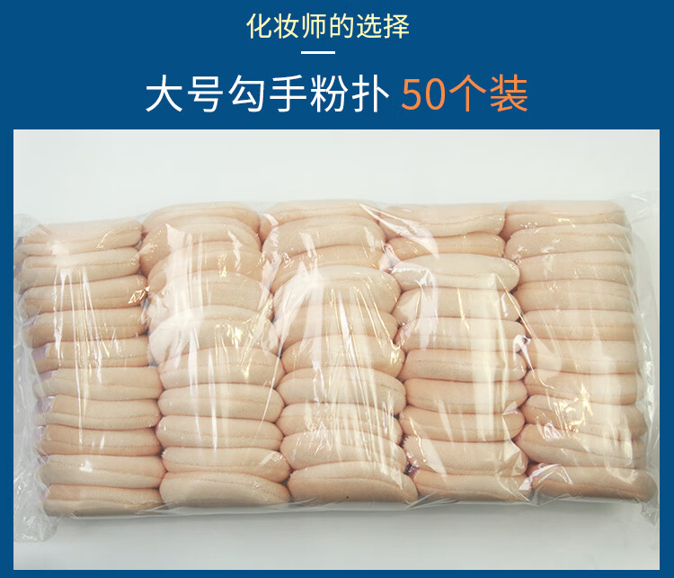 大号干湿粉扑影楼化妆师专用海绵粉底圆形勾手套定妆干散粉扑整包 大包装湿粉扑 白色 50个 一大包