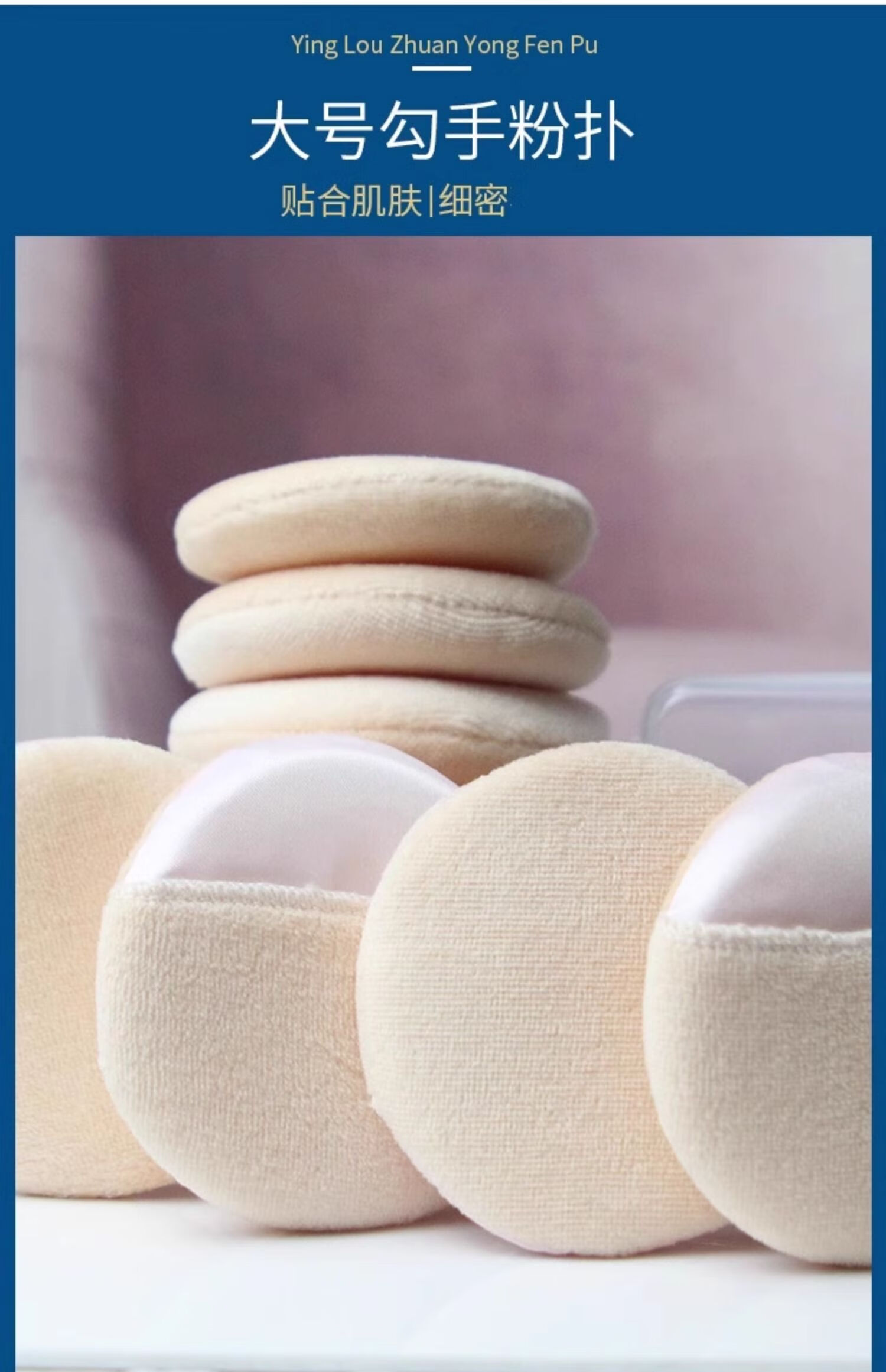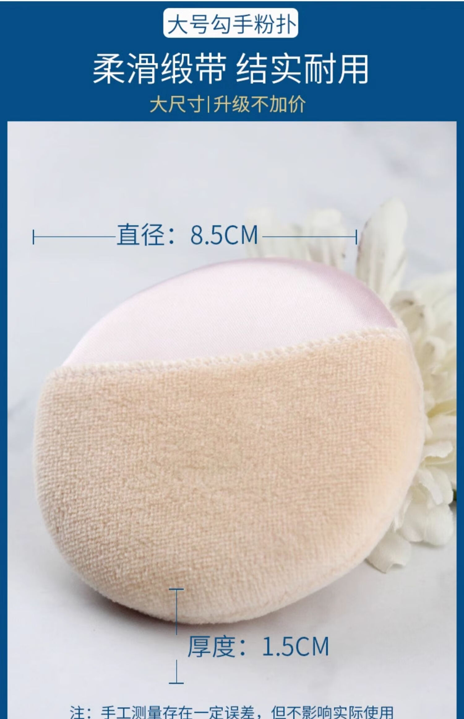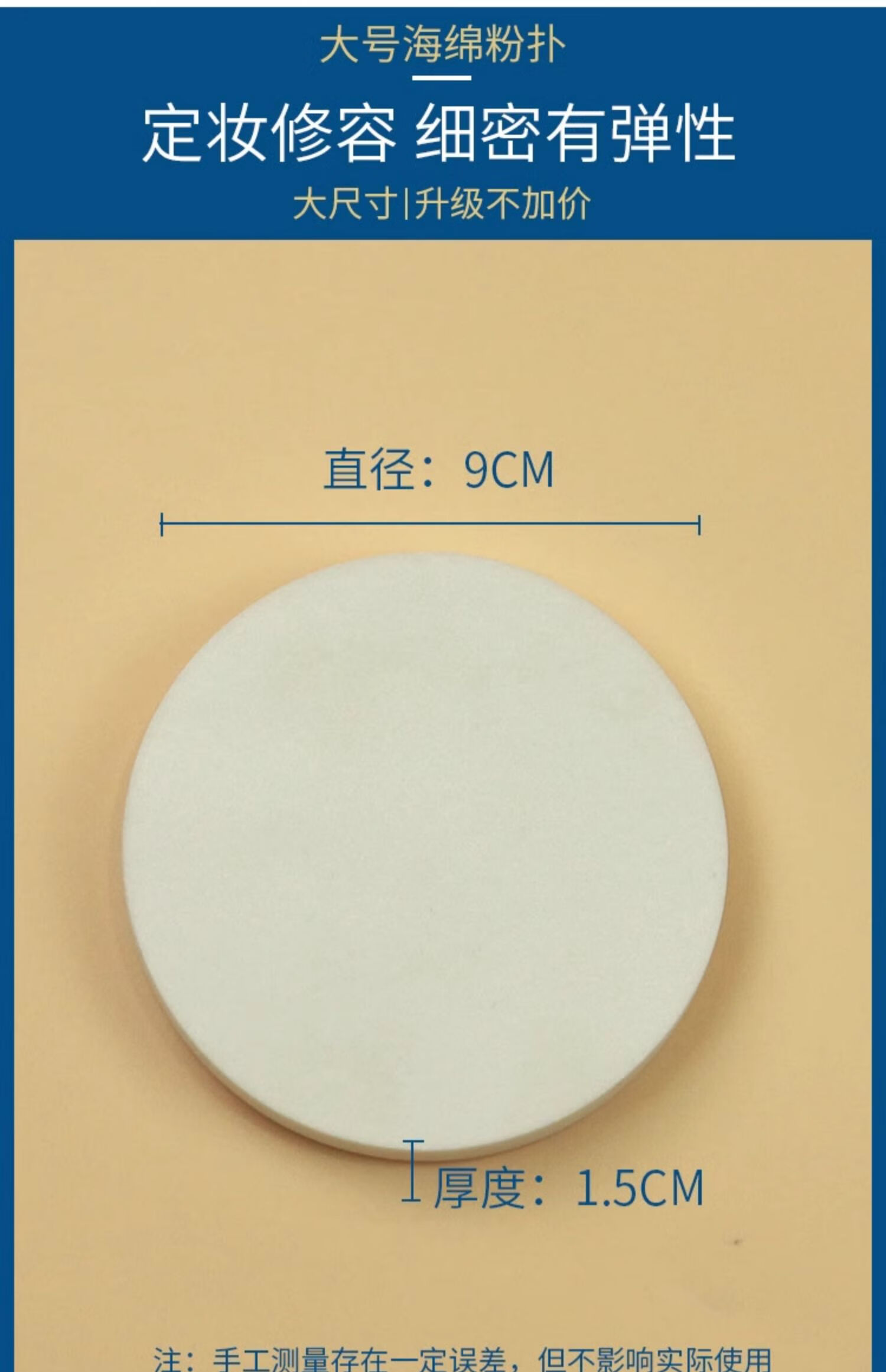 大号干湿粉扑影楼化妆师专用海绵粉底圆形勾手套定妆干散粉扑整包 大包装湿粉扑 白色 50个 一大包