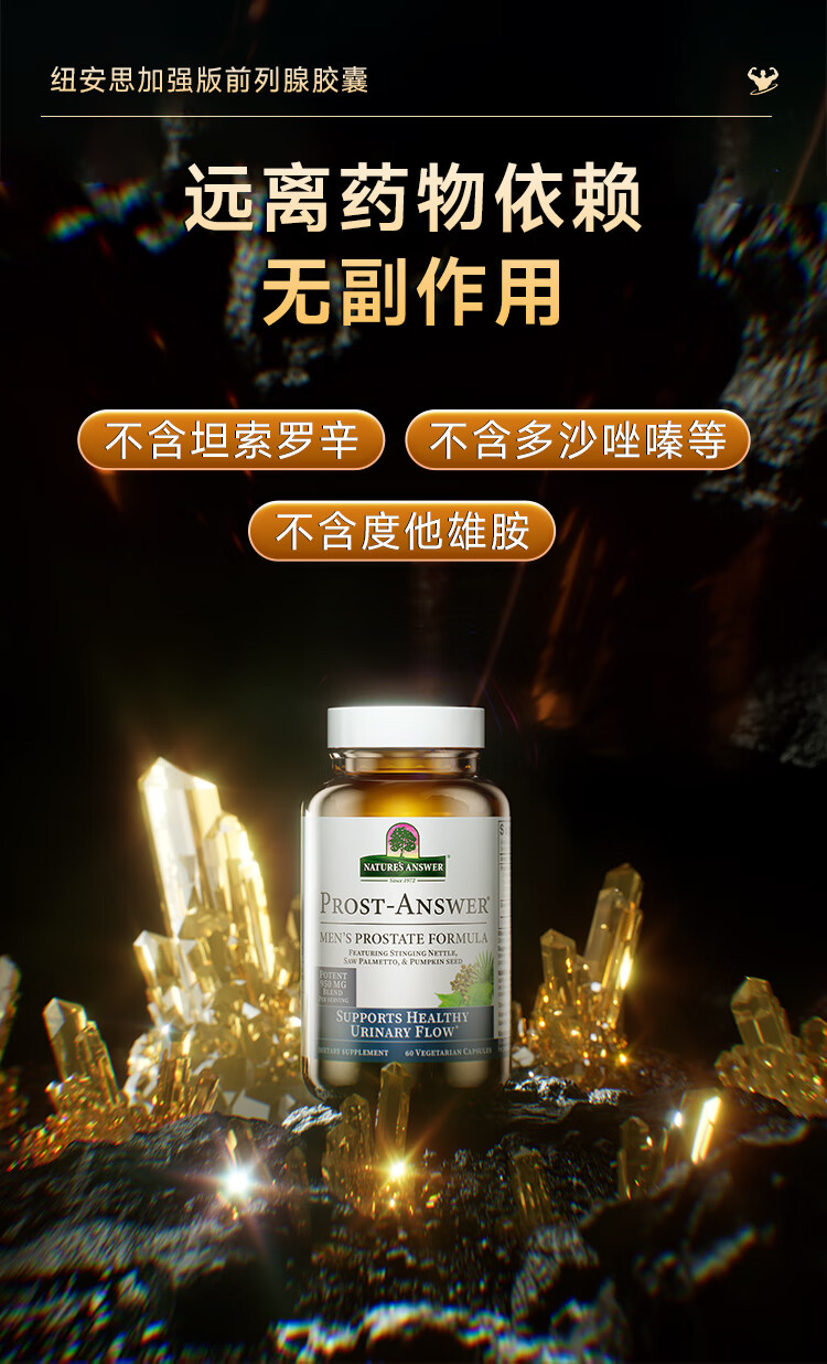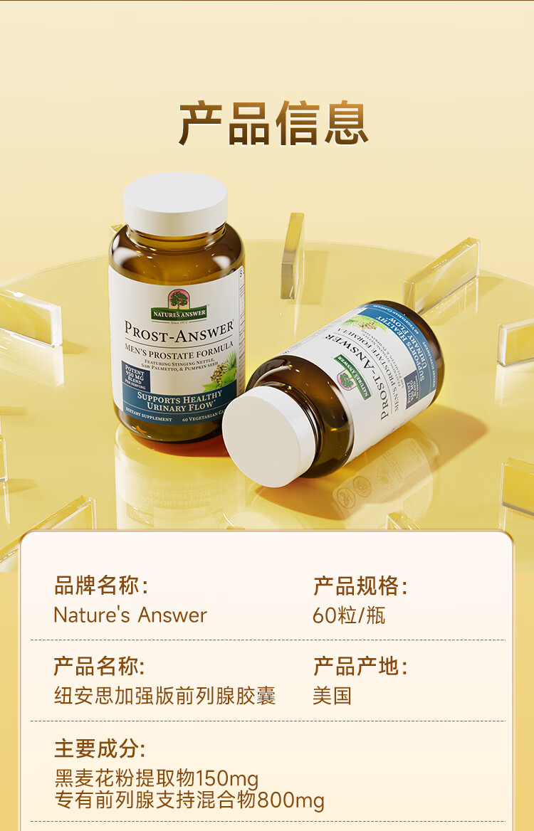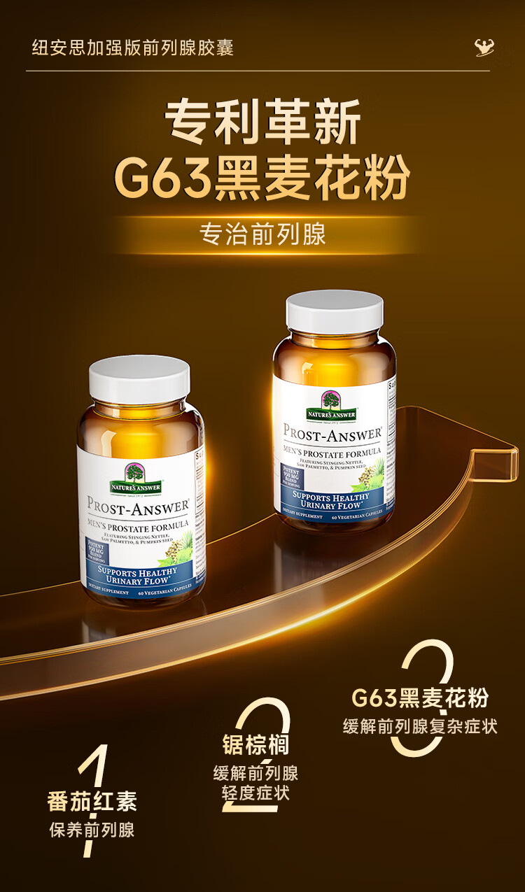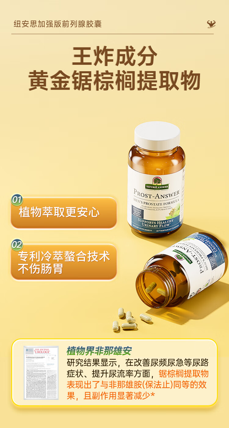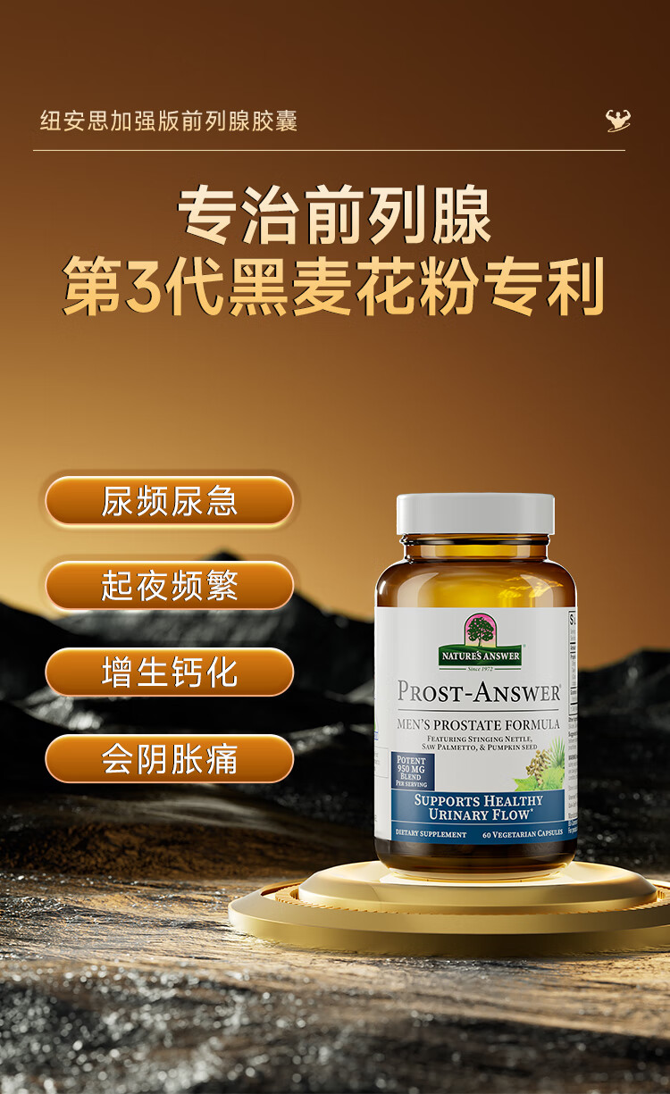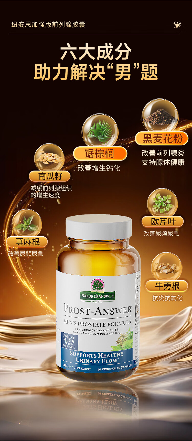NATURE'S ANSWER SINCE 1972前列腺炎胶囊加强版黑麦花粉锯棕榈男士保健品尿频增生抗炎进口