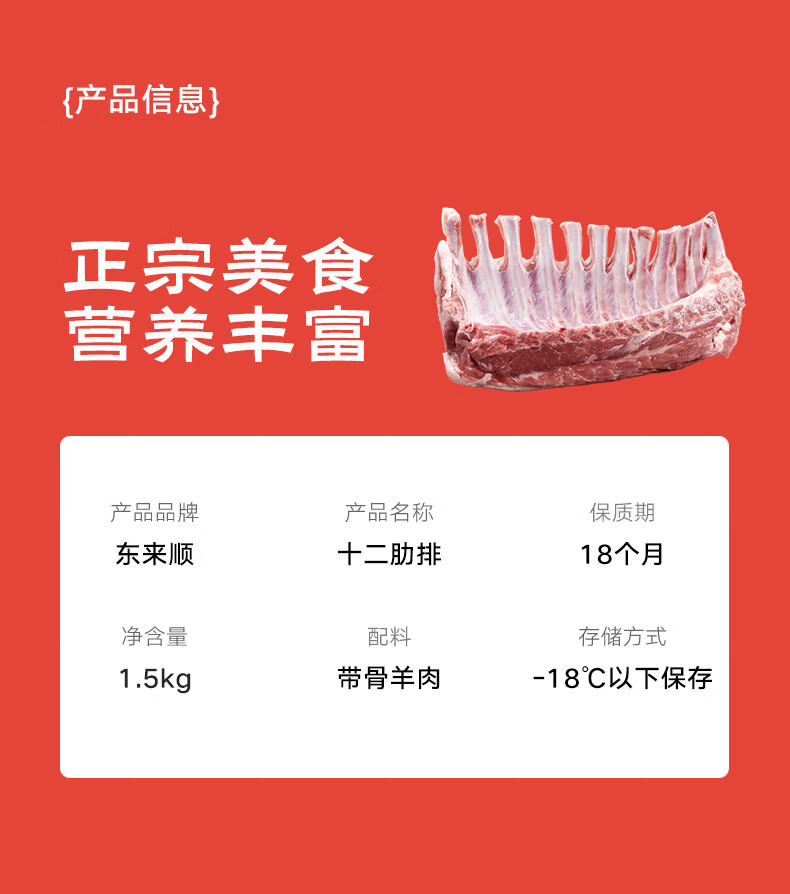 东来顺 内蒙古羔羊12肋法式羊排3斤 烧烤战斧羊排 中华老字号 源头直发