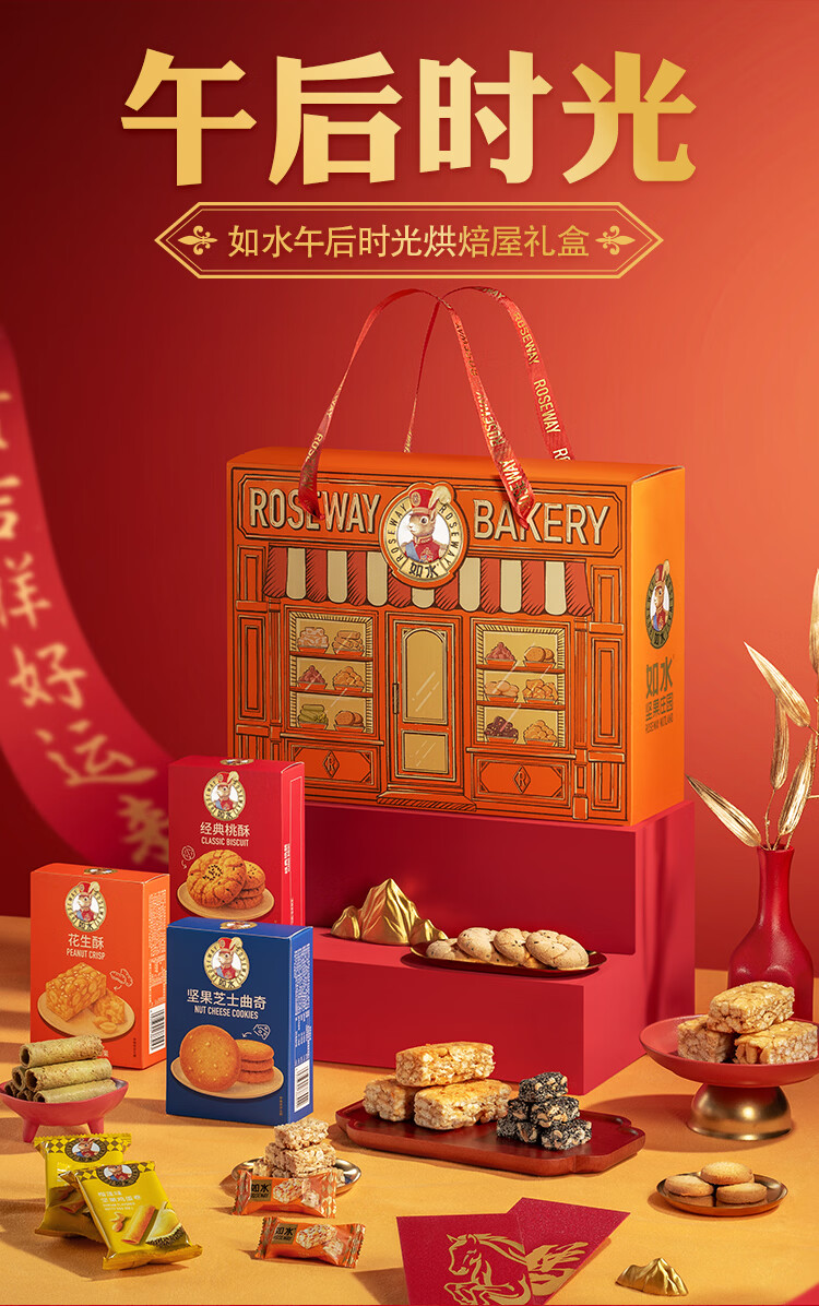 如水午后时光烘焙屋礼盒892g/盒 年货节日送礼糕点饼干混合大礼包