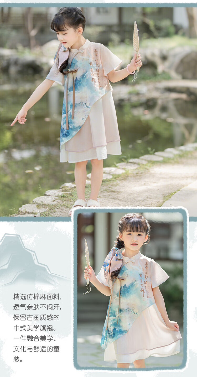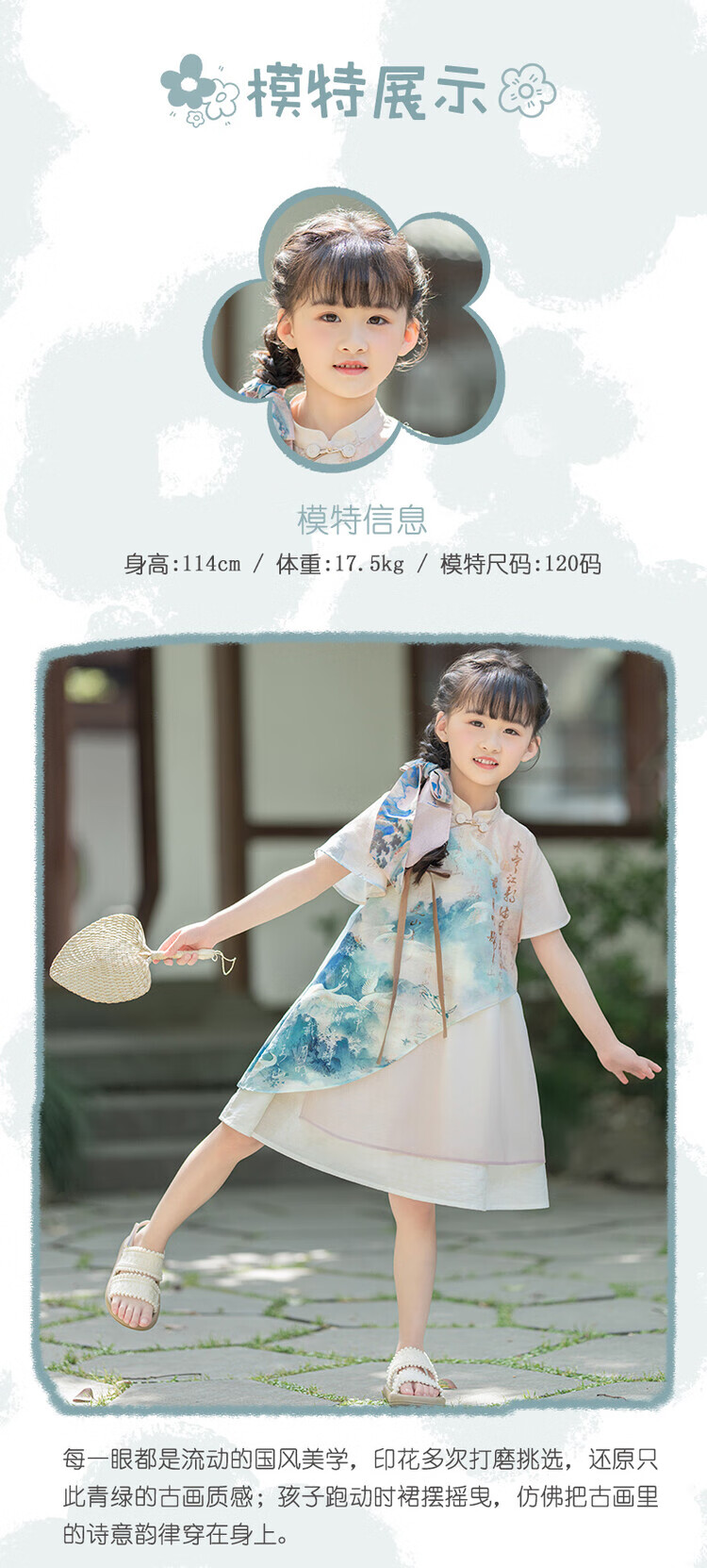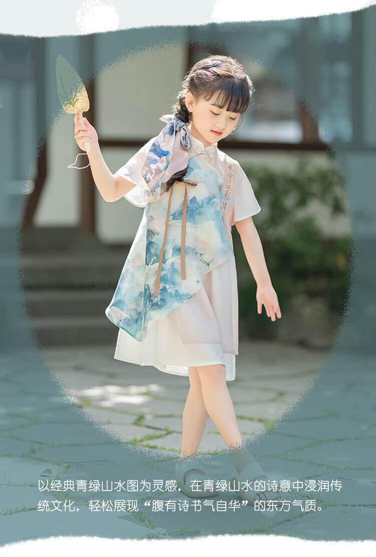 西子问【望青山】夏季清凉儿童中国风童装女童汉服新中式女童连衣裙旗袍 望青山 100